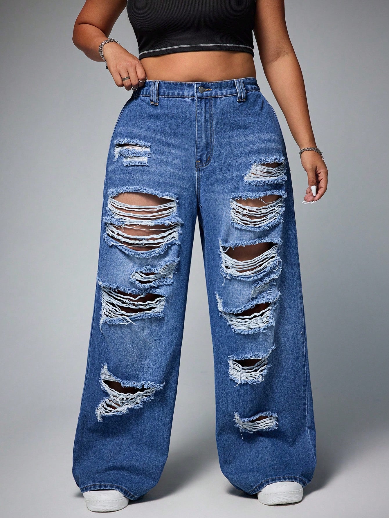 EZwear Plus Size Women Casual Denim Jeans, Fashionable & Suitable For Summer
