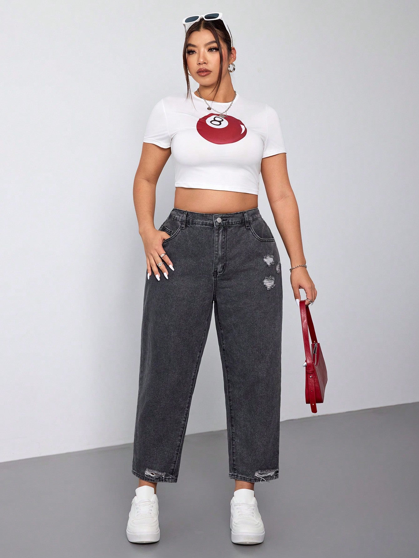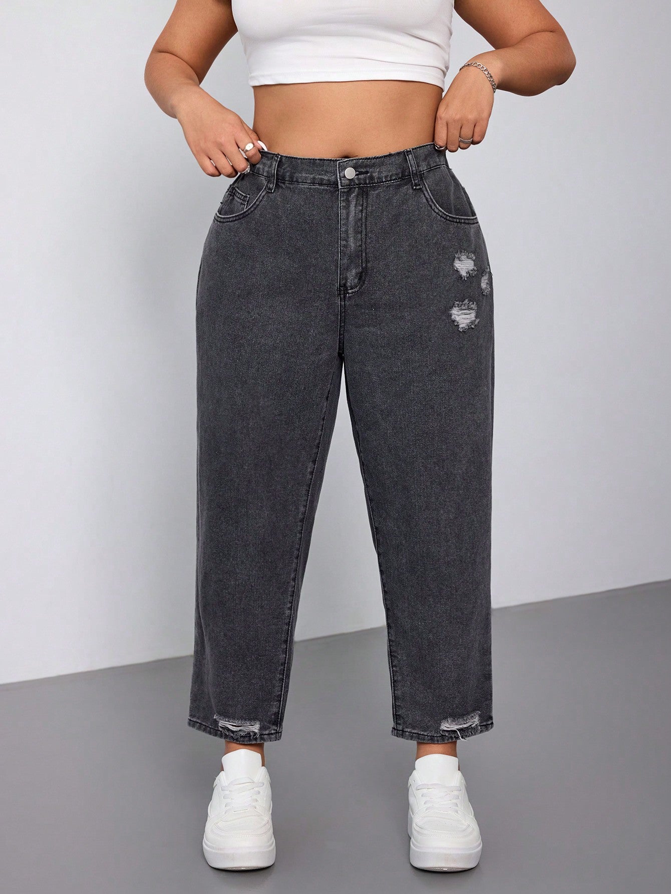 بنطال جينز ممزق بخصر مرتفع من ICON Plus