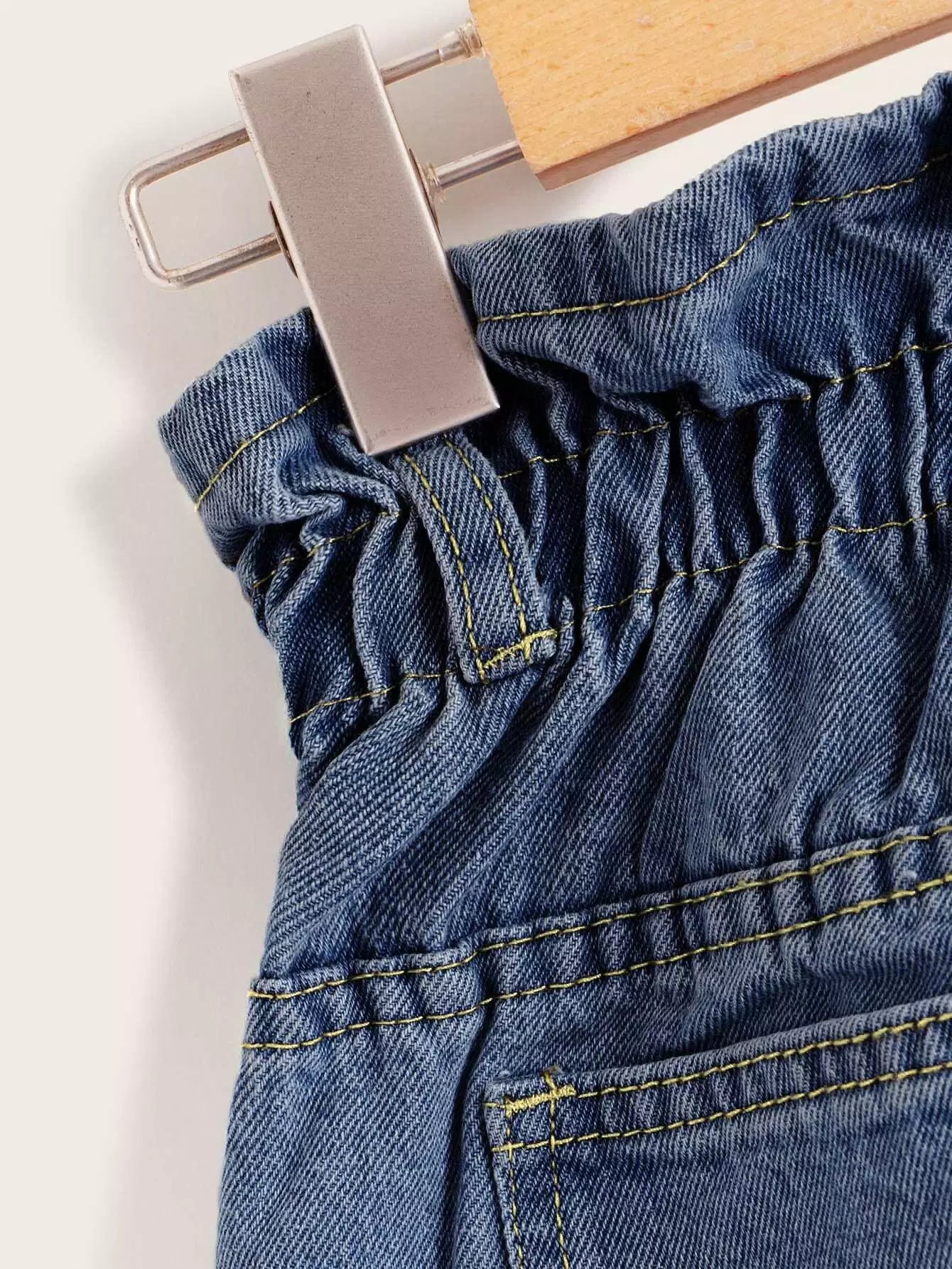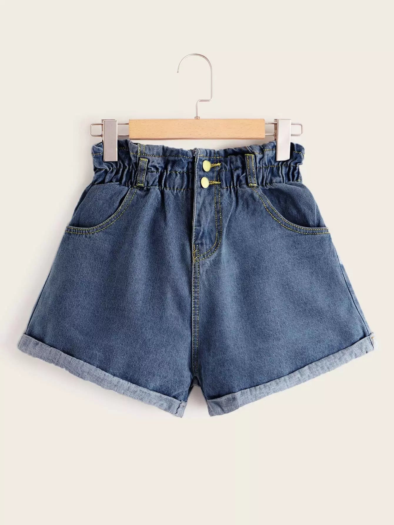 شورت دنيم بحاشية دنيم ملفوفة من الأمام بأزرار زائد