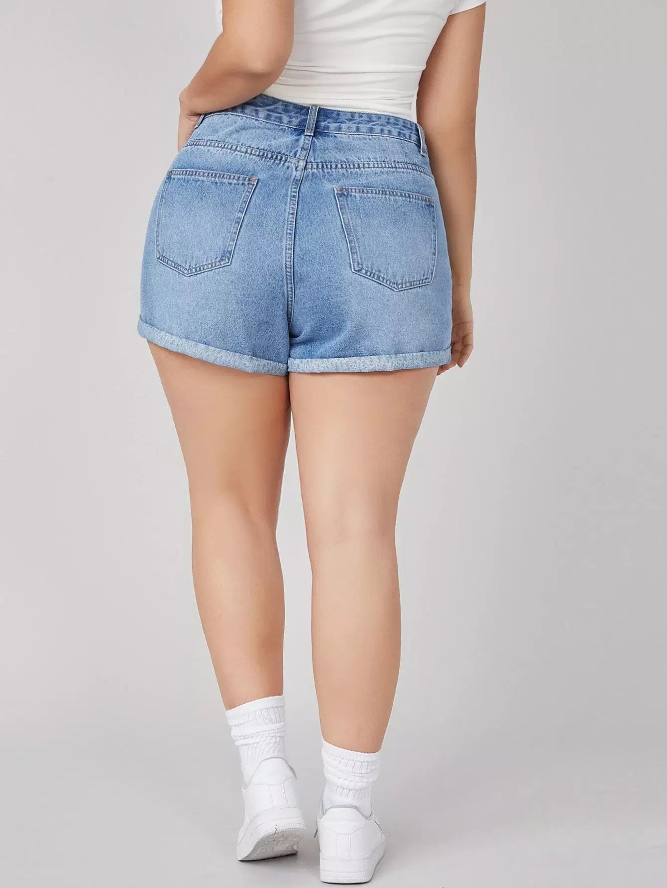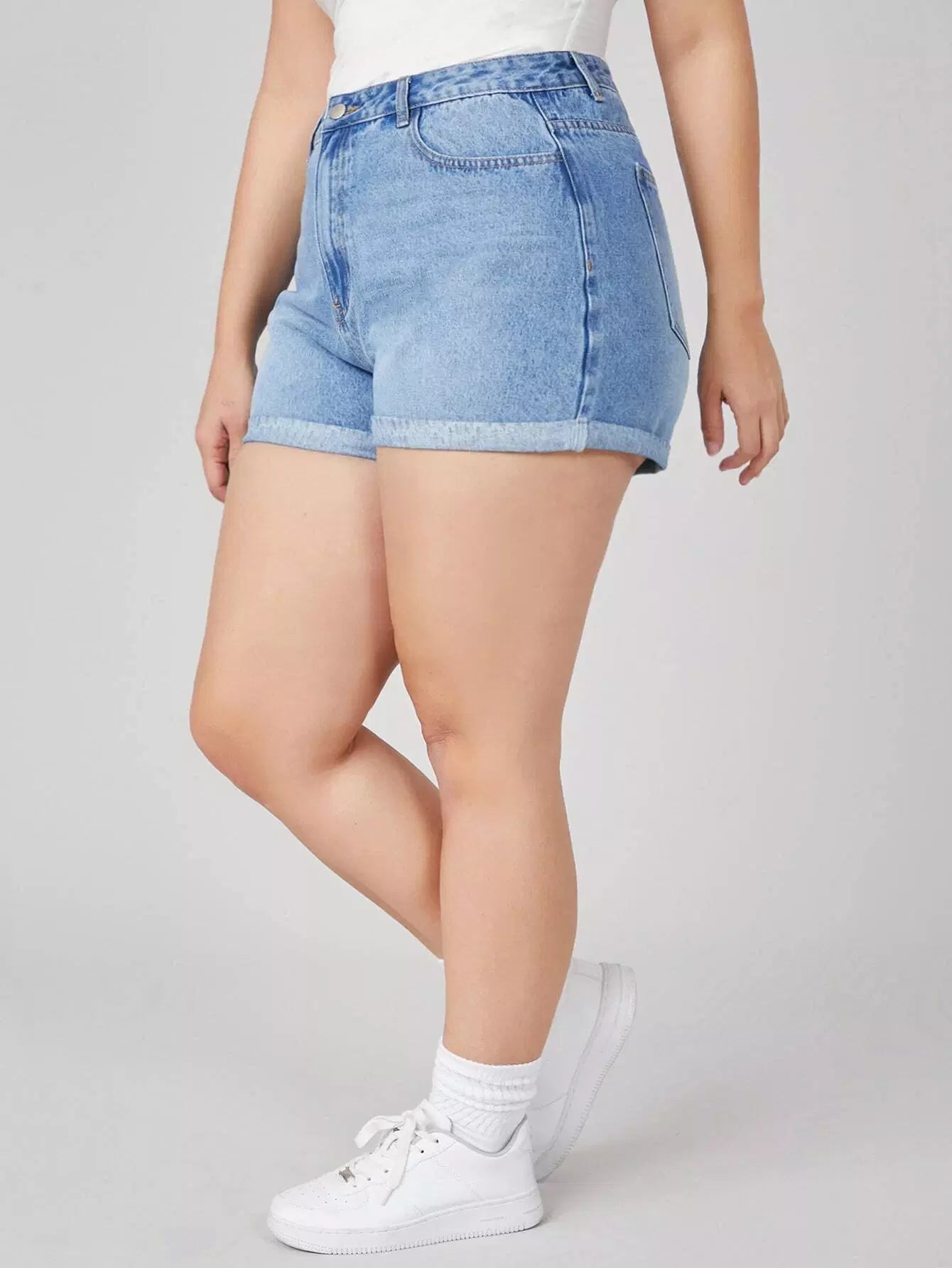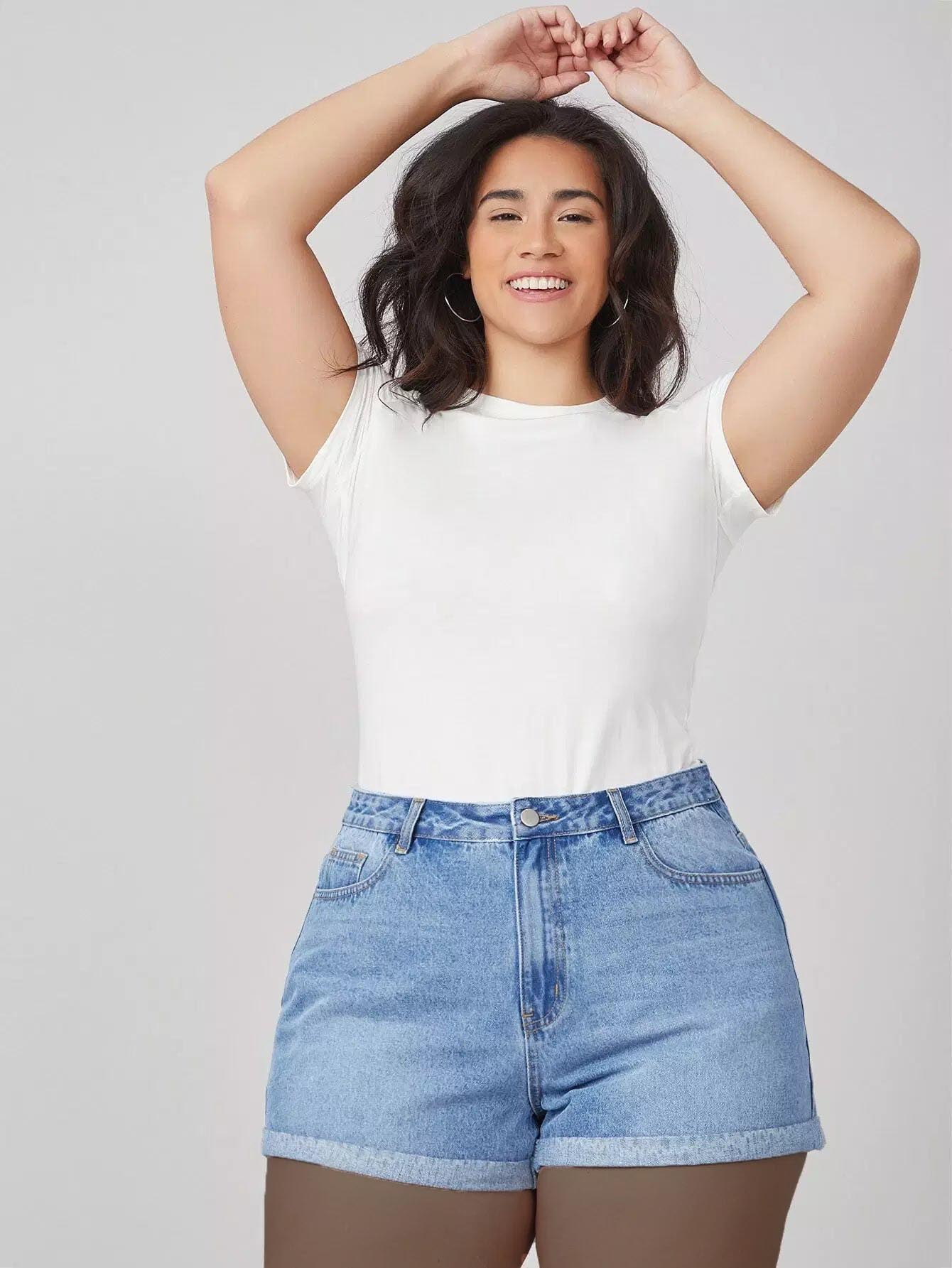 شورت جينز مكشوف الخصر عالي الخصر بلس