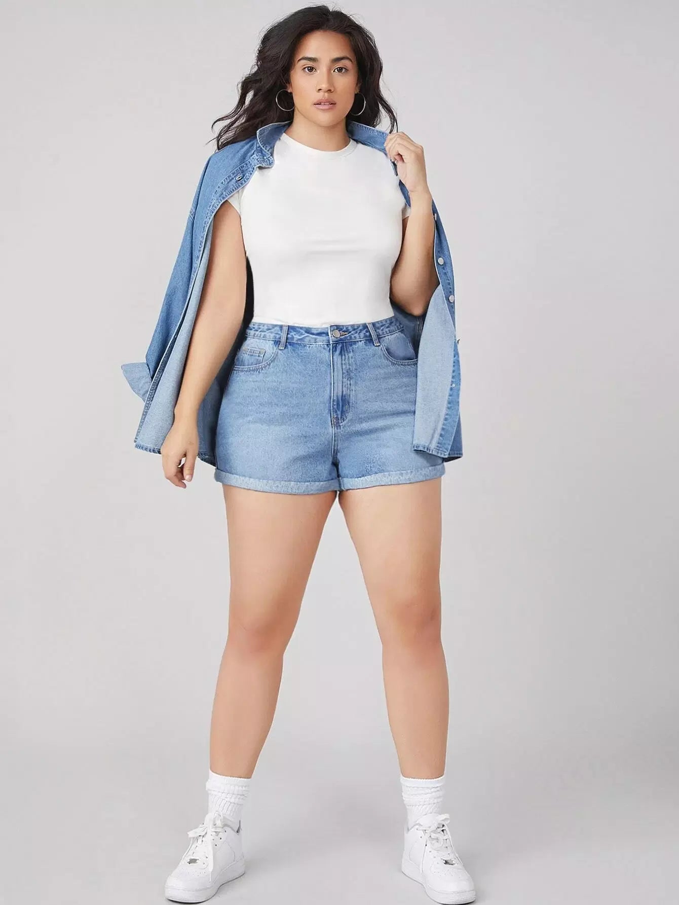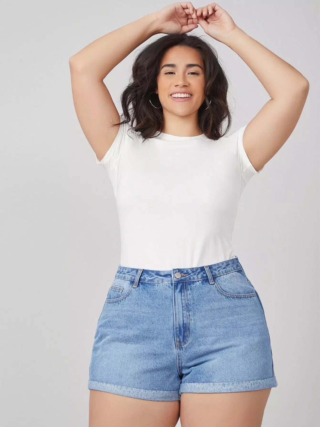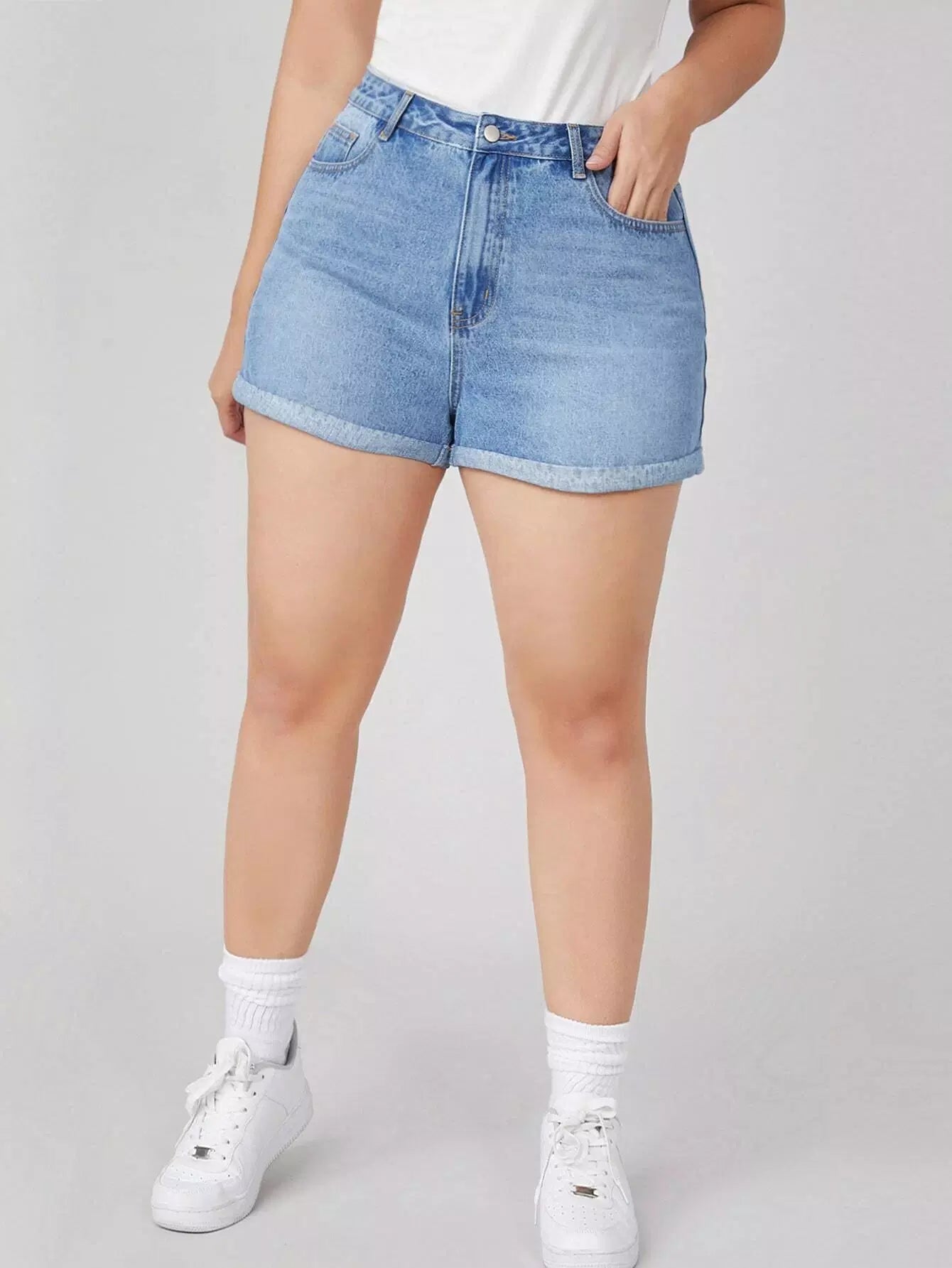 شورت جينز مكشوف الخصر عالي الخصر بلس