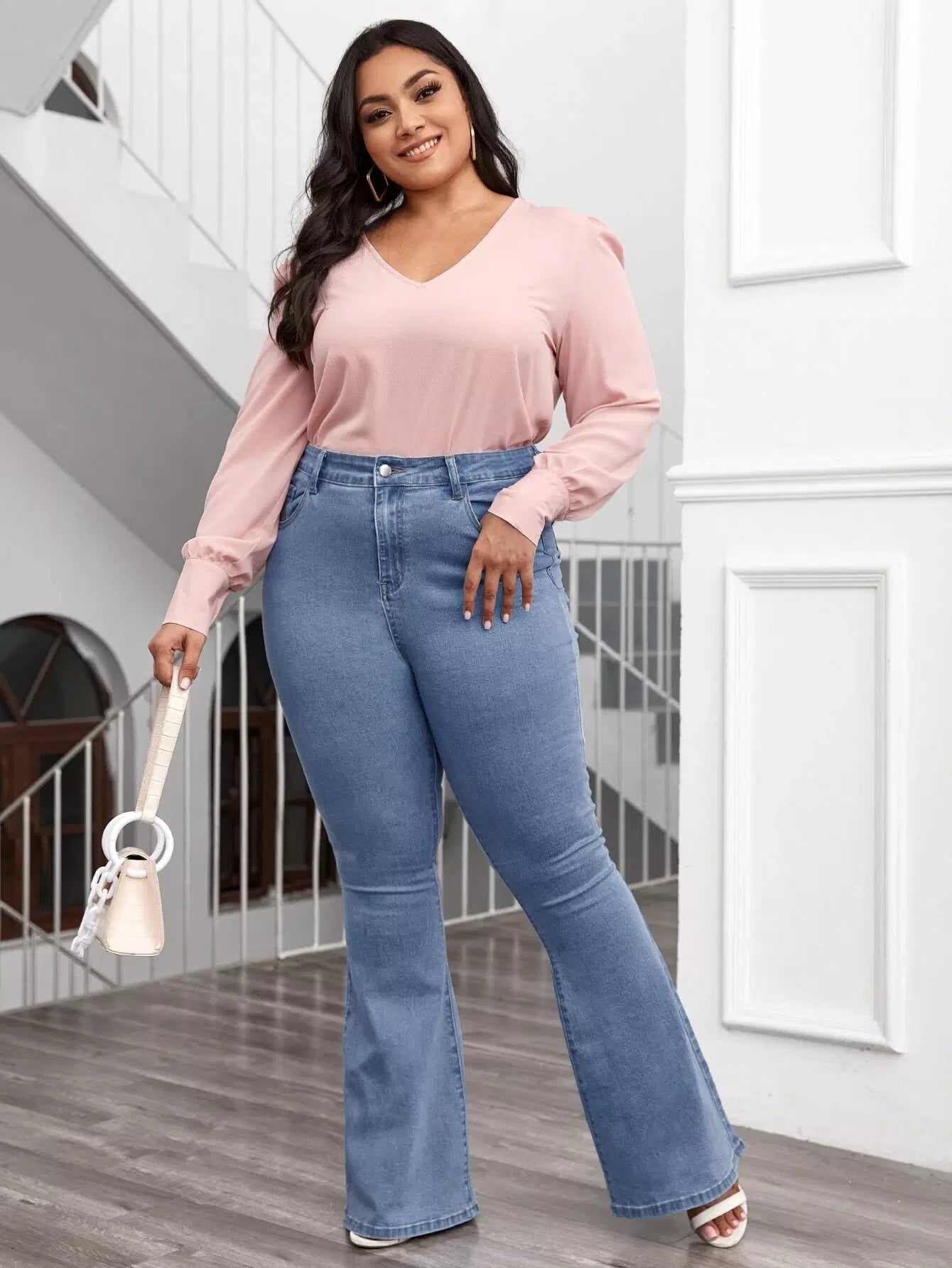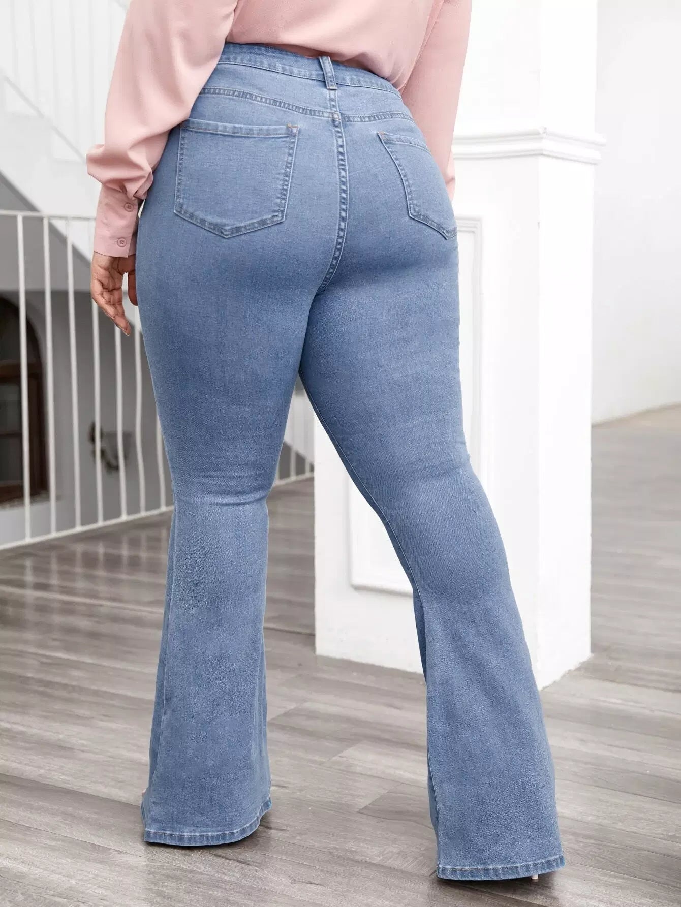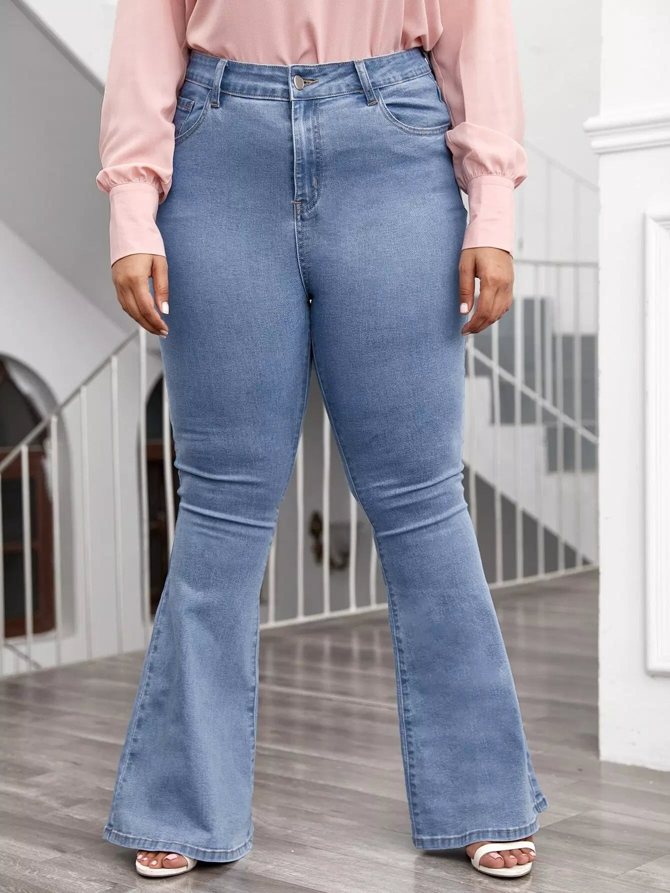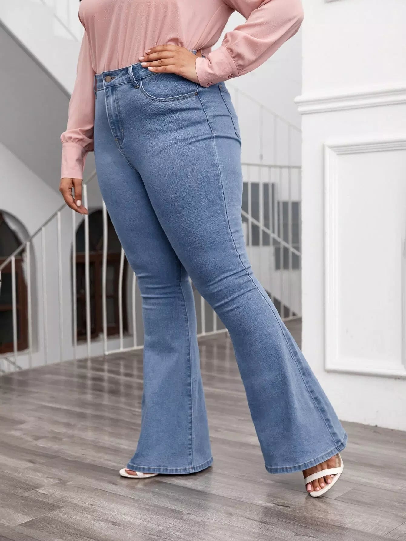 بنطلون جينز بخصر عالٍ واسع الساقين زائد الخصر