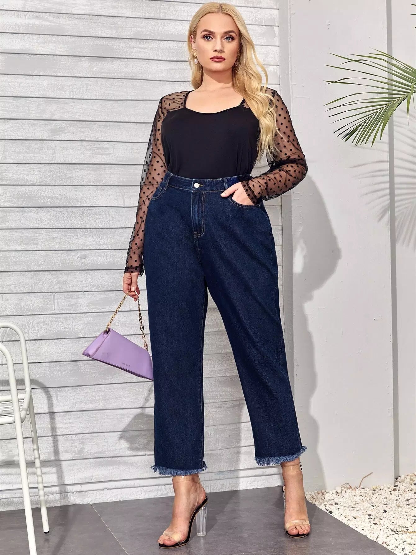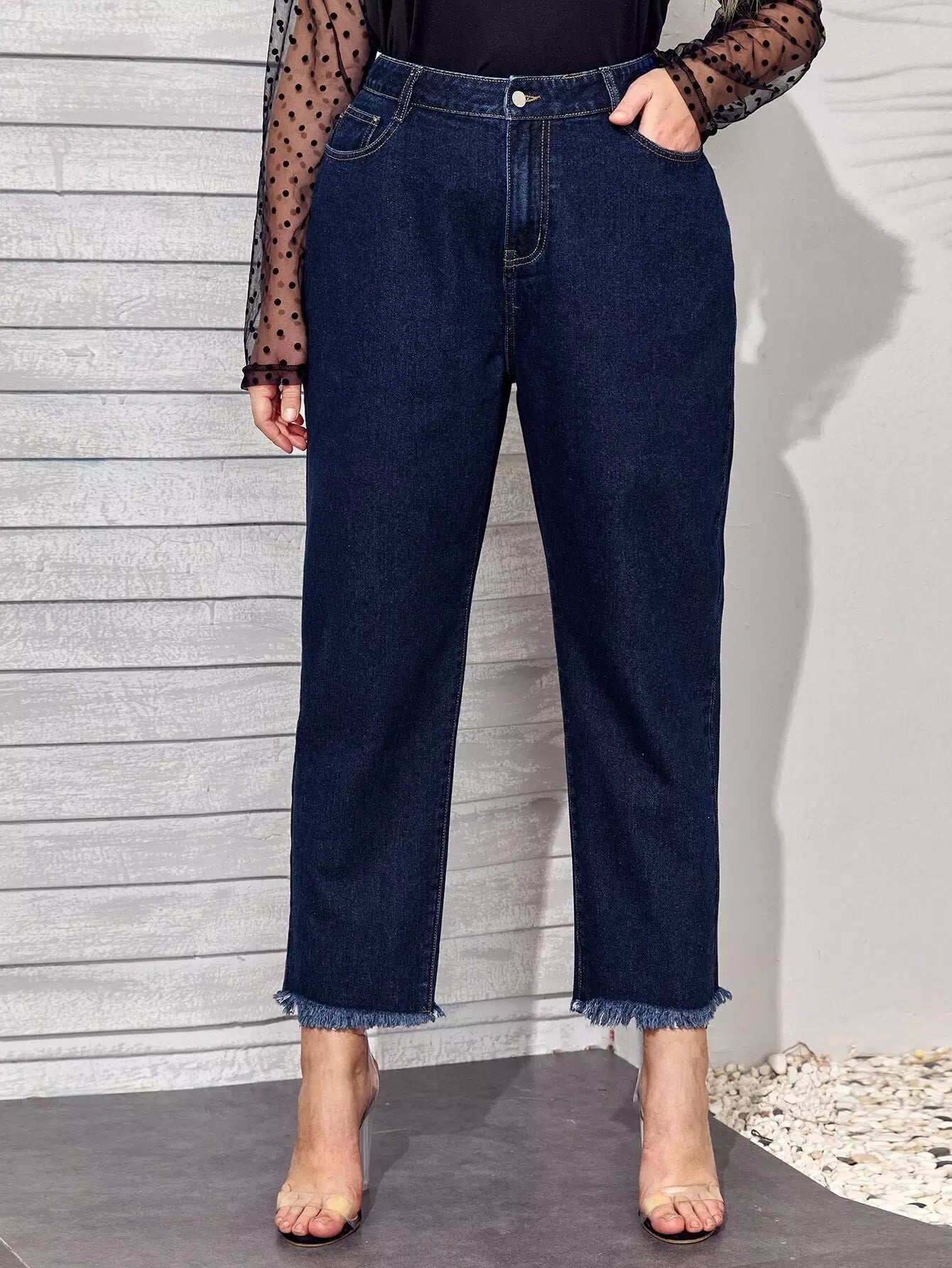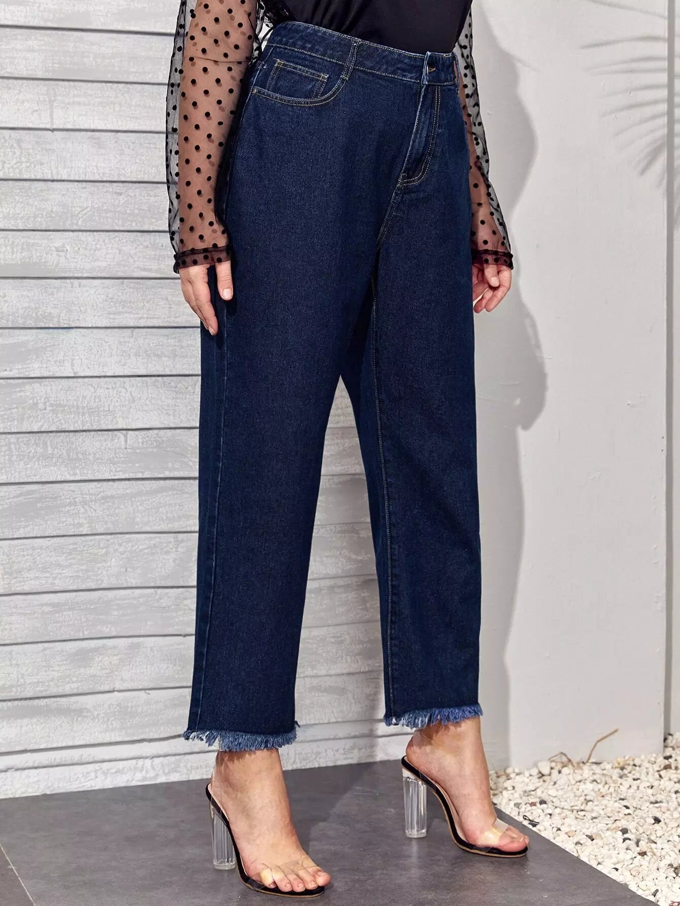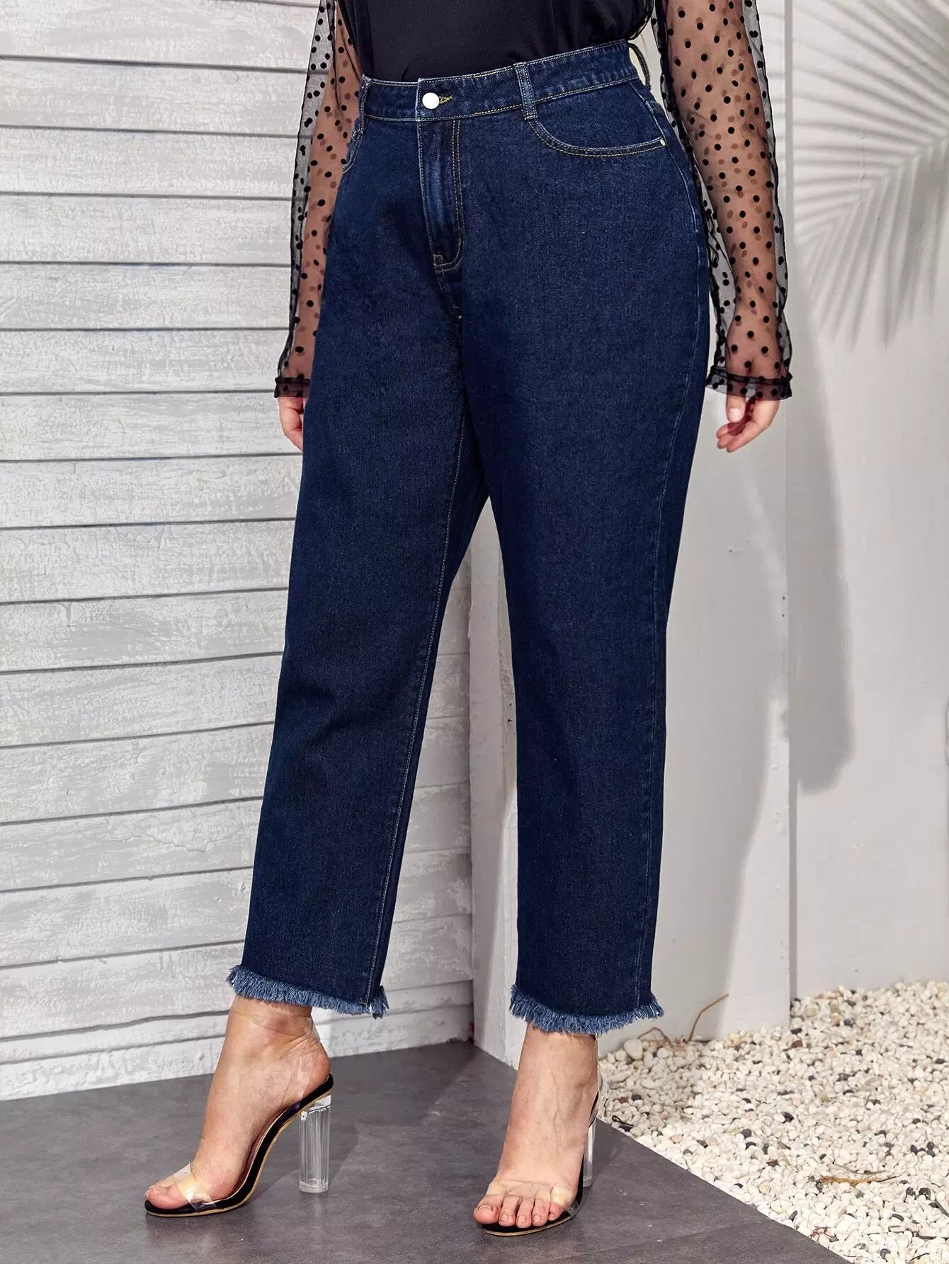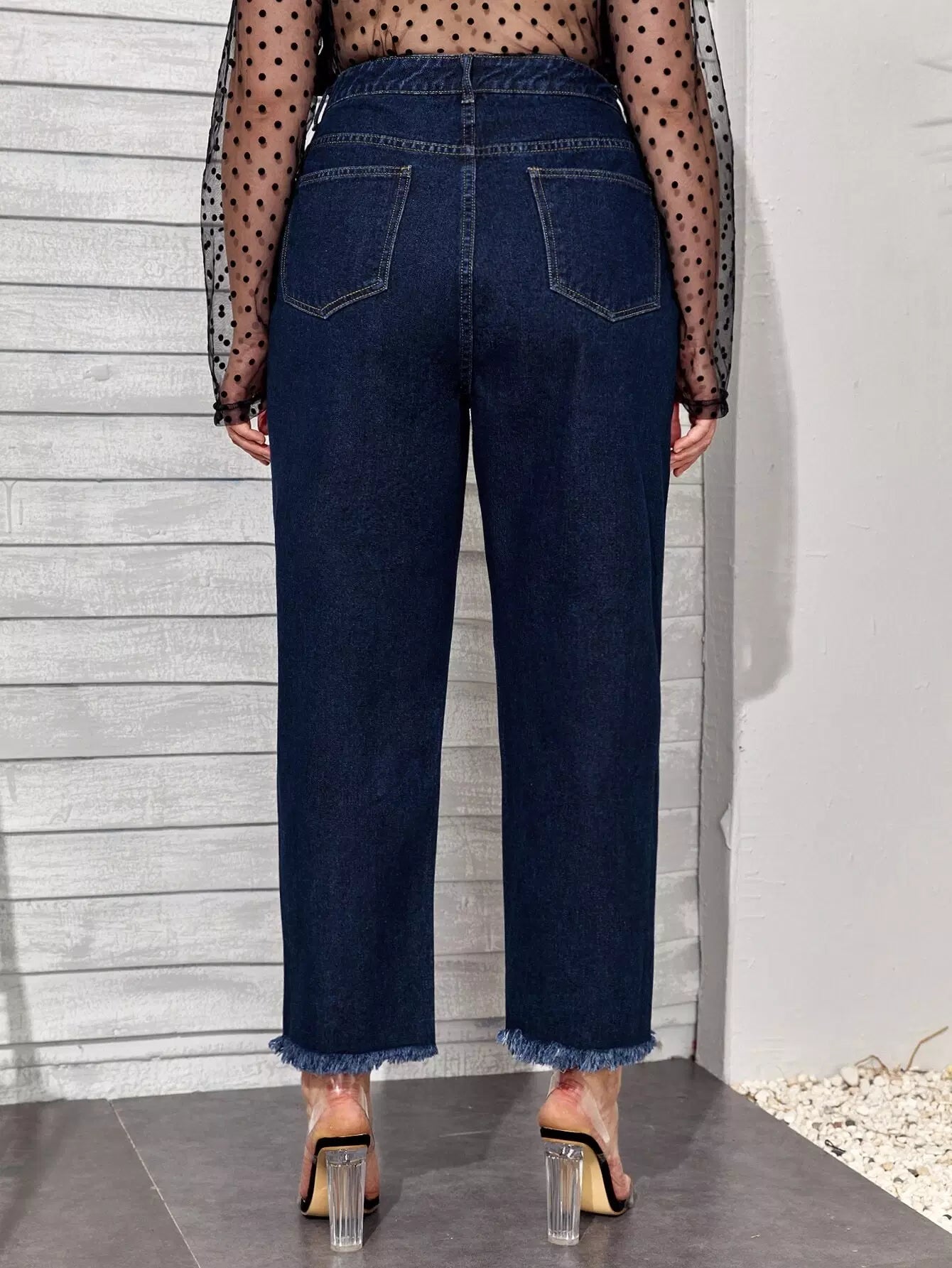 بنطلون جينز قصير بحافة عالية الخصر عالية الخصر