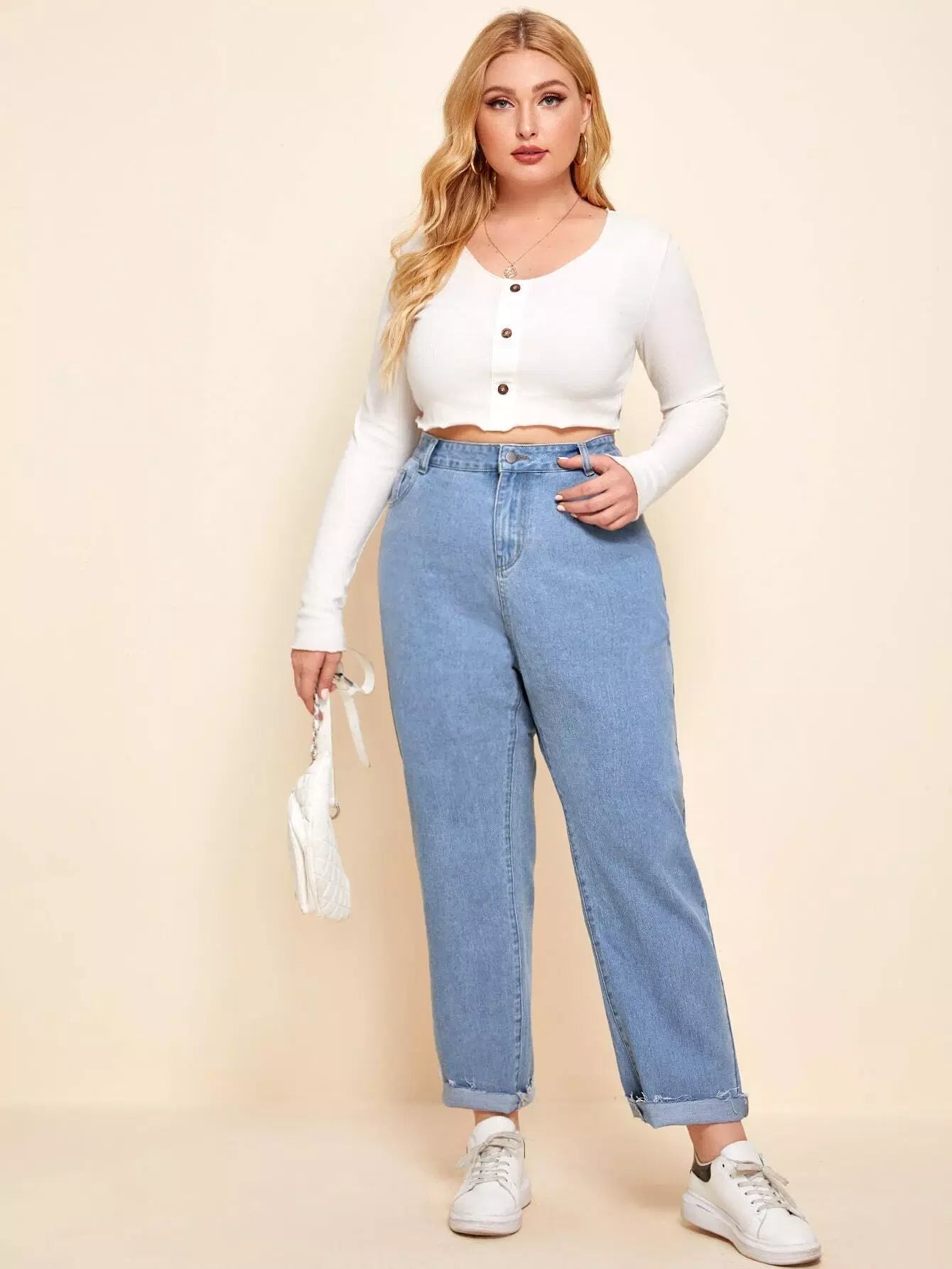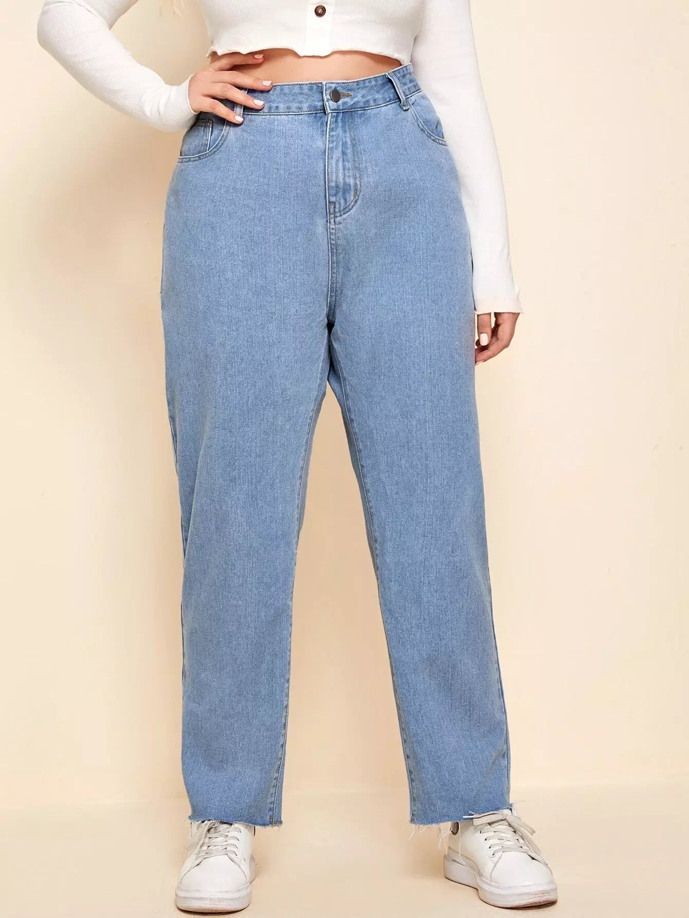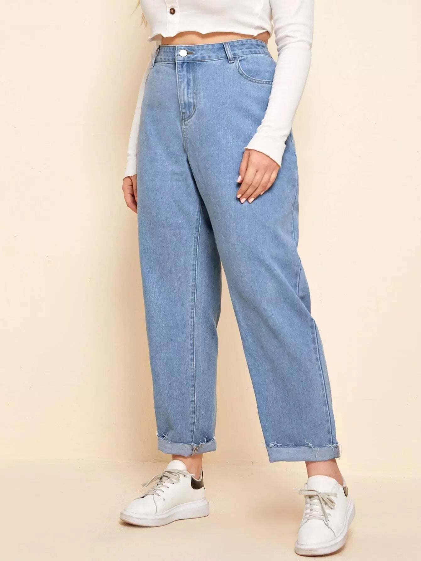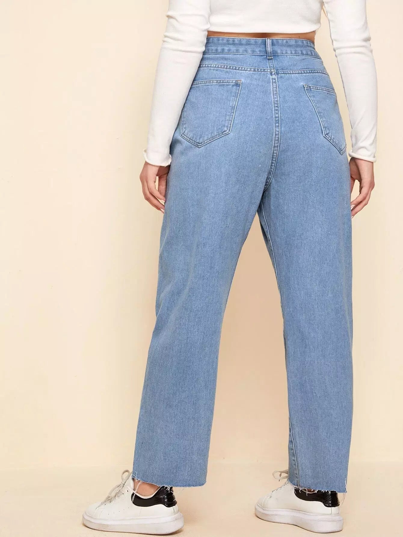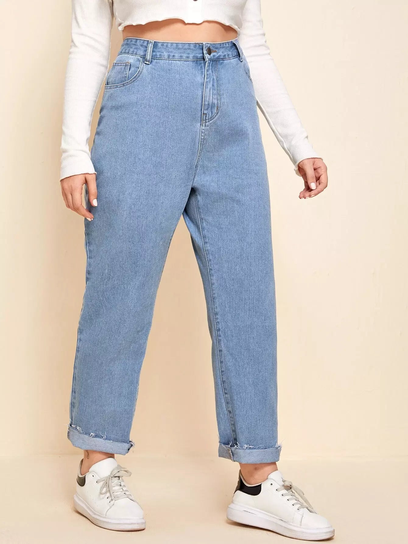 بنطلون جينز الأمهات عالي الخصر بقصّة خصر عالٍ زائد