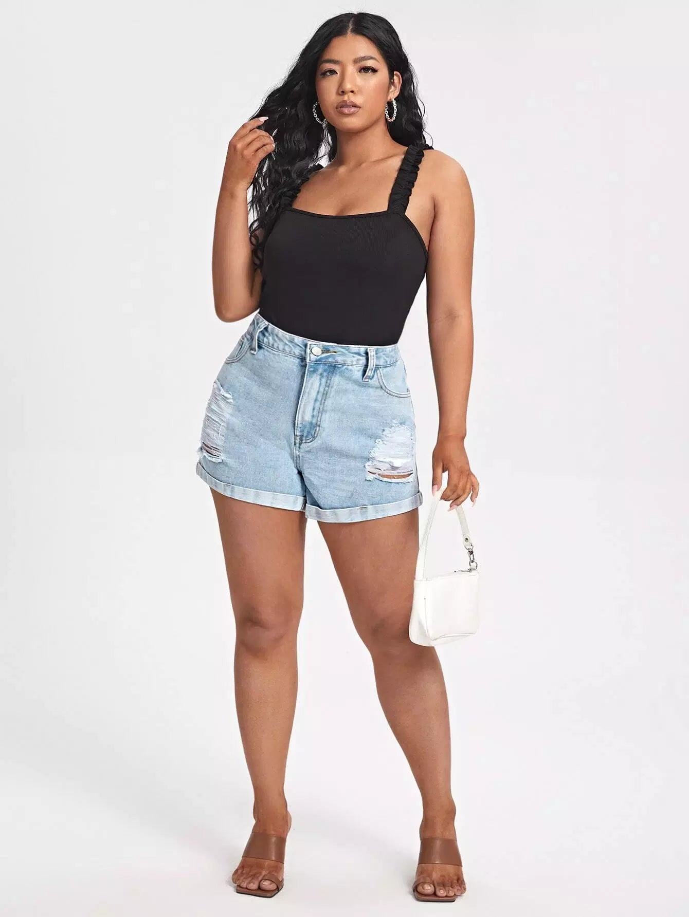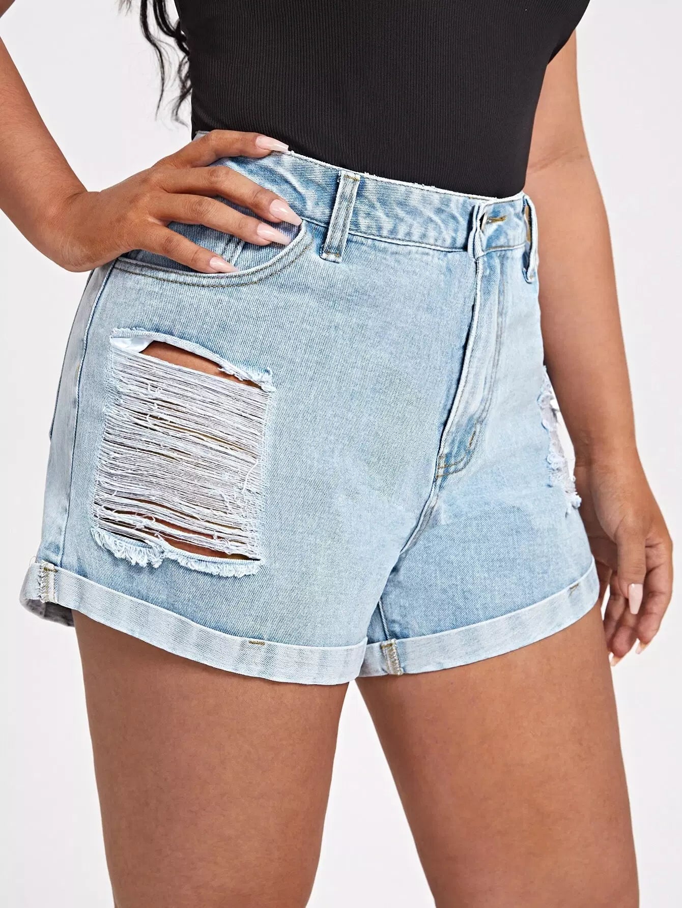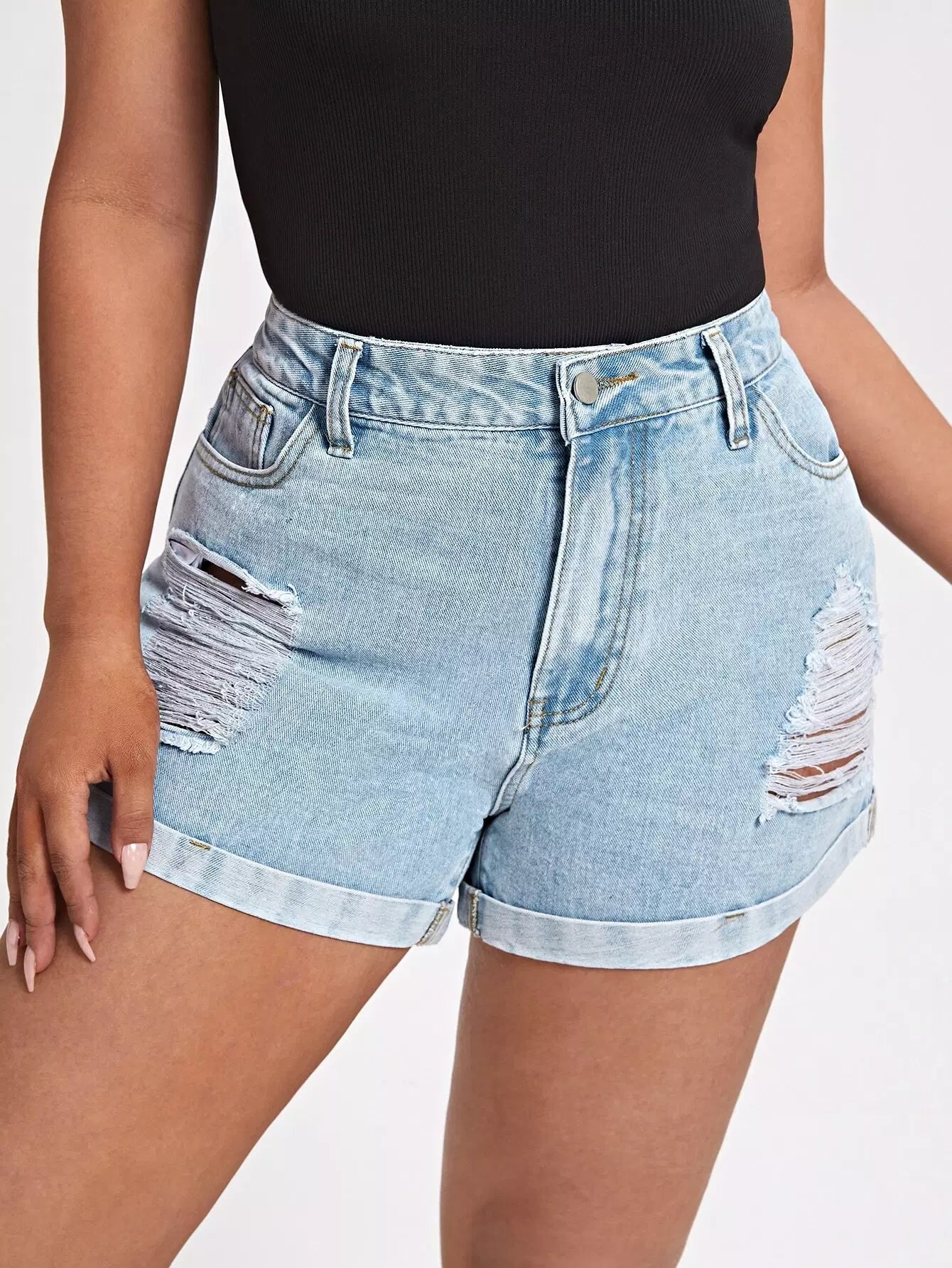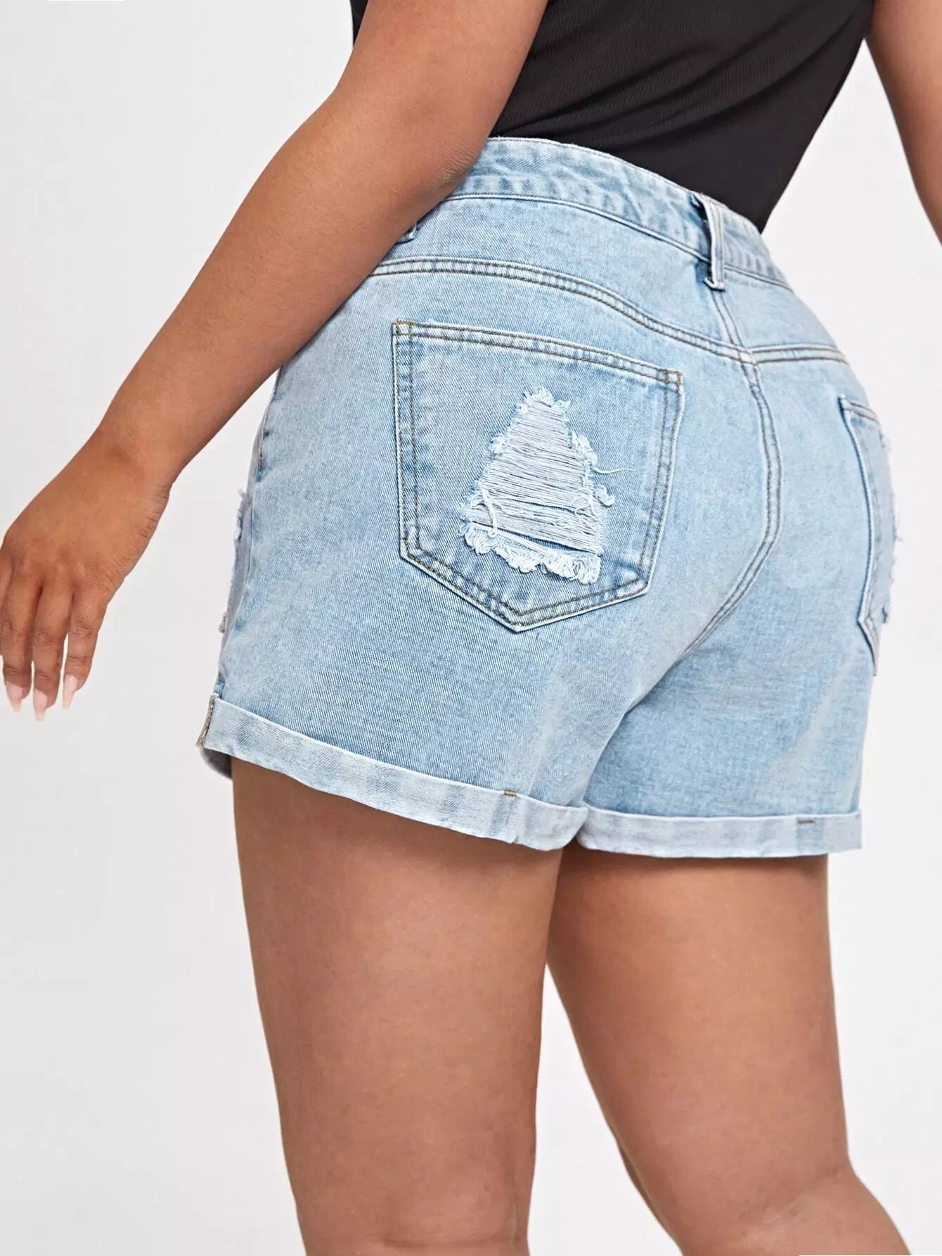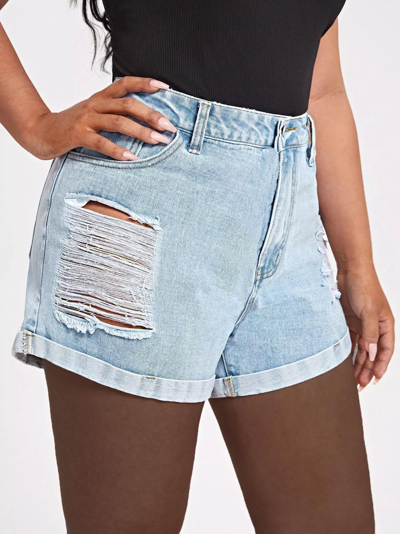 شورت دنيم ممزق بغسول خفيف بلاس بلس