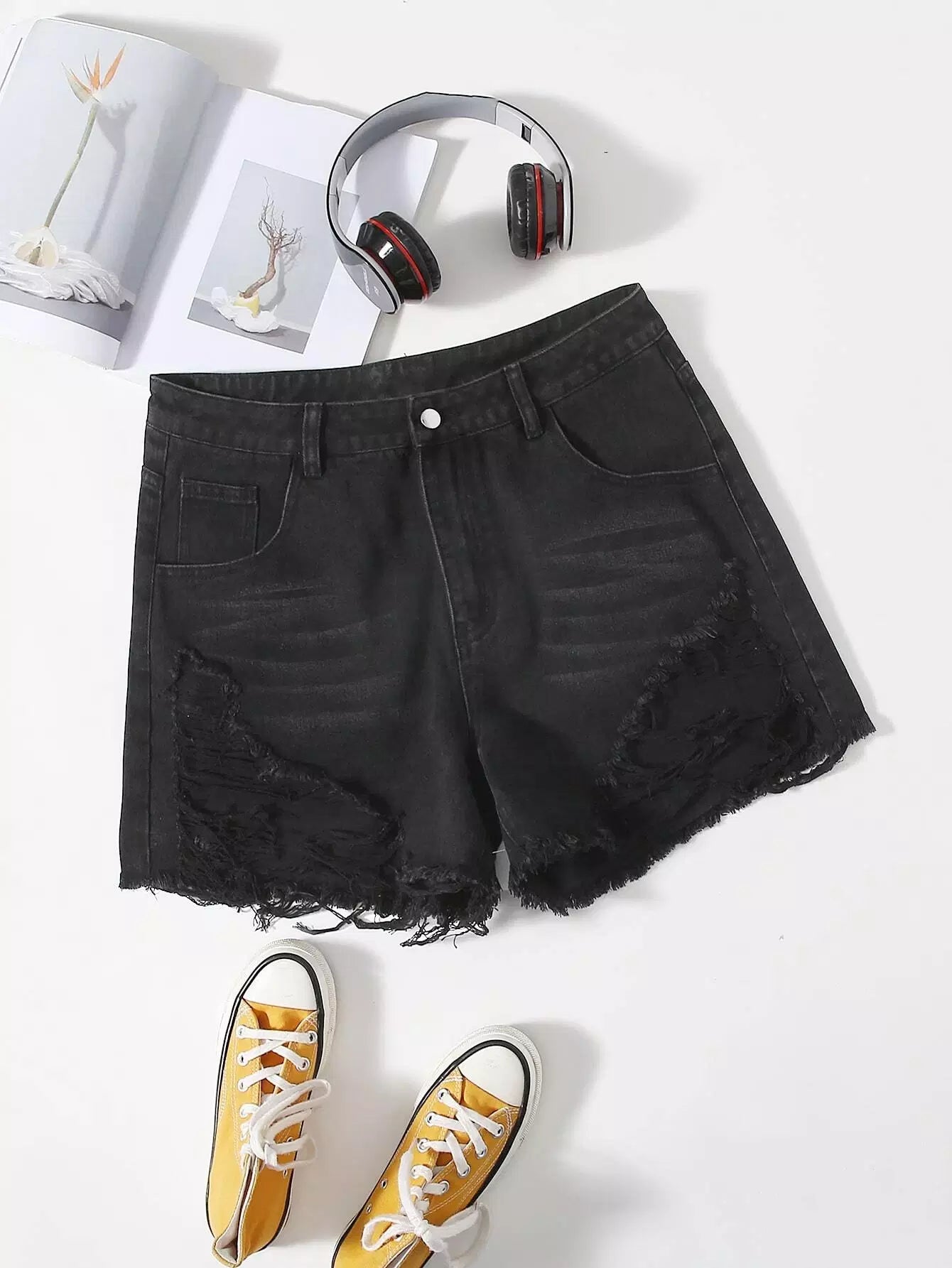 شورت دنيم بحاشية خفيف بحواف خفيف