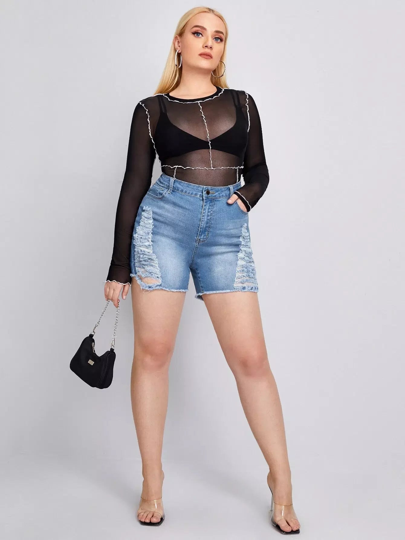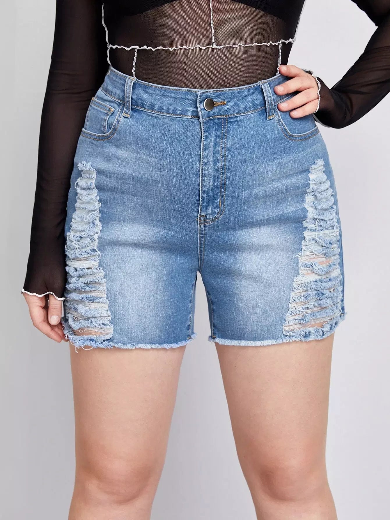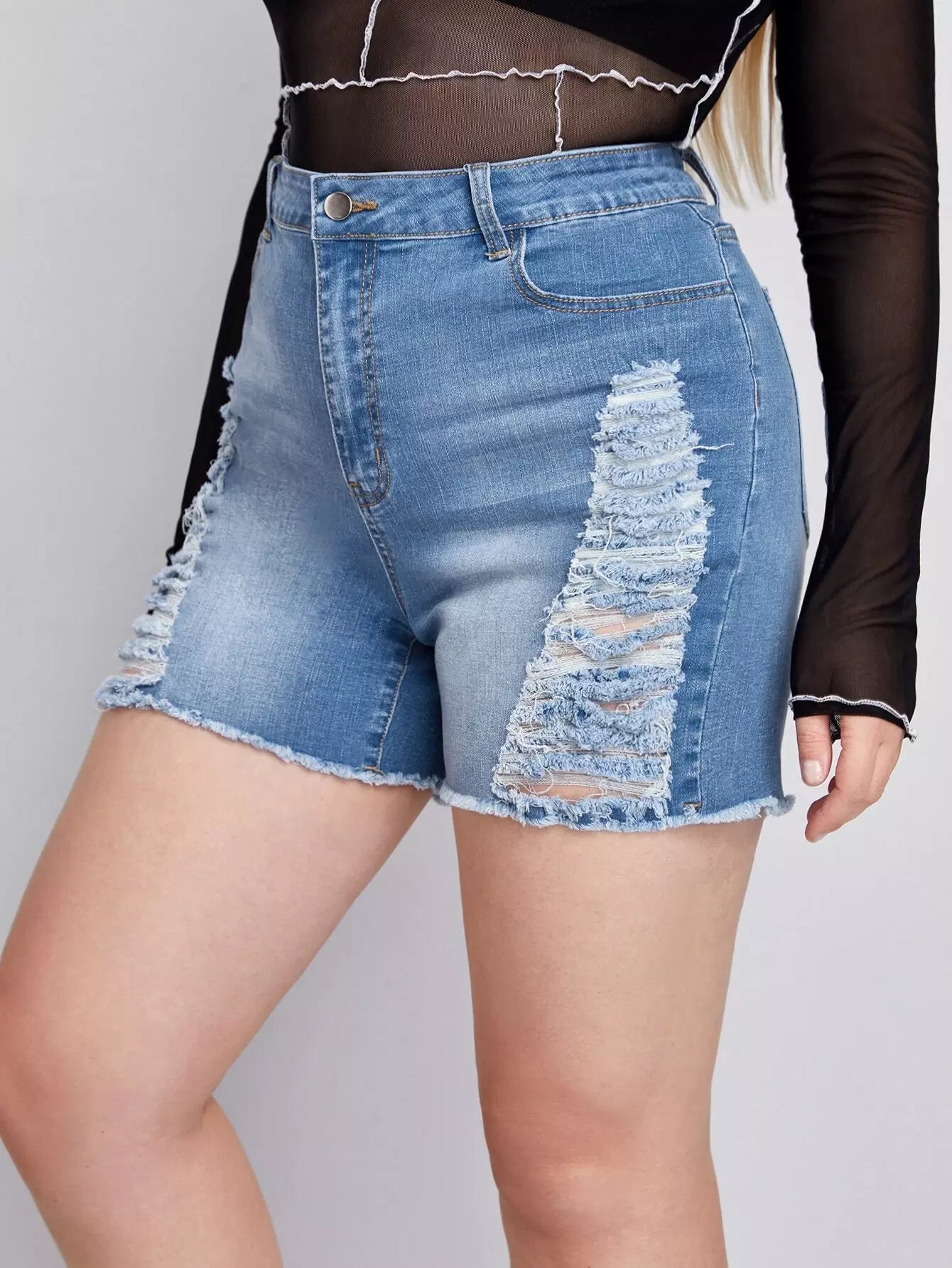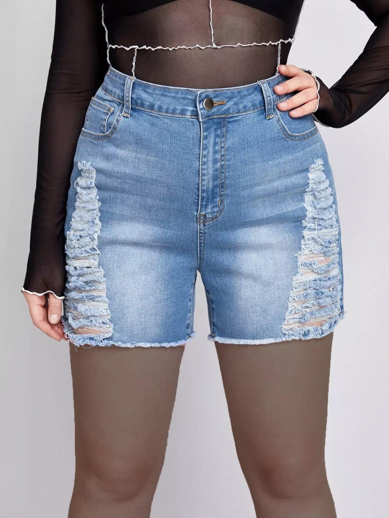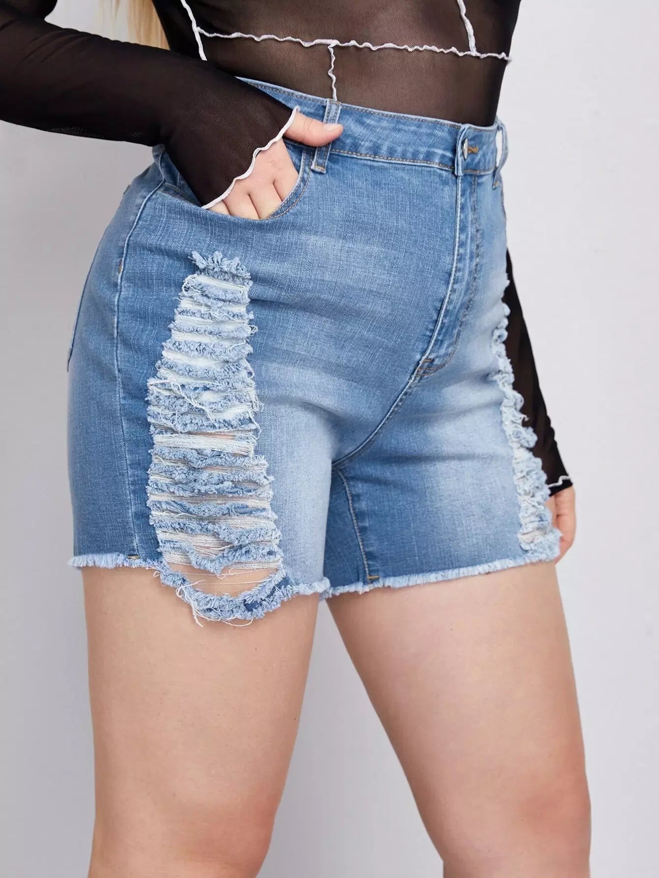 شورت جينز قصير ممزق بحواف ممزقة ممزق