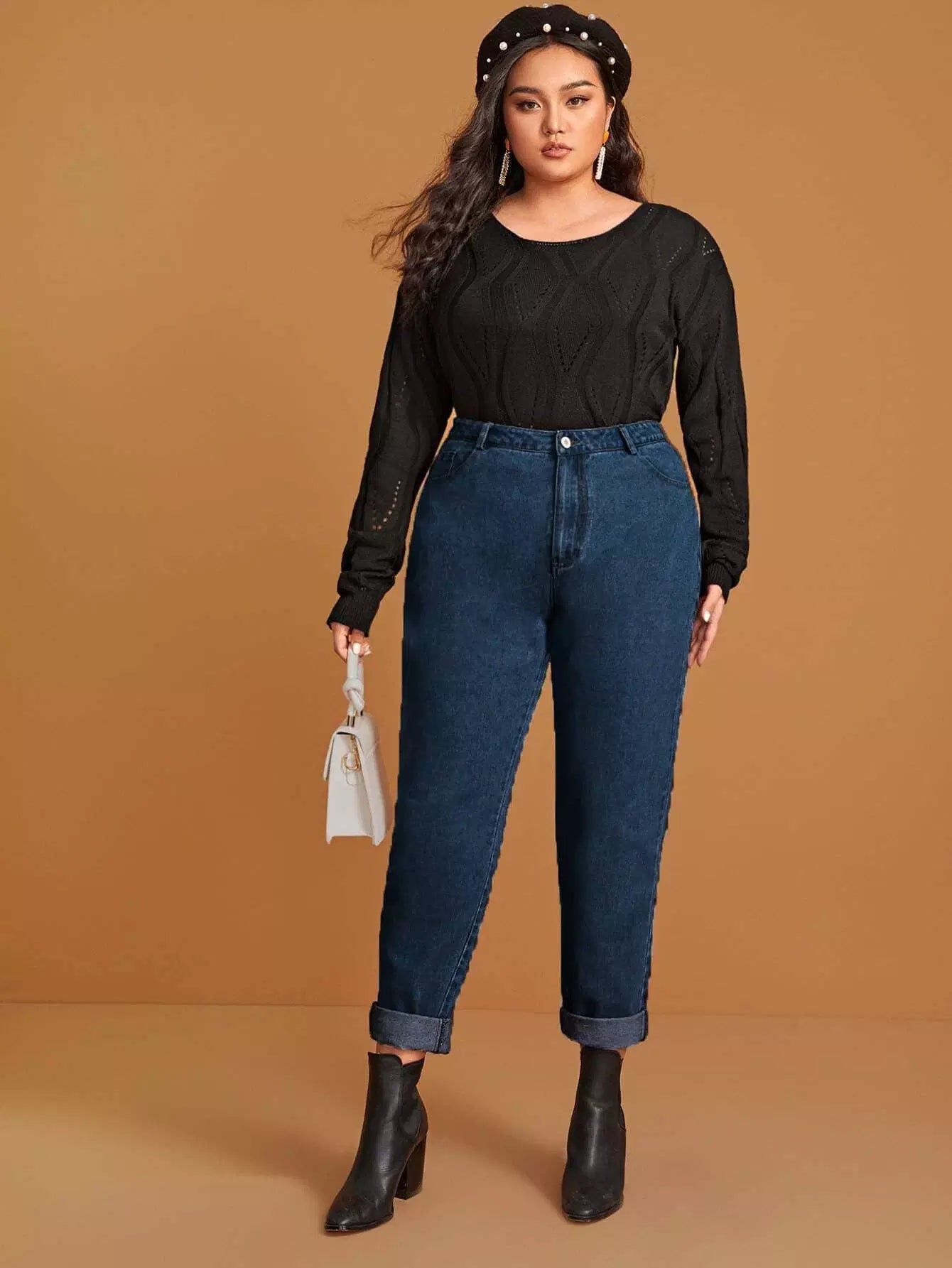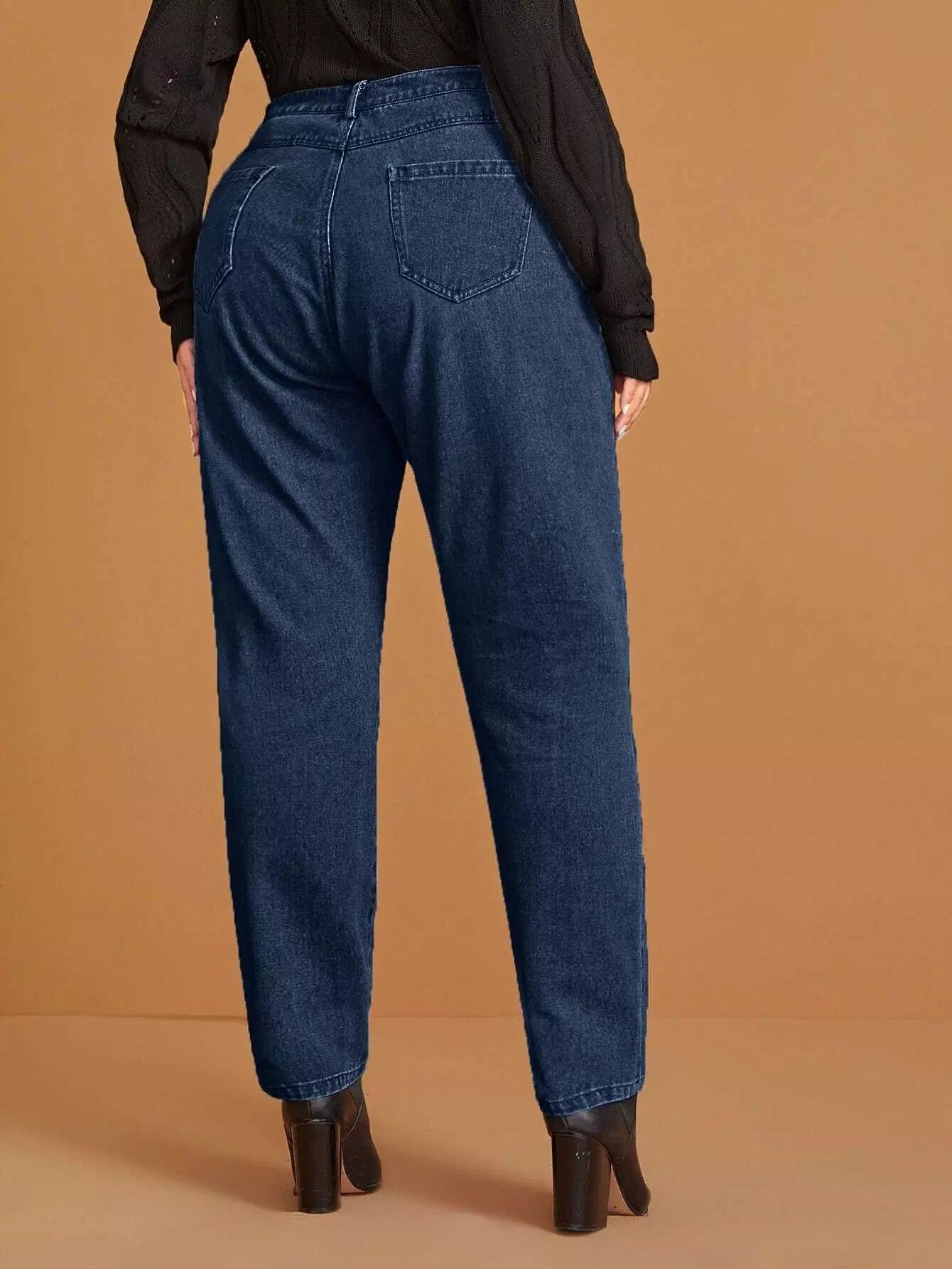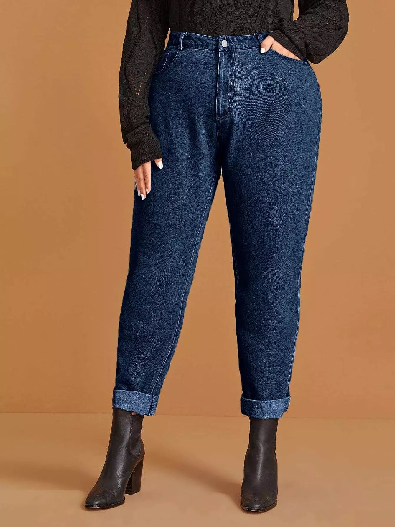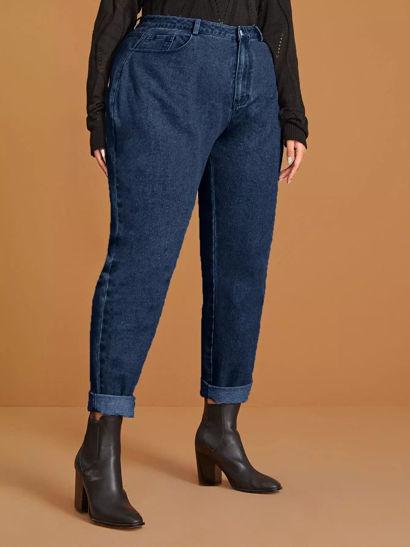 بنطلون جينز سادة بحاشية ملفوفة بلاس سادة للأمهات