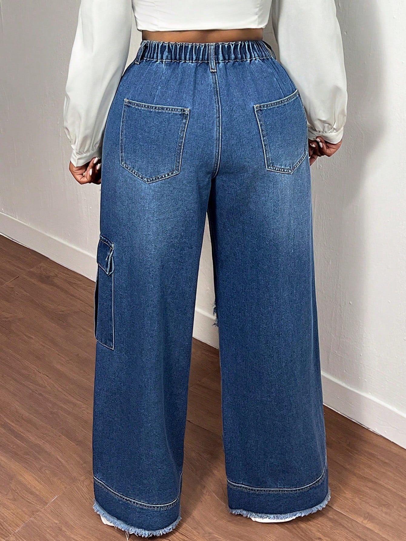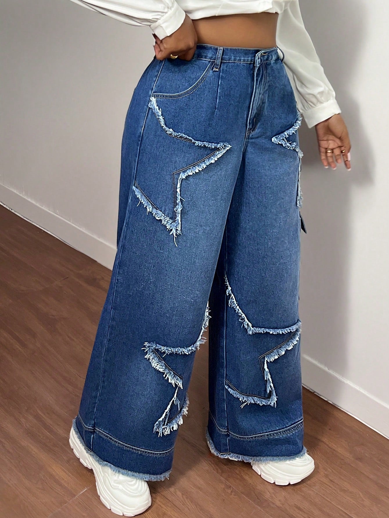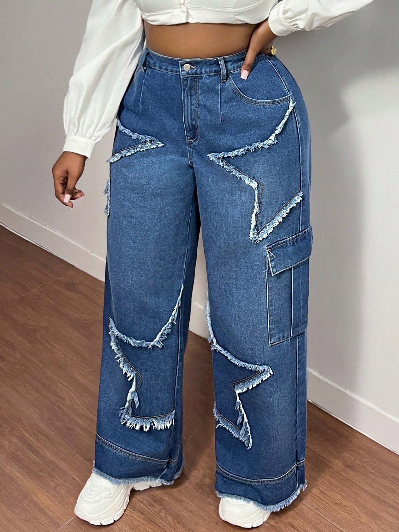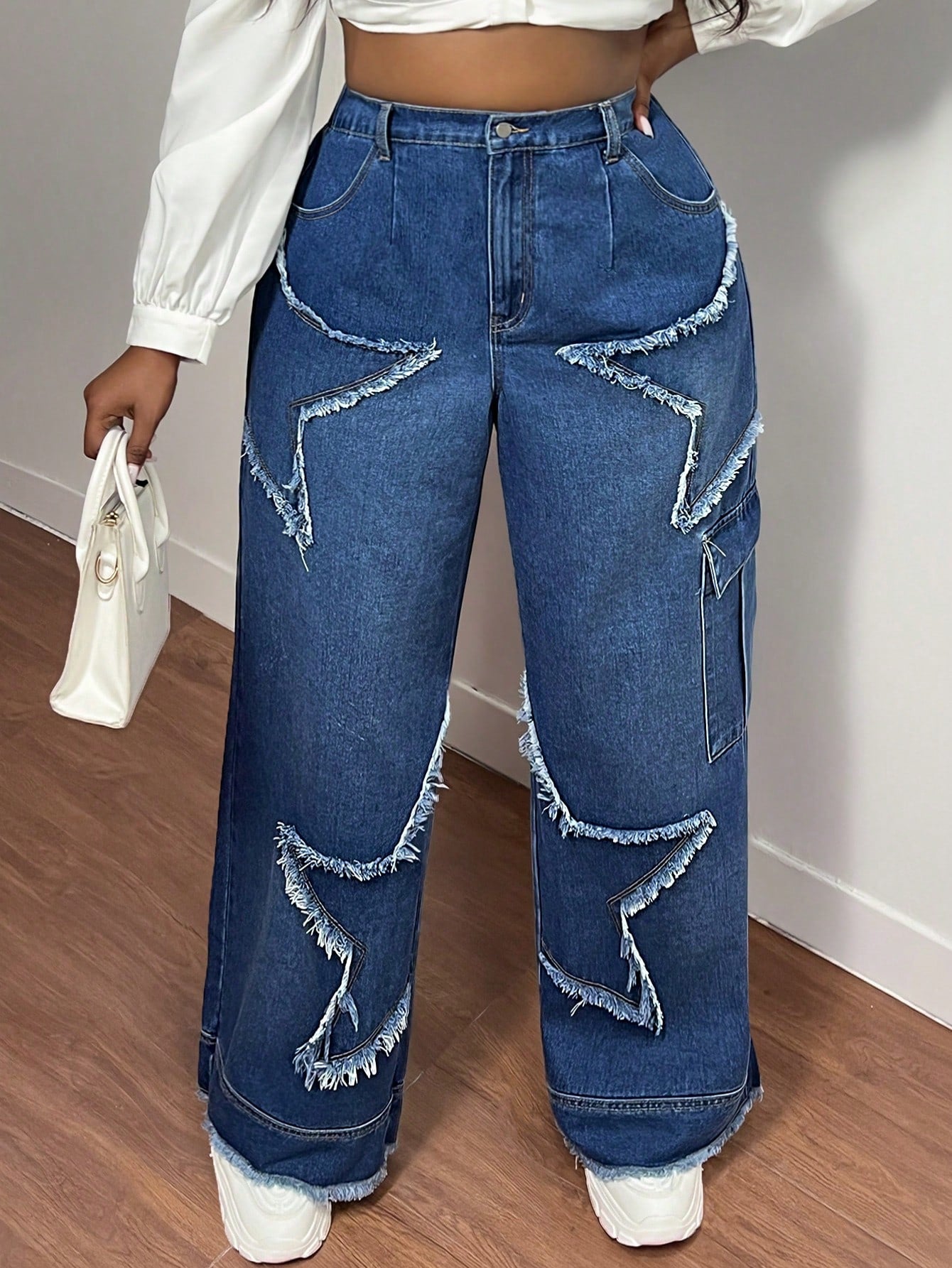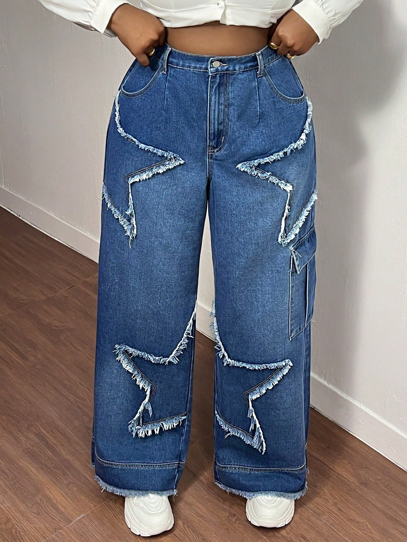 بنطلون جينز مستقيم بطبعة نجوم بمقاسات كبيرة من SXY مناسب لأعياد الميلاد