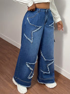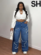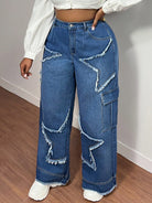 SXY Plus Size Star Print Straight Denim Casual Pants For Christmas