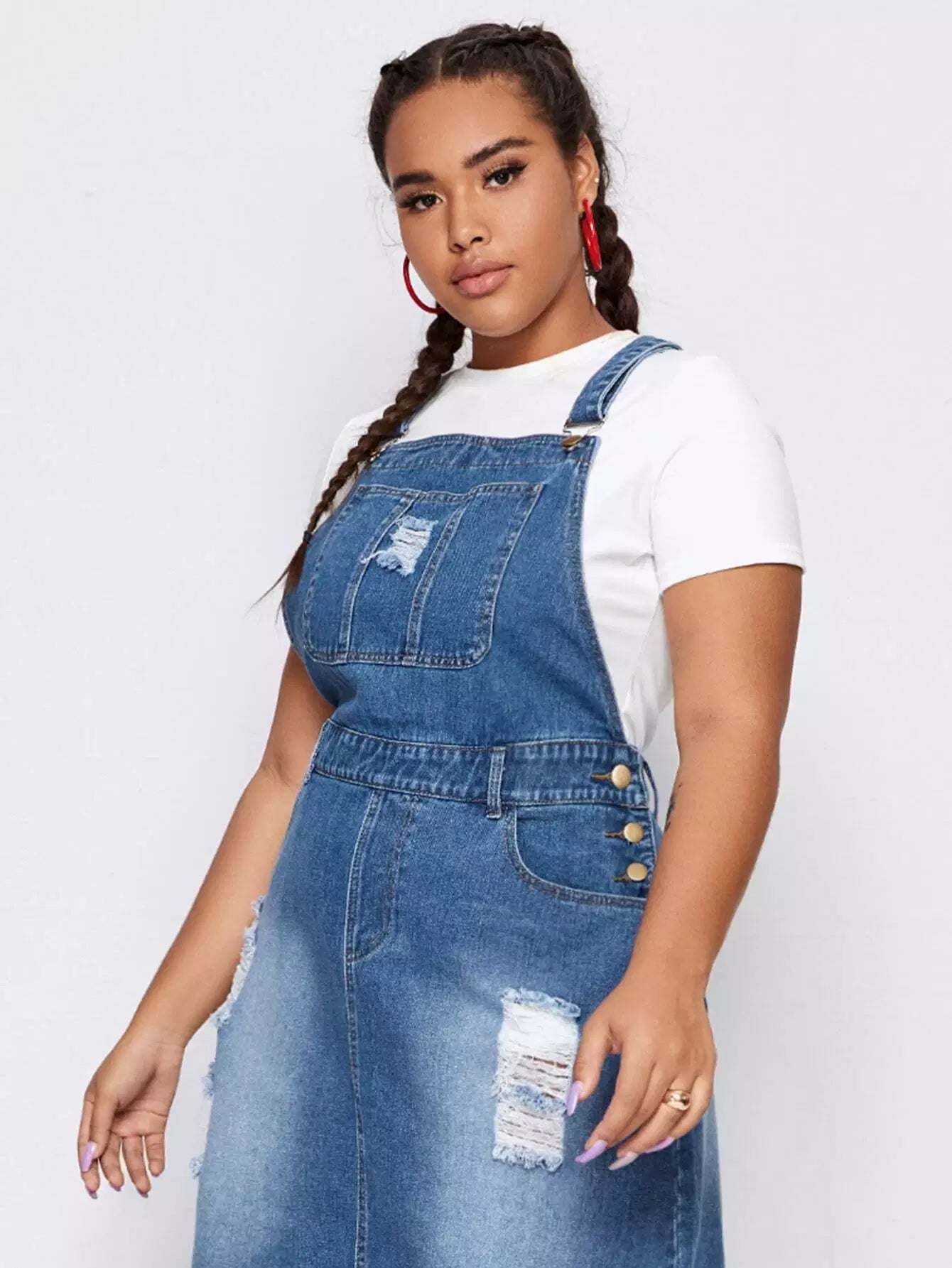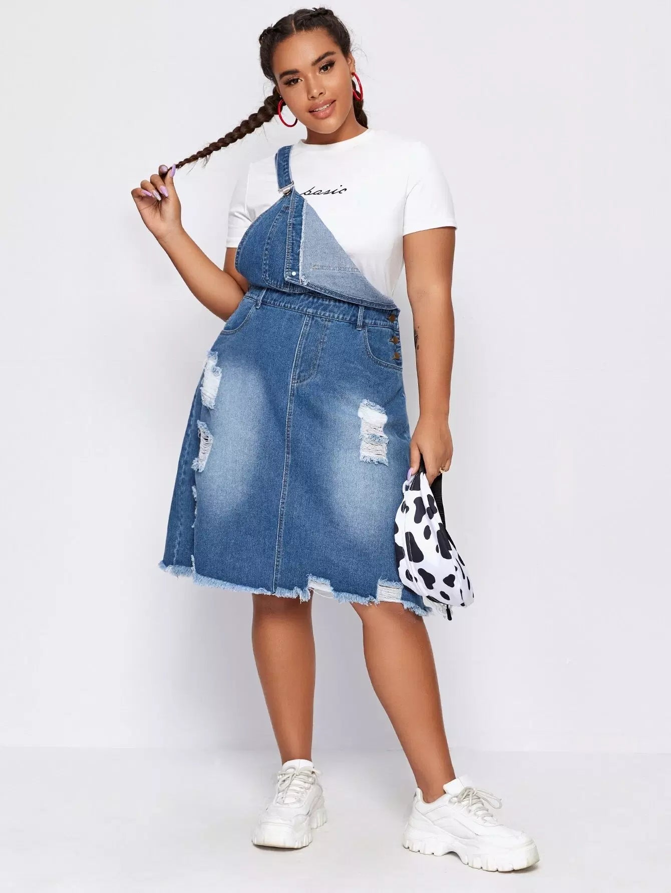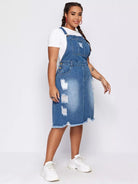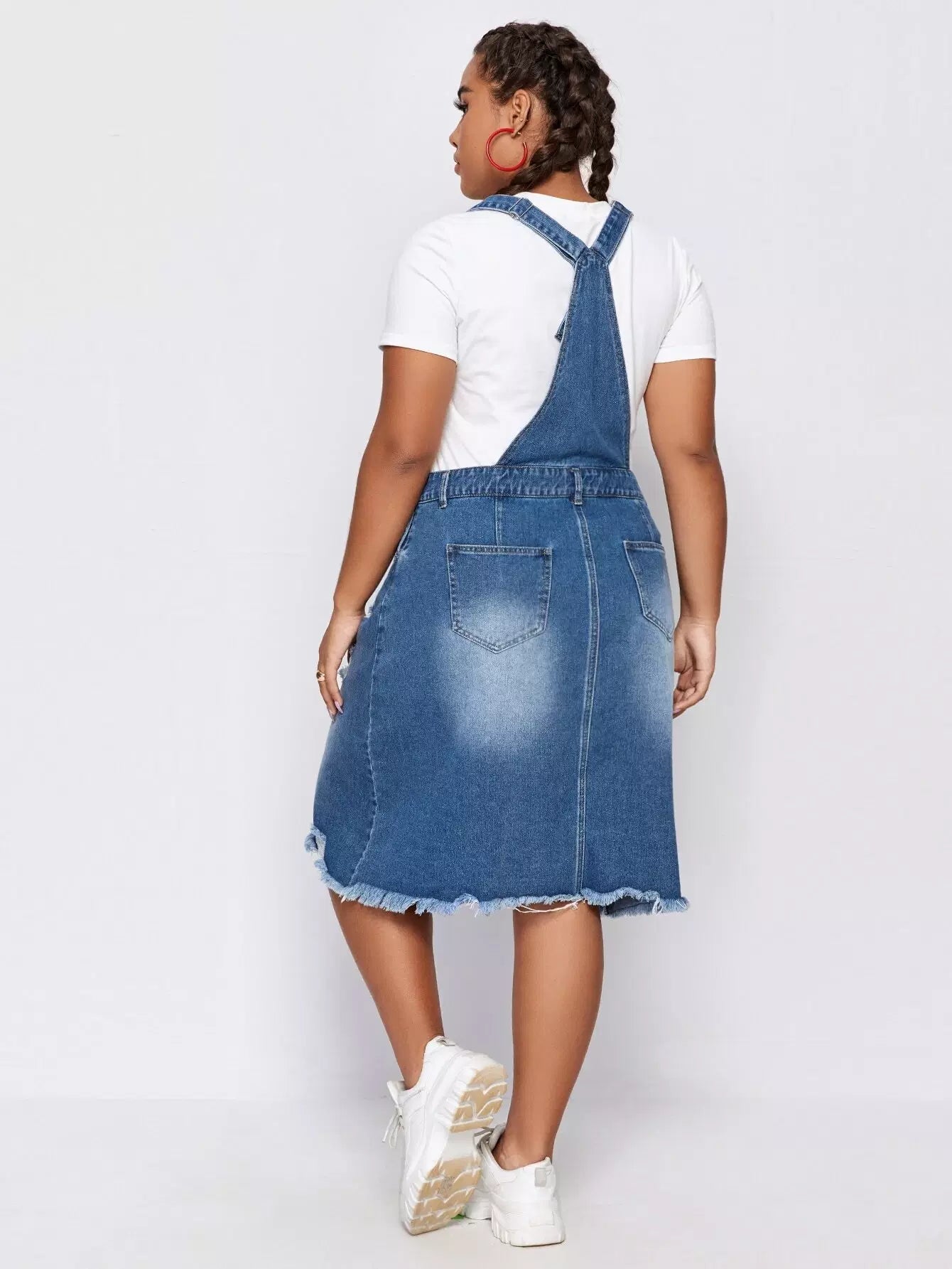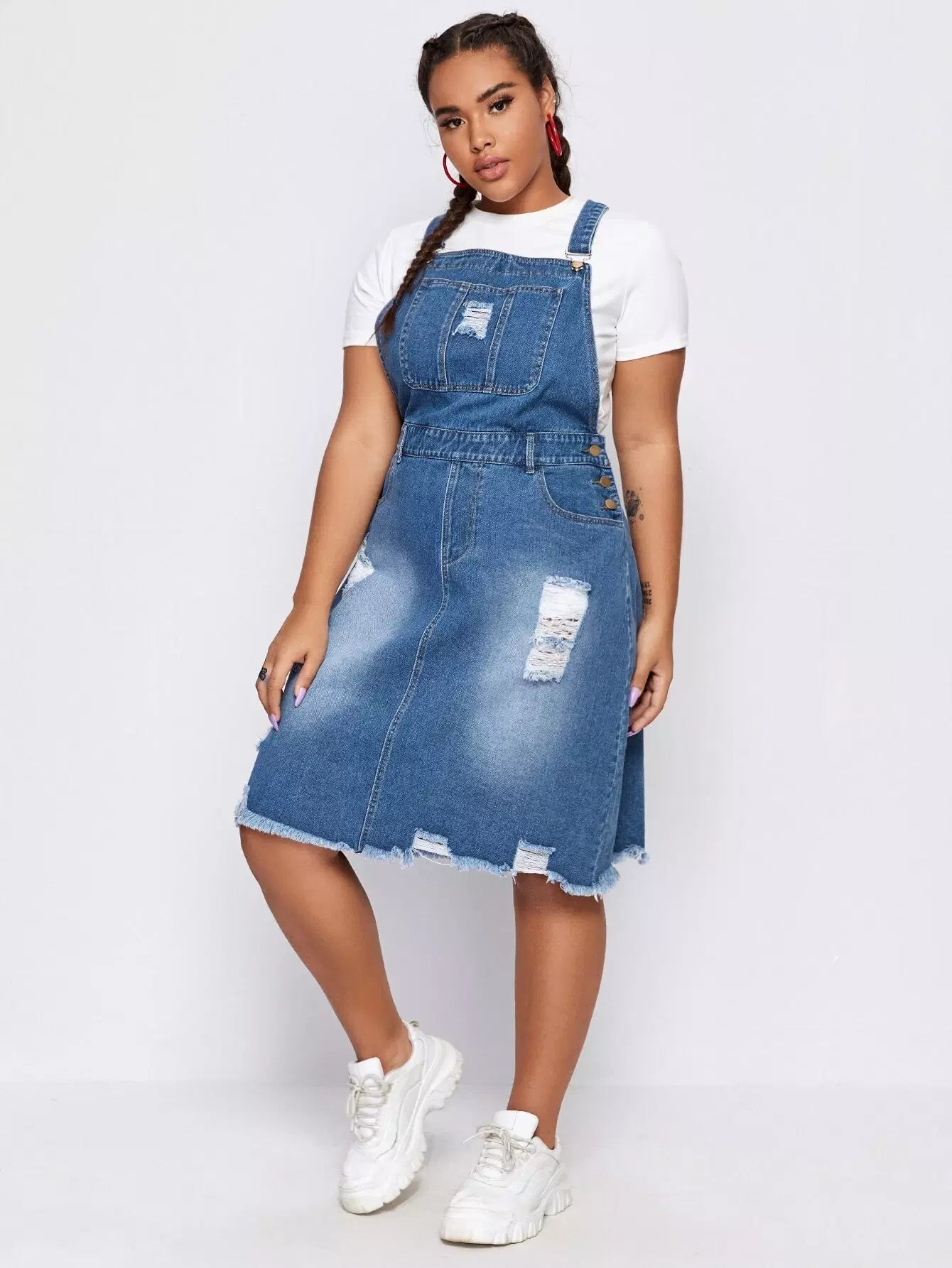 فستان دنيم بحواف ممزق ومزخرف بحواف خام
