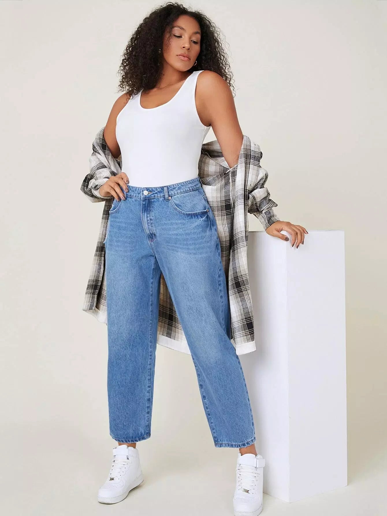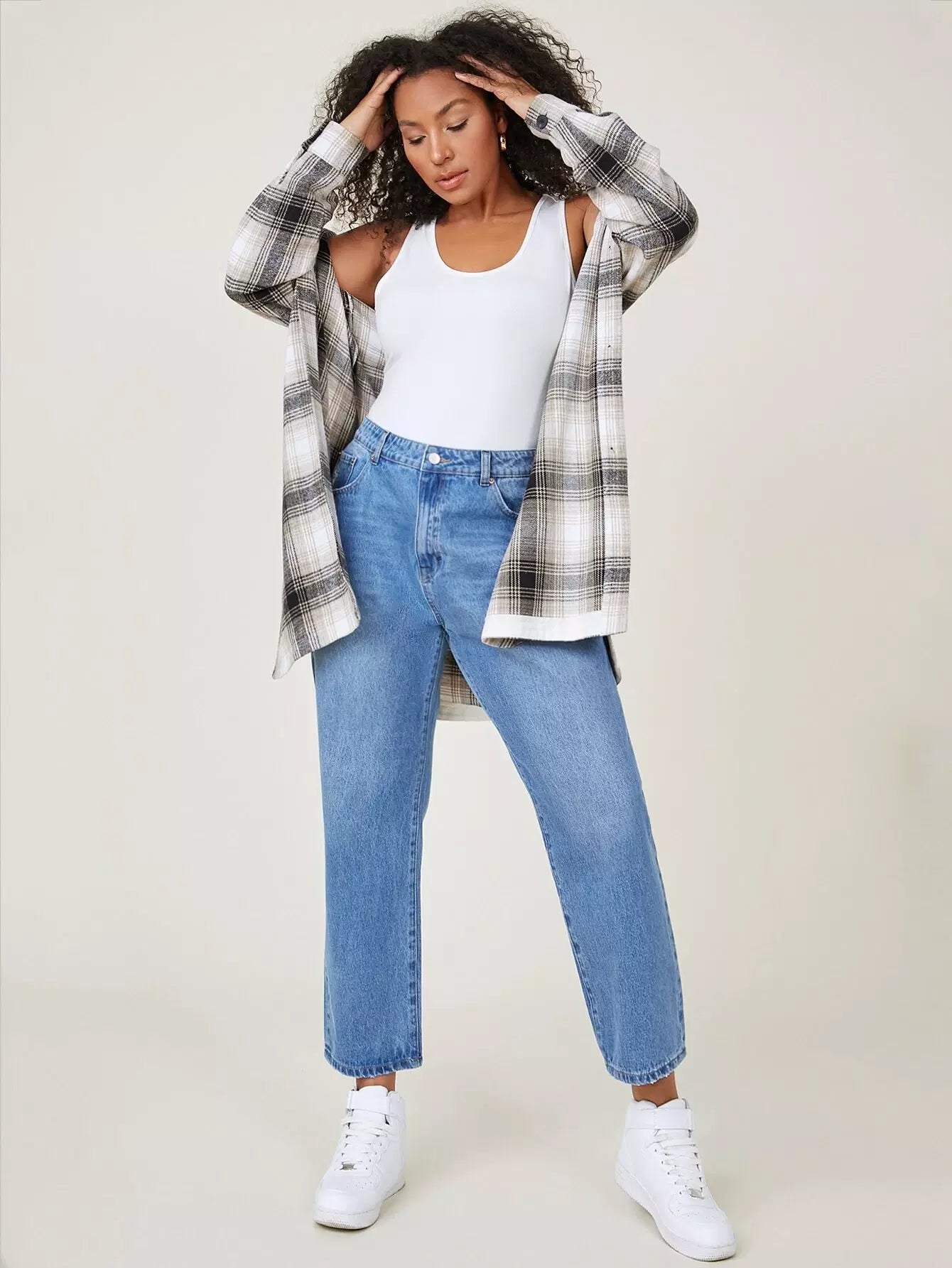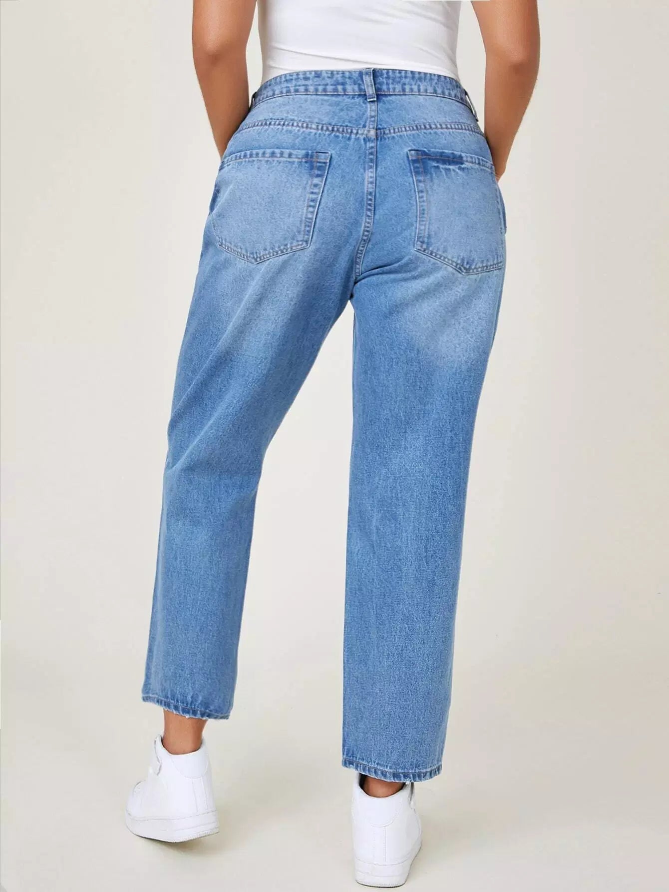 بنطلون جينز قصير بخصر عالٍ زائد للأمهات