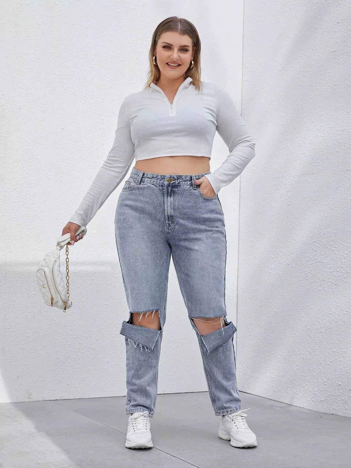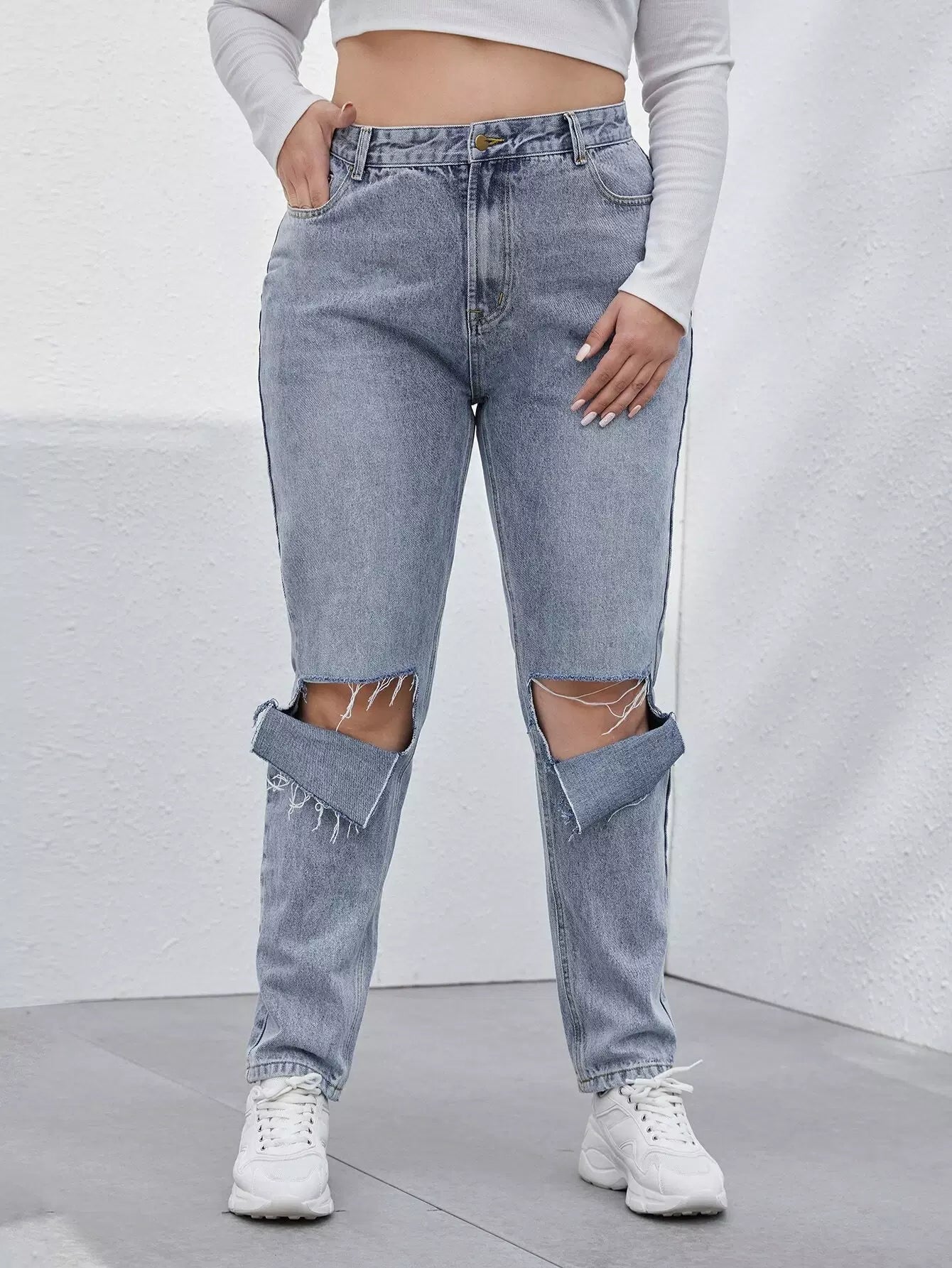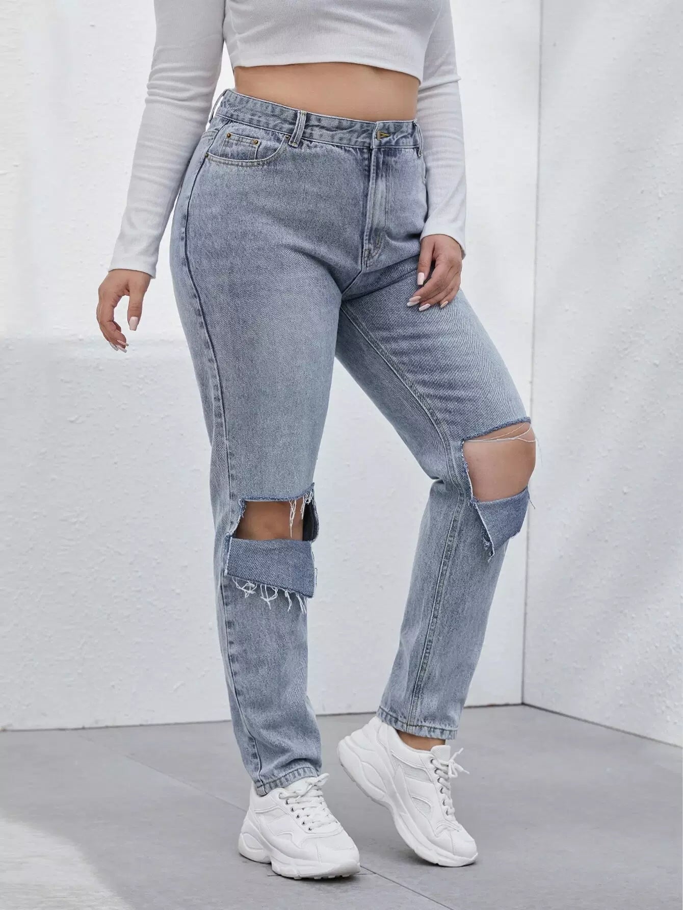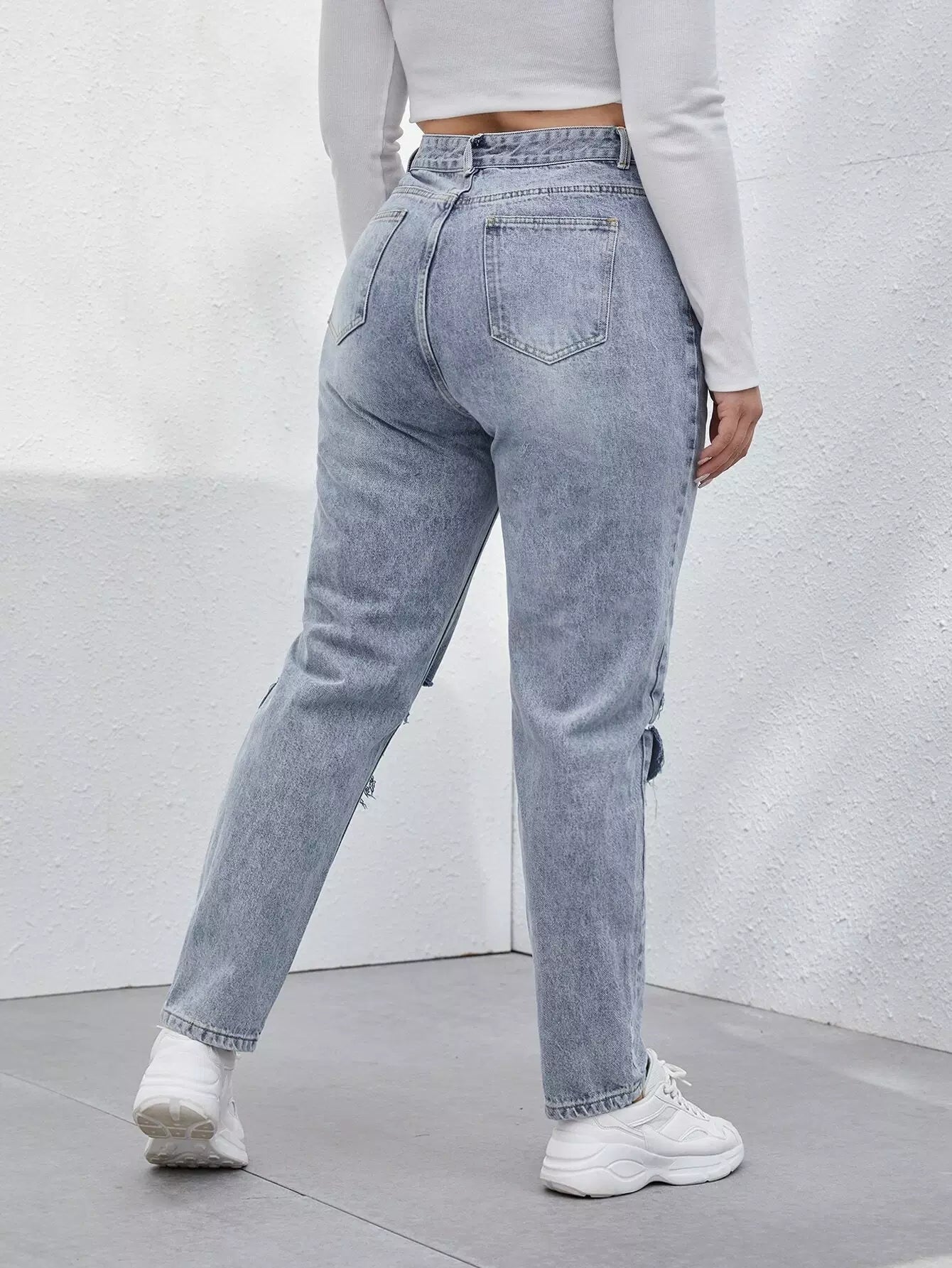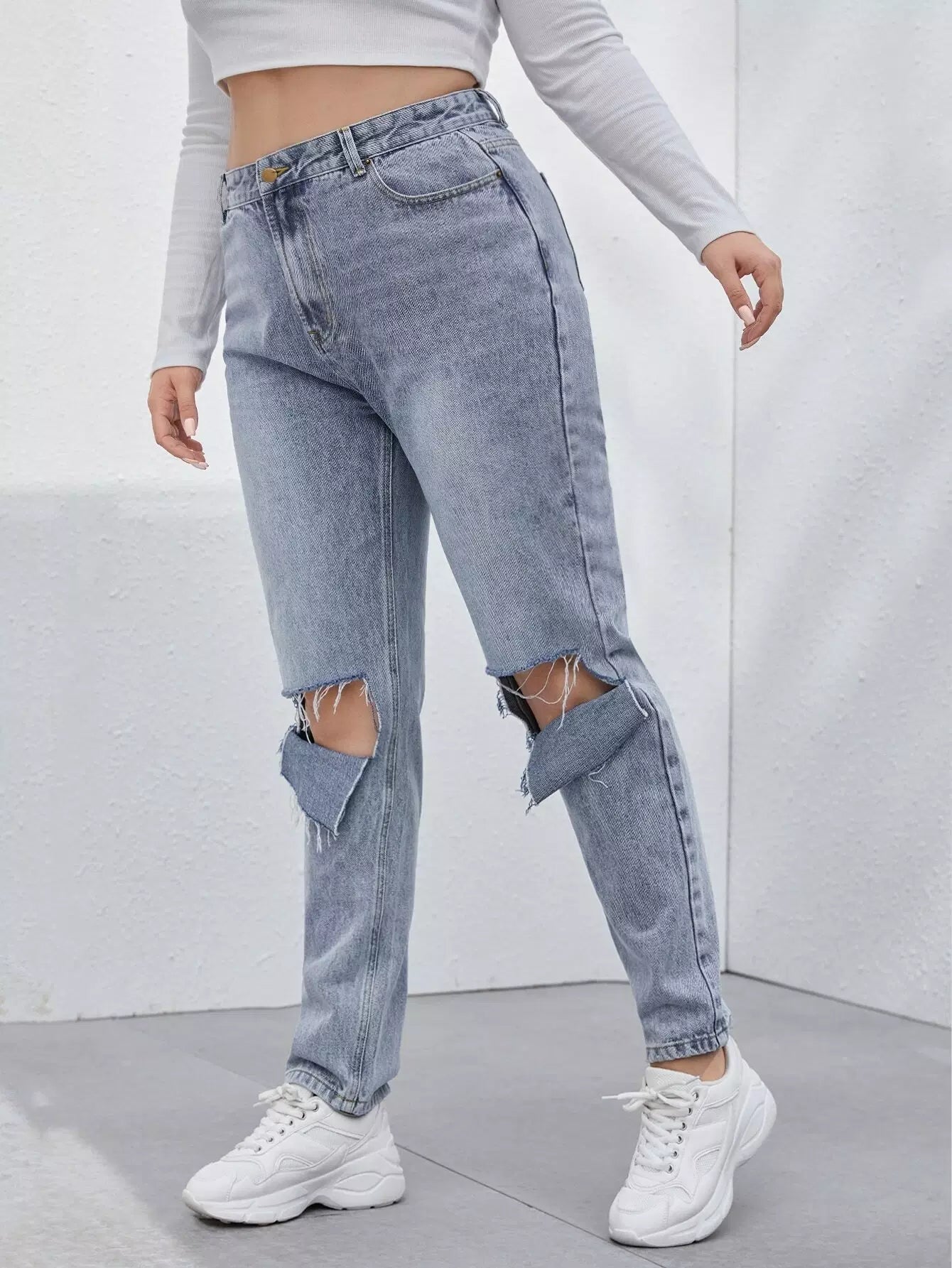 بنطلون جينز بخصر عالٍ ممزق ومناسب للأمهات