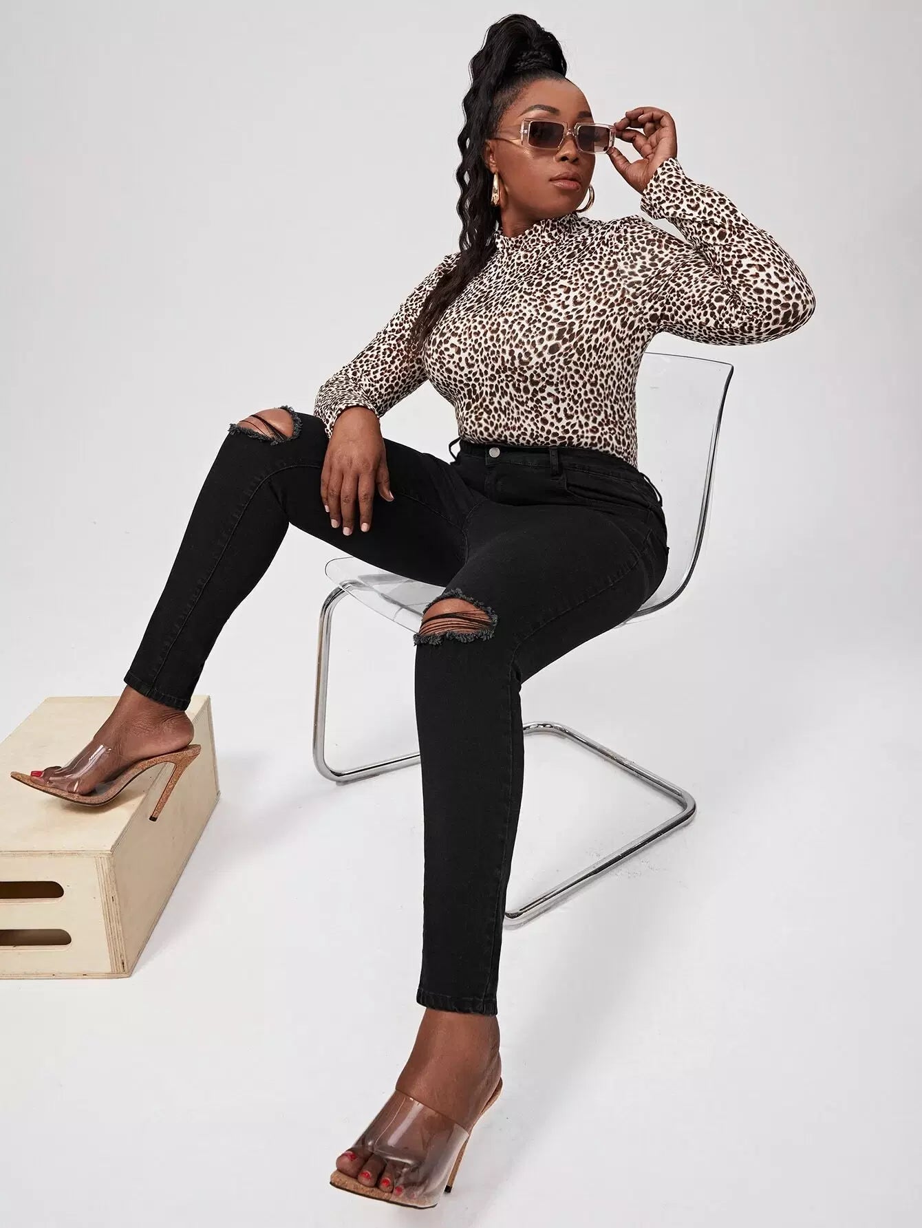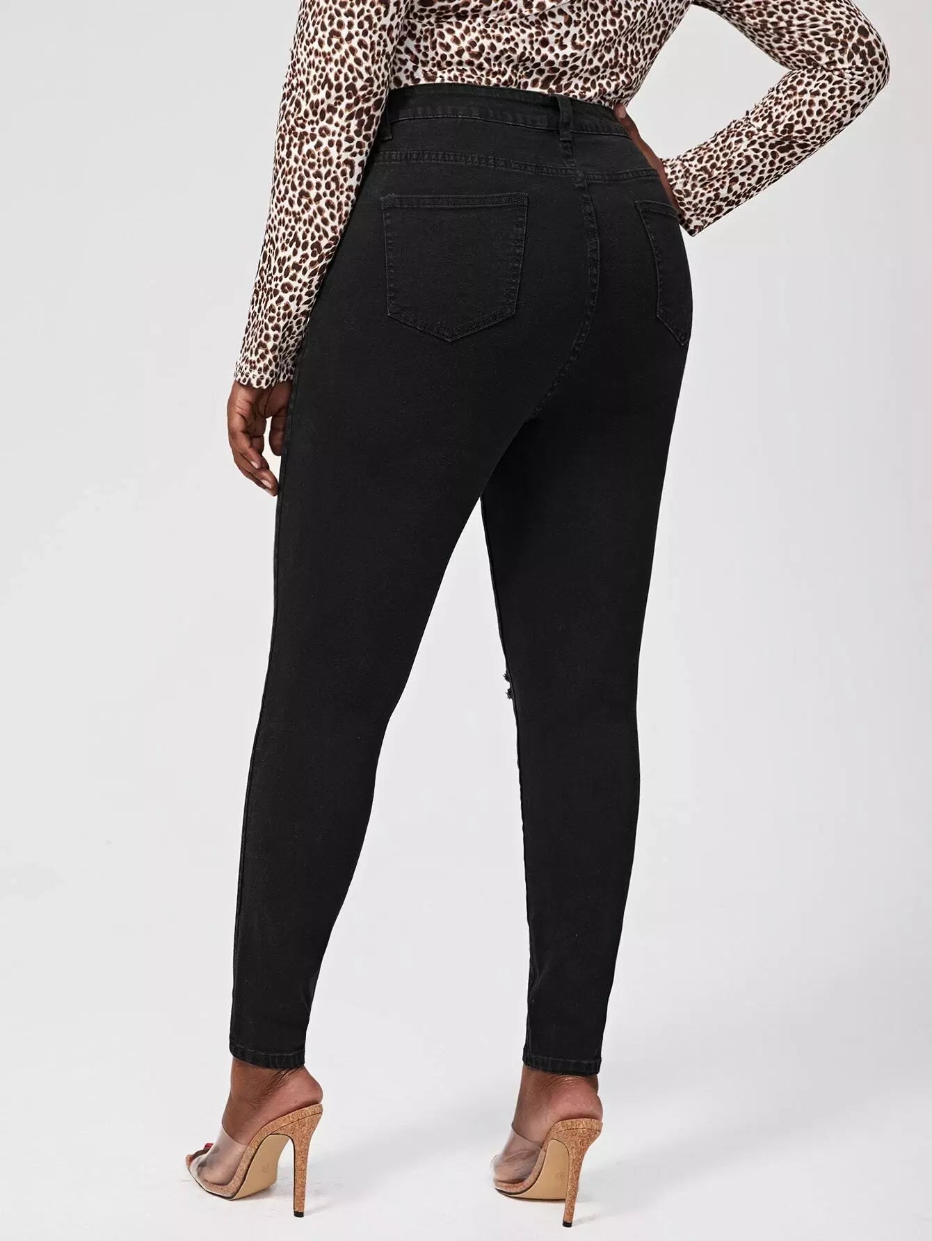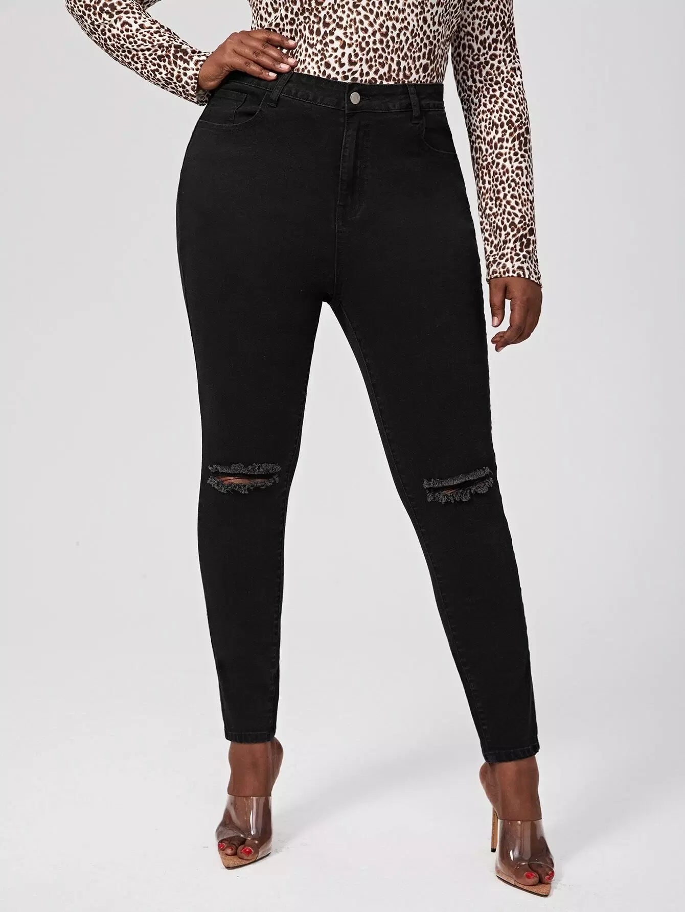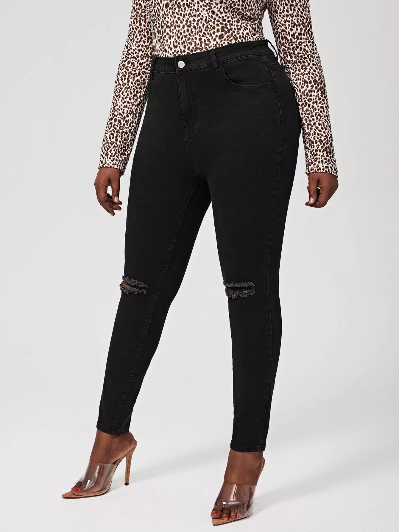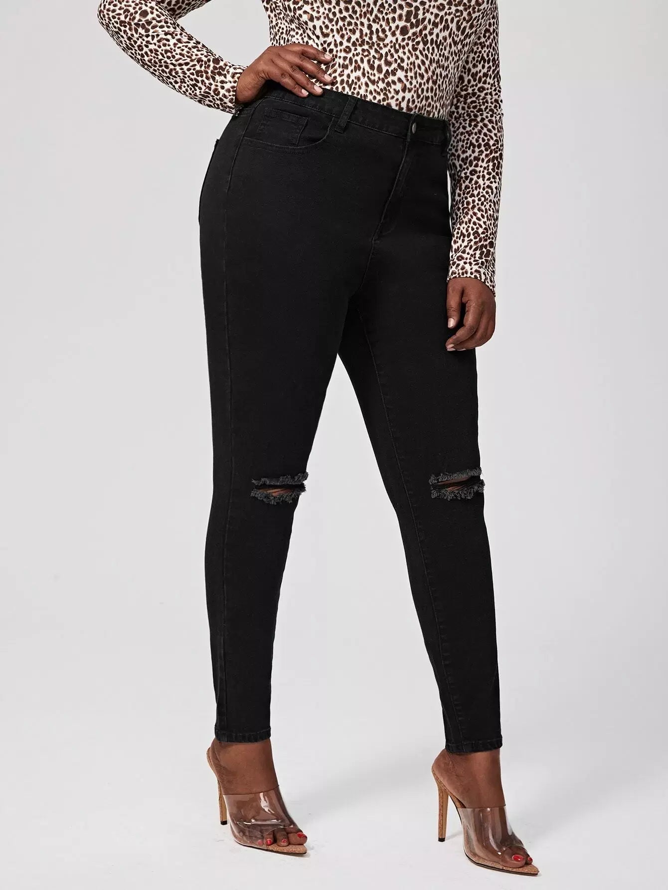بنطال جينز جينز سكيني ممزق بجيب مائل ممزق بلس