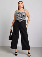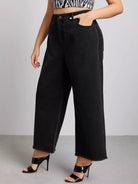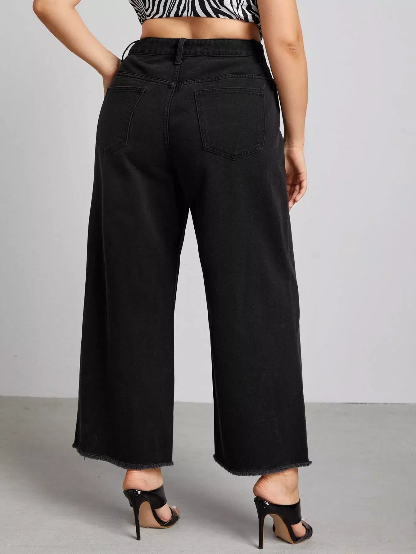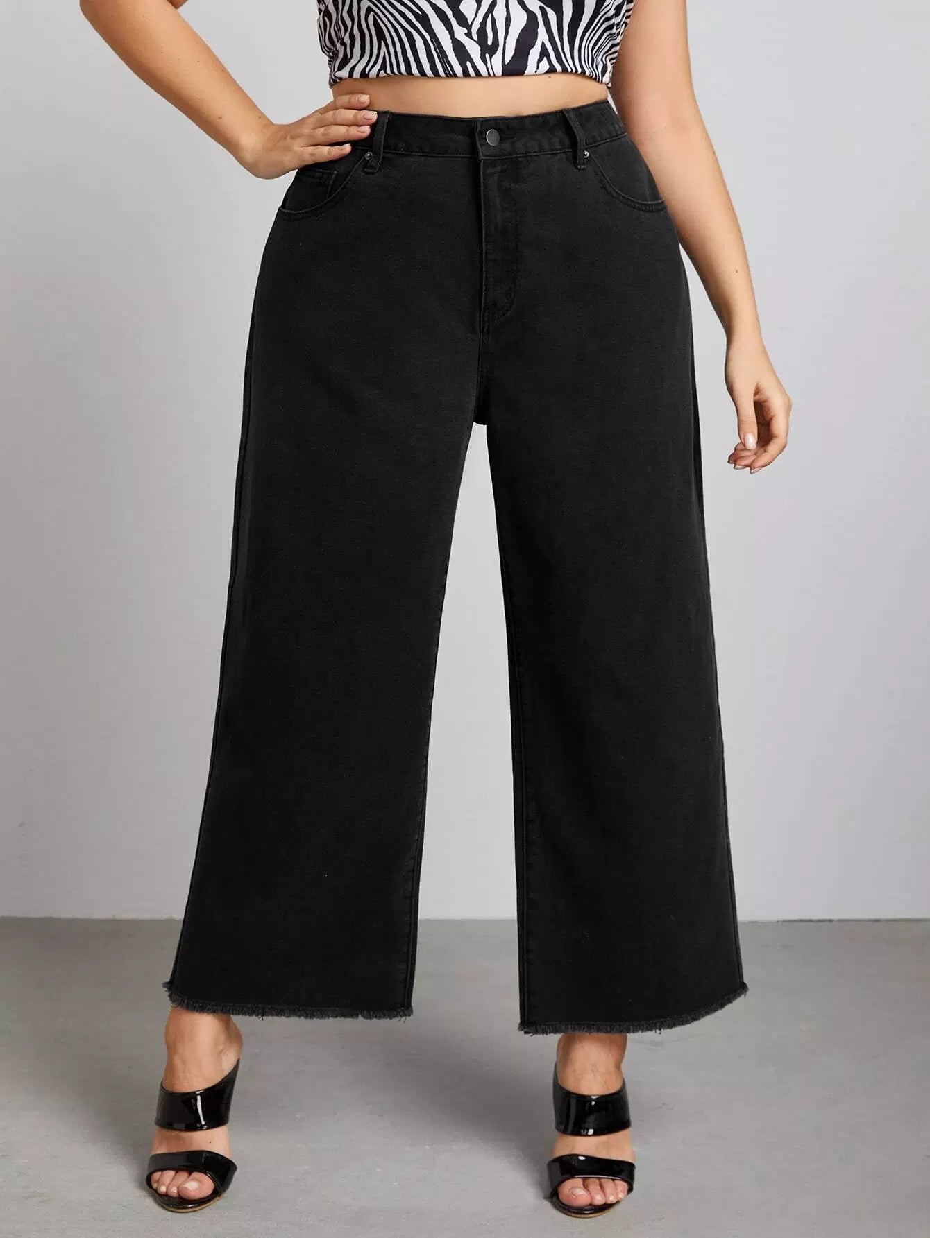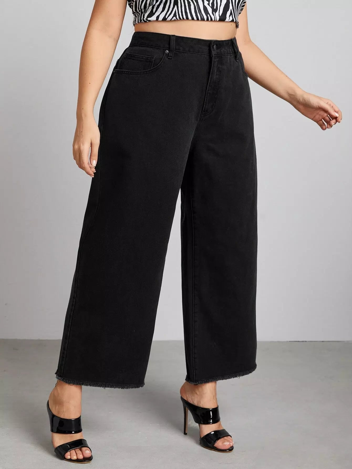 بنطلون جينز بحافة سادة سادة بحواف واسعة الساقين