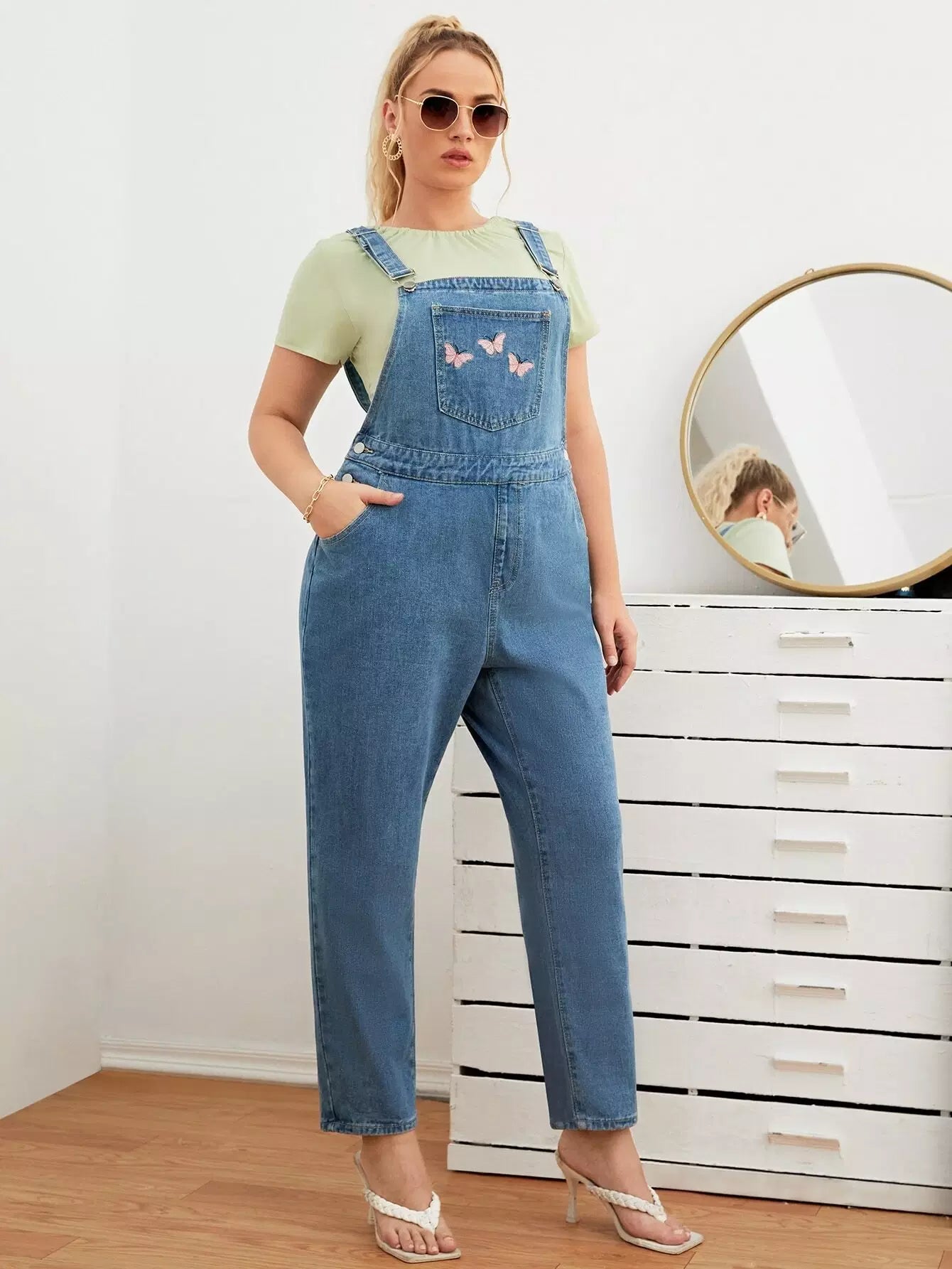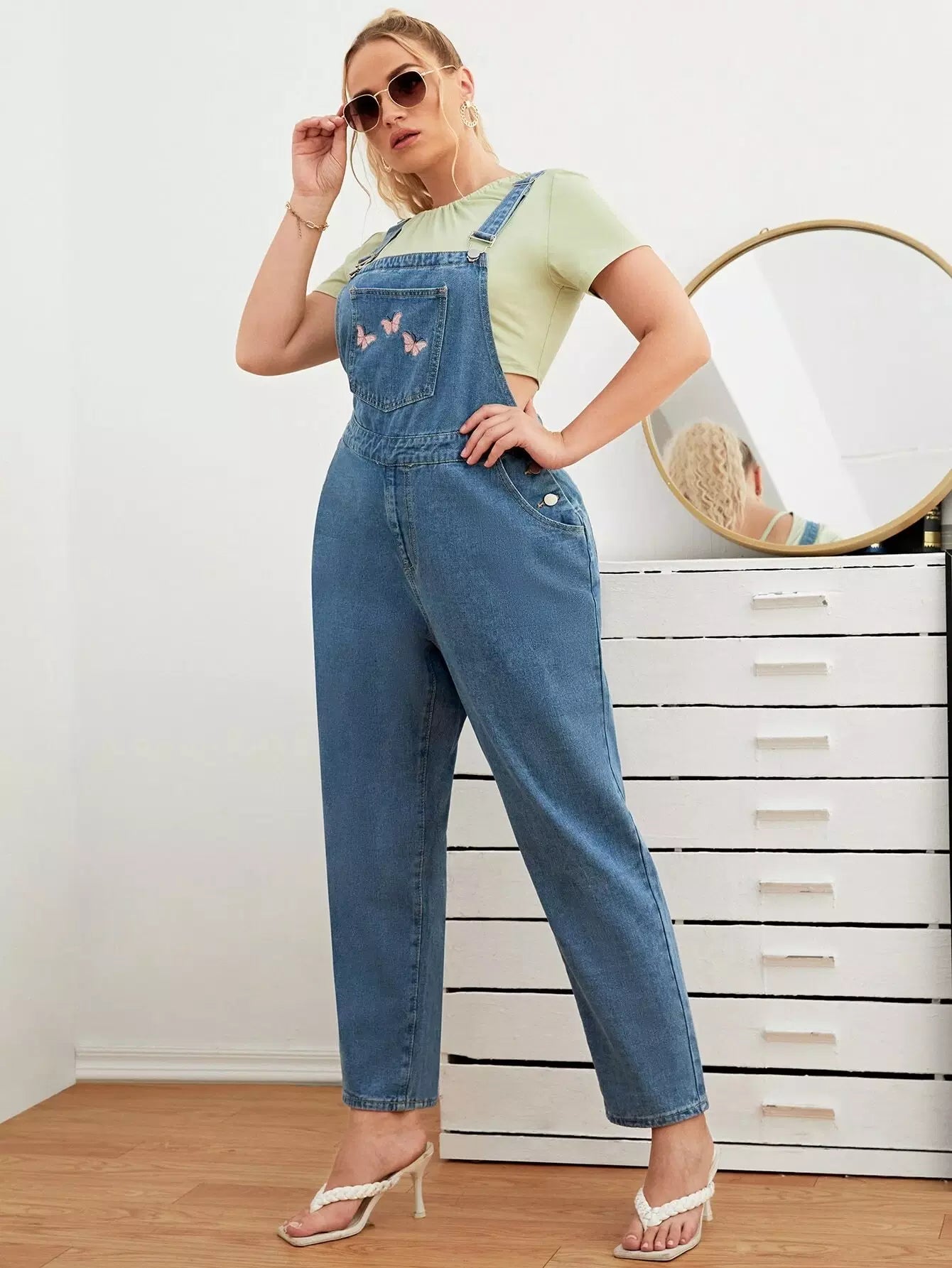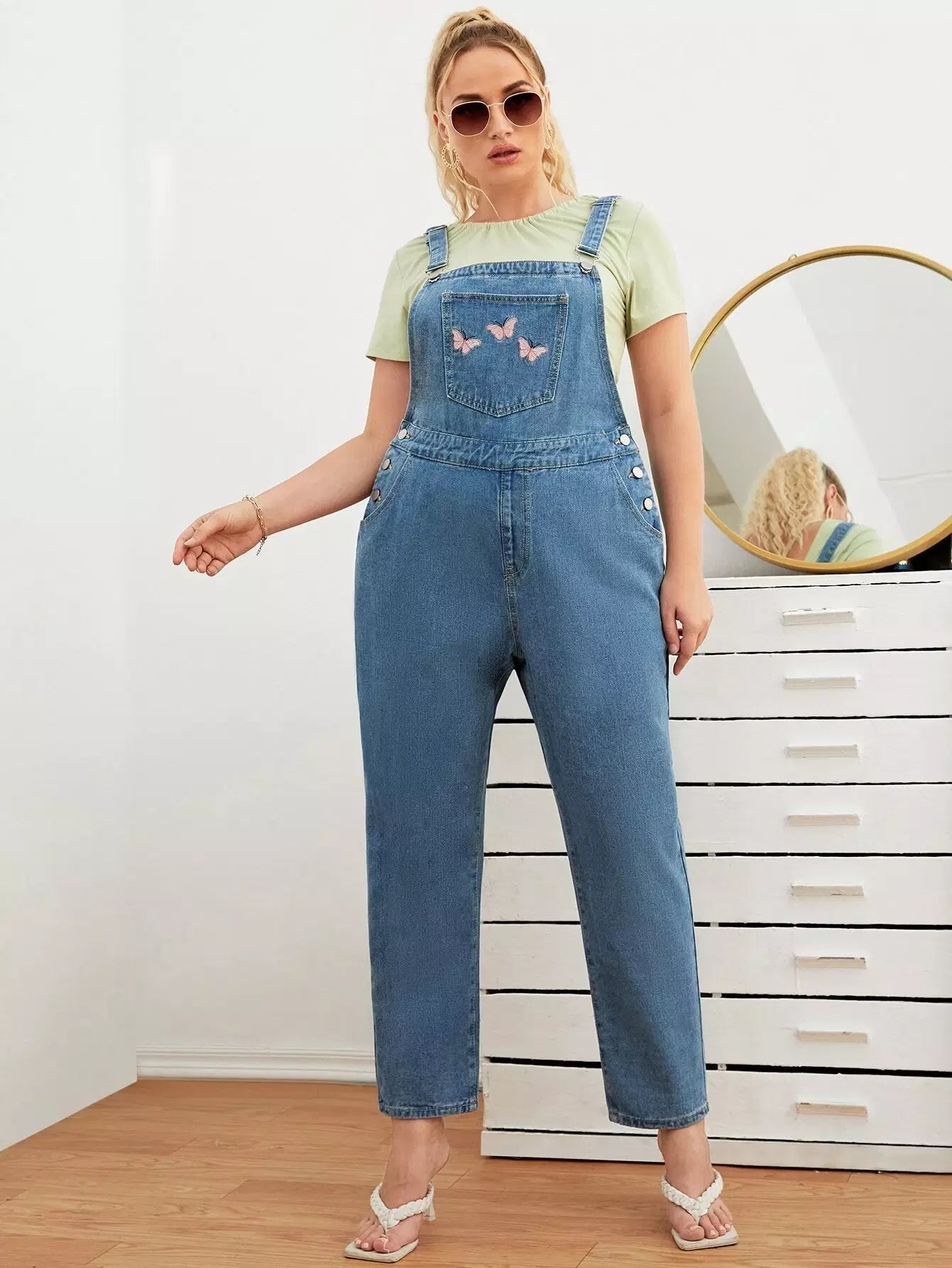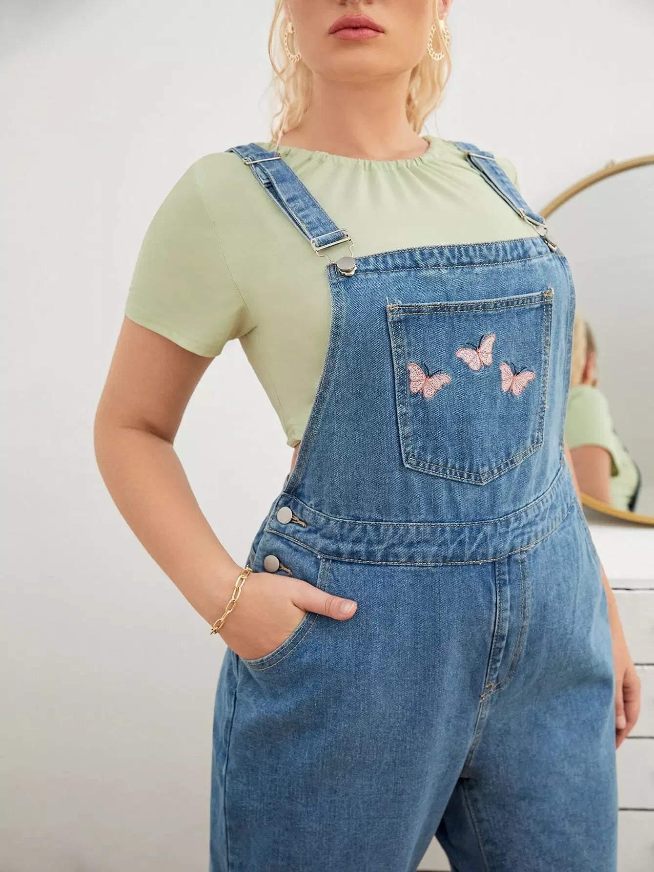 وزرة دنيم بتطريز فراشة زائد