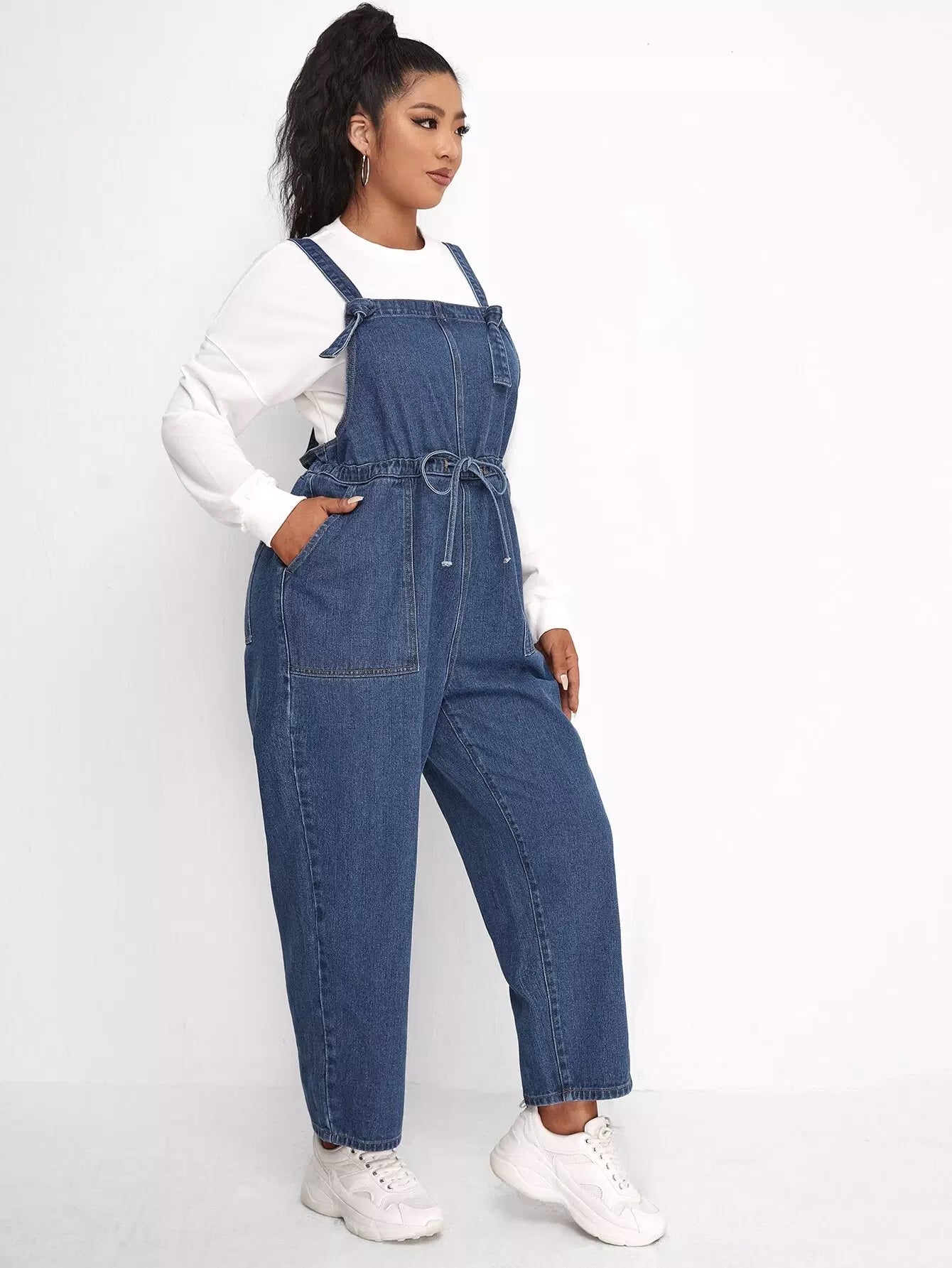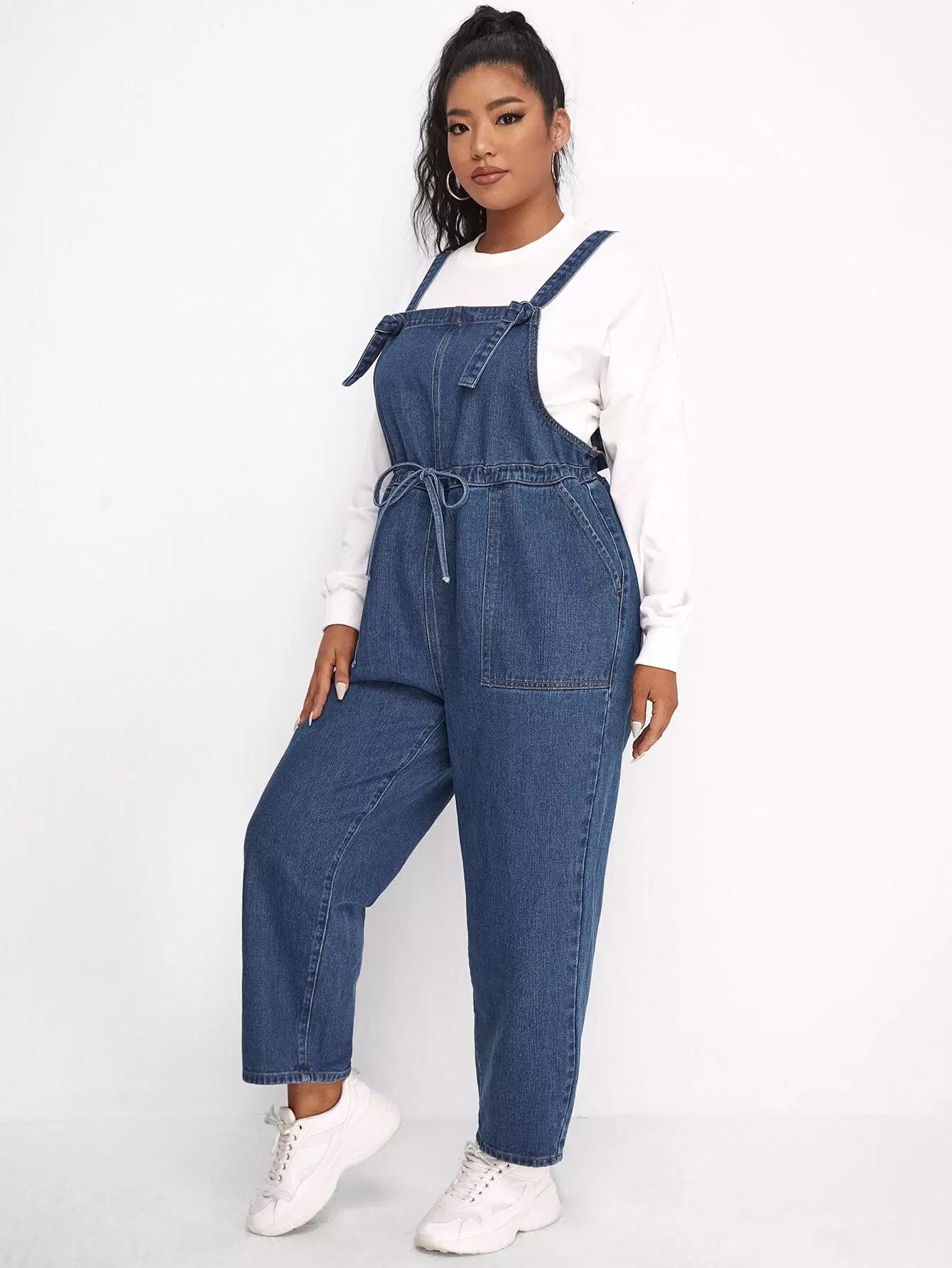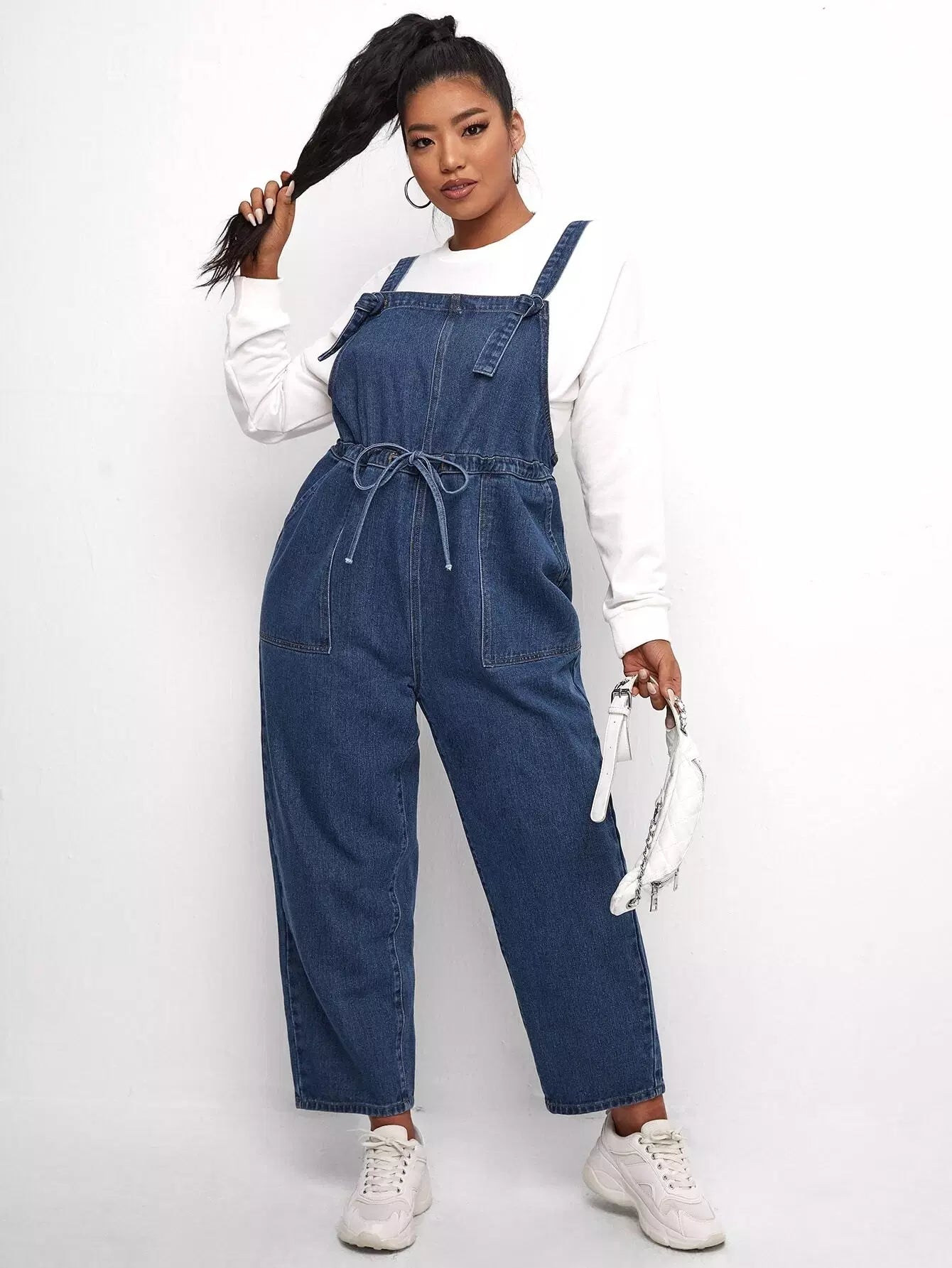 أفرول دنيم برباط خصر زائد من الدنيم