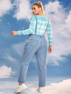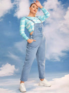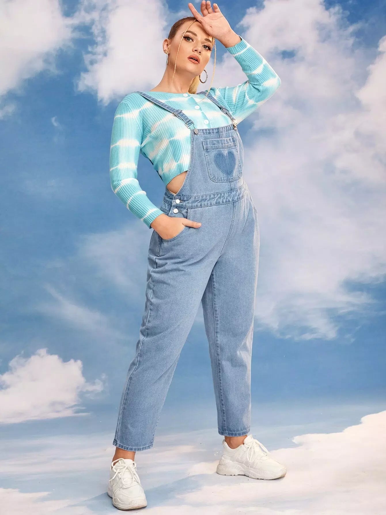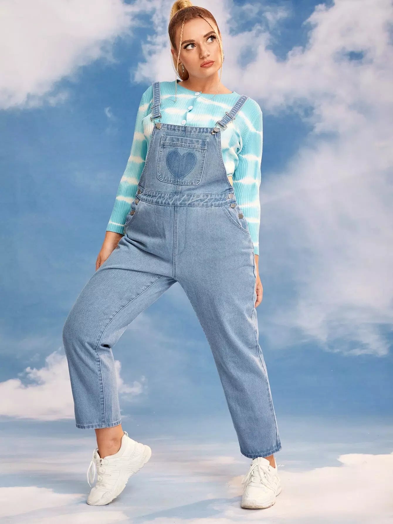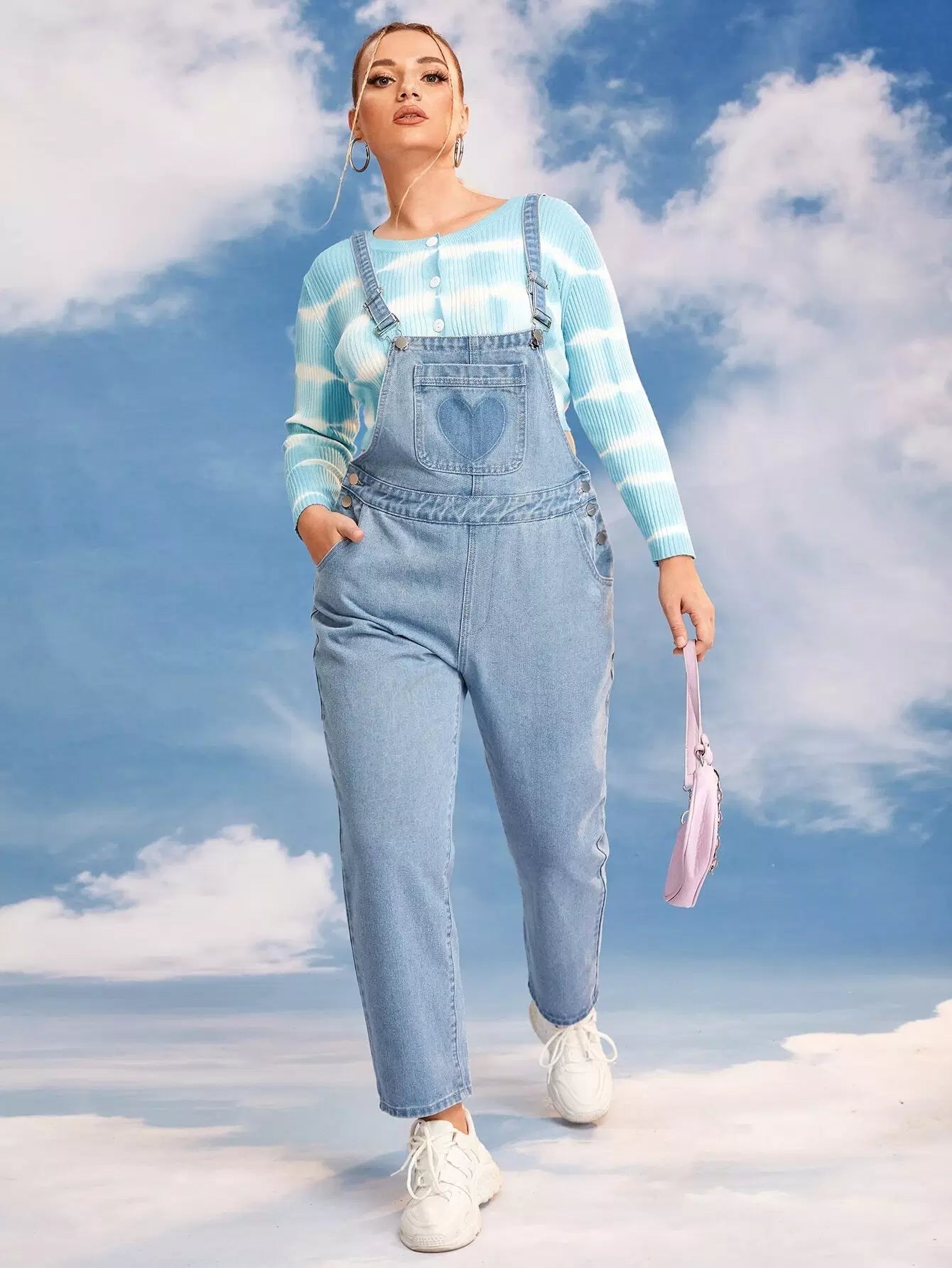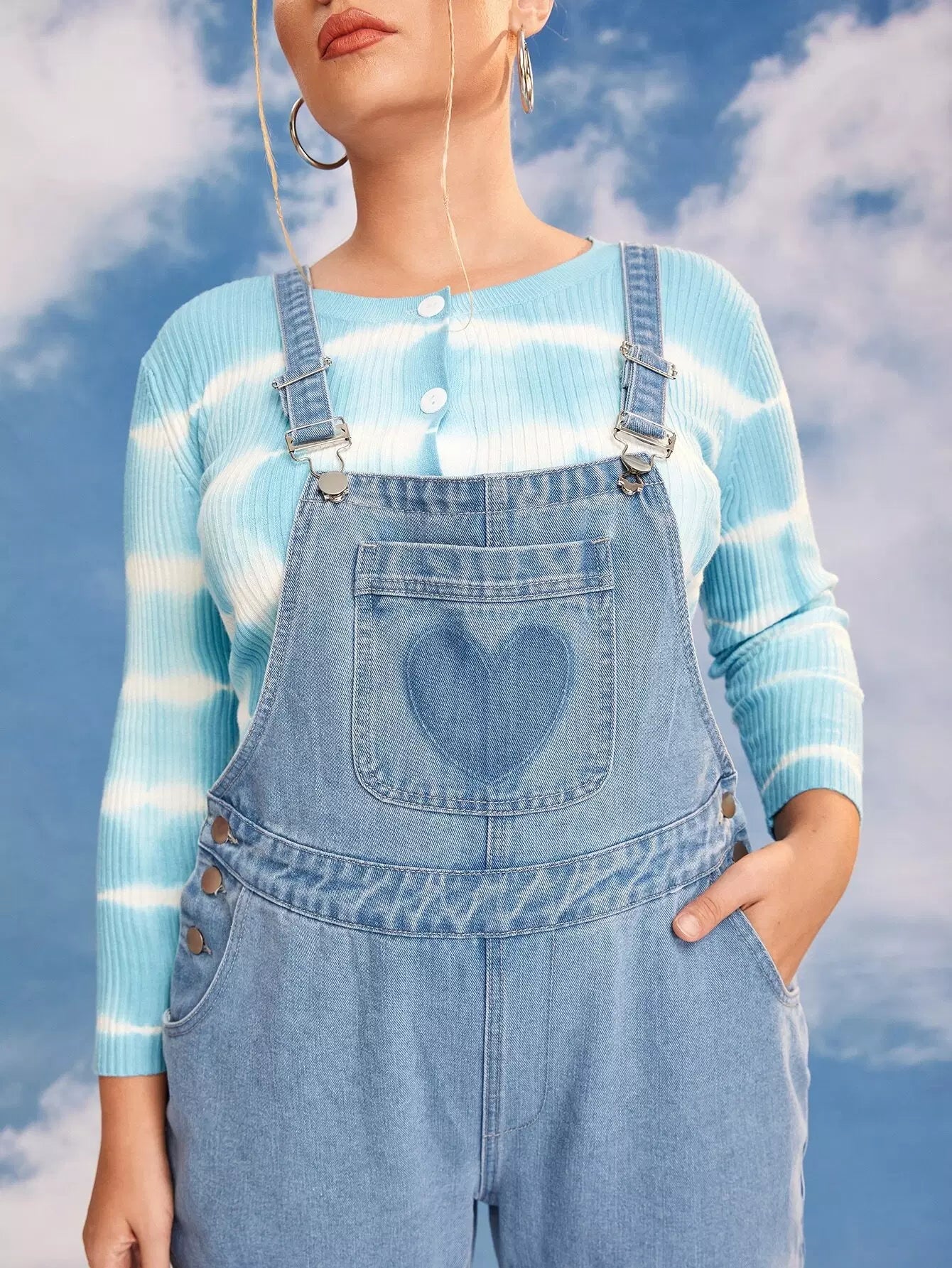 وزرة دنيم بنقشة قلب مغسول بلس فاتح اللون