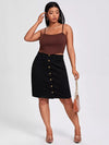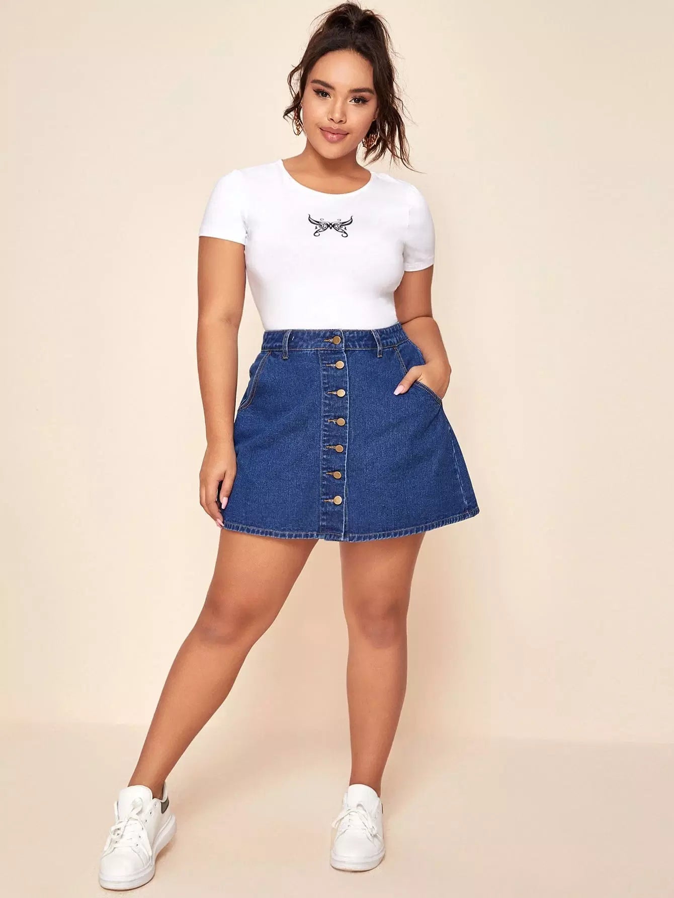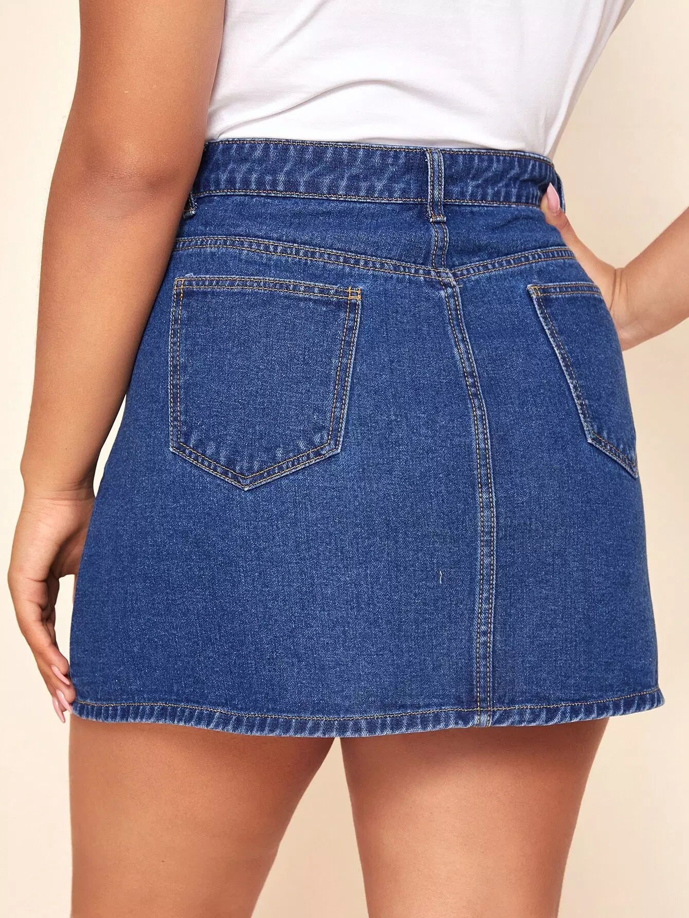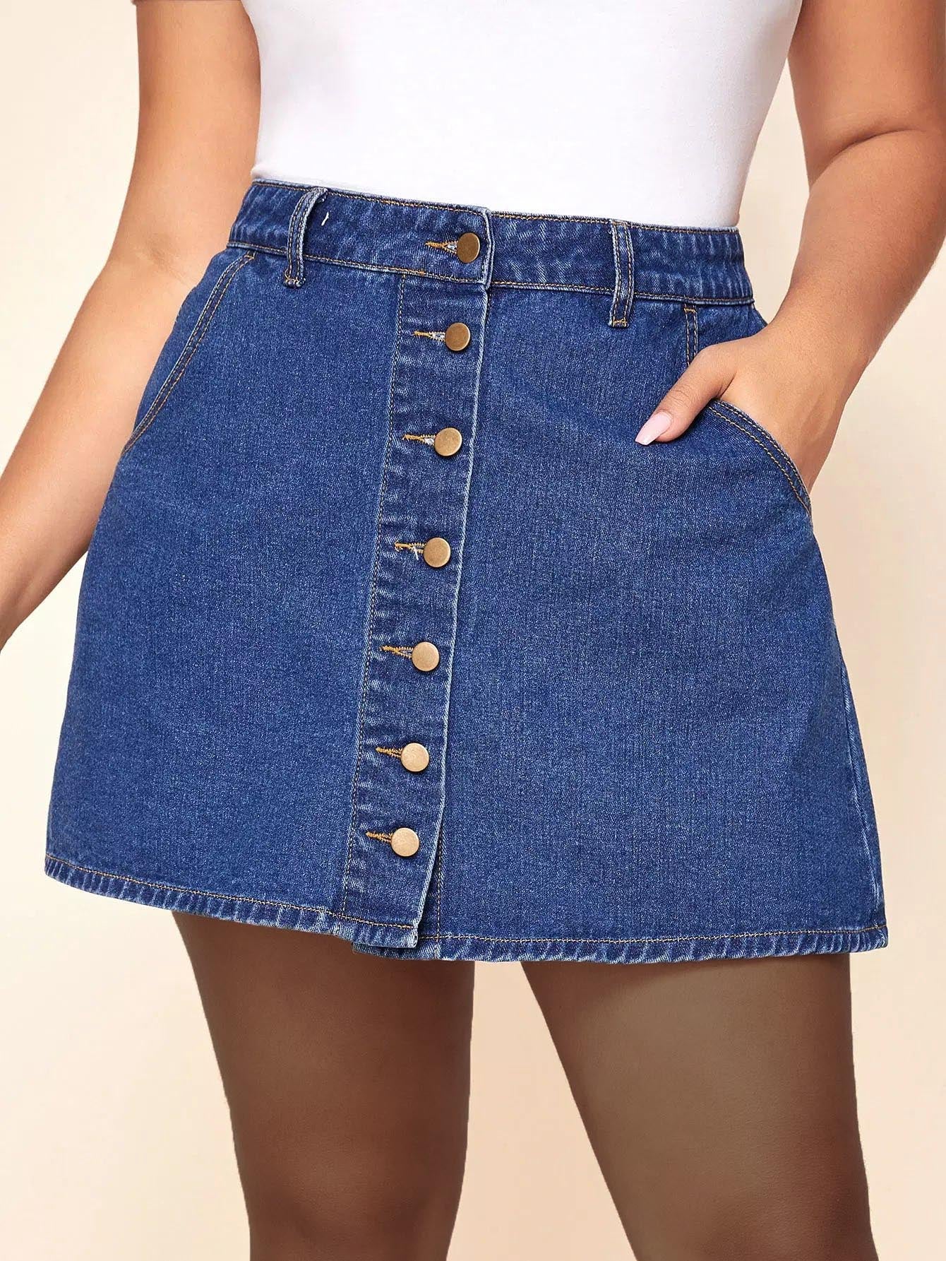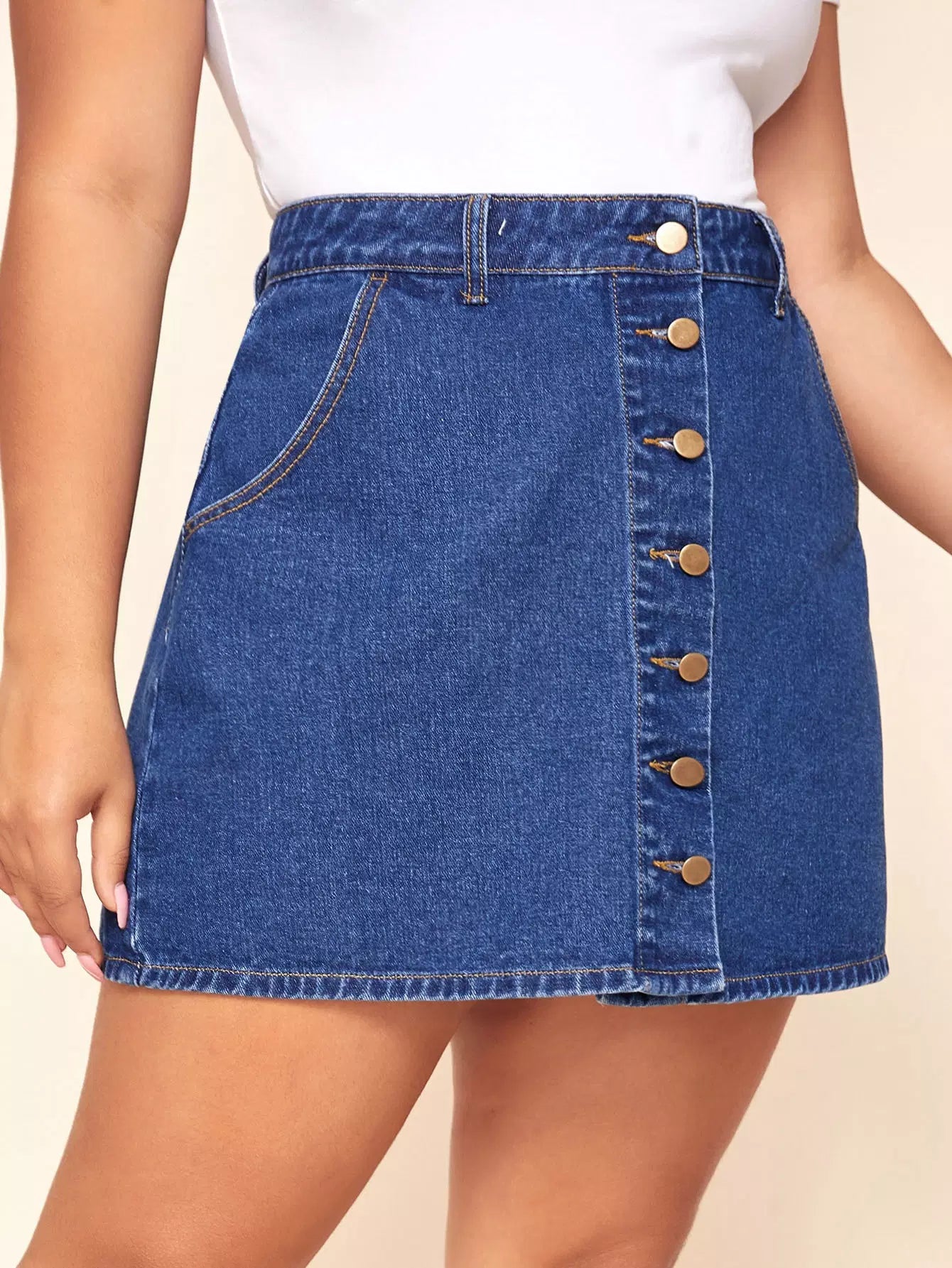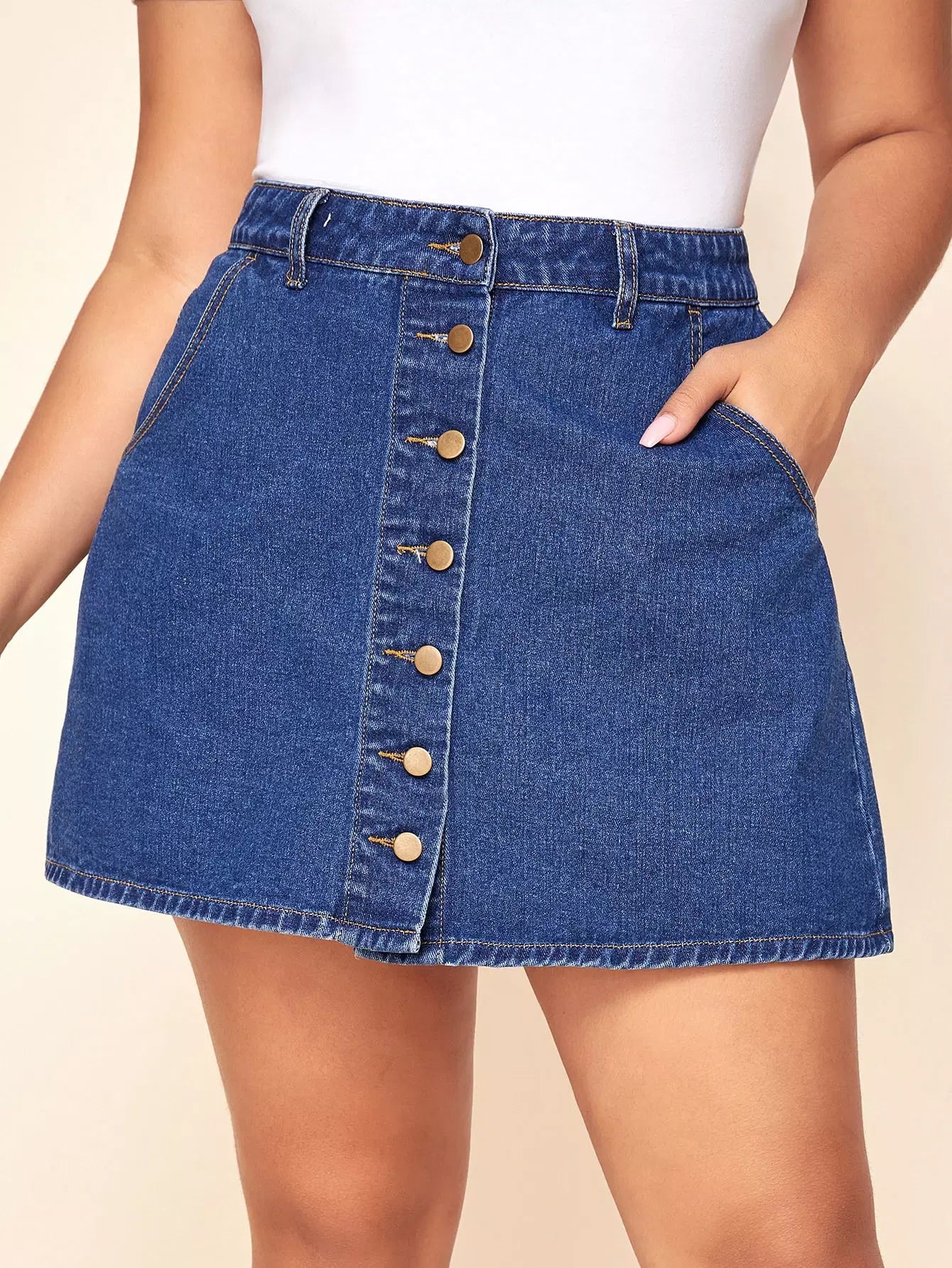 نحيف - مقاس كبير تنورة جينز بأزرار أمامية