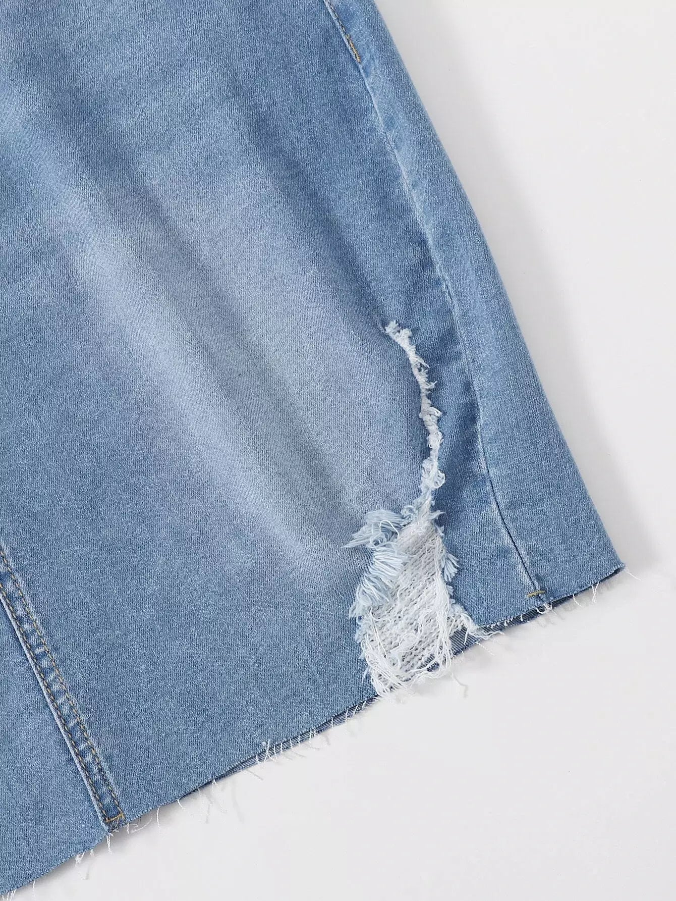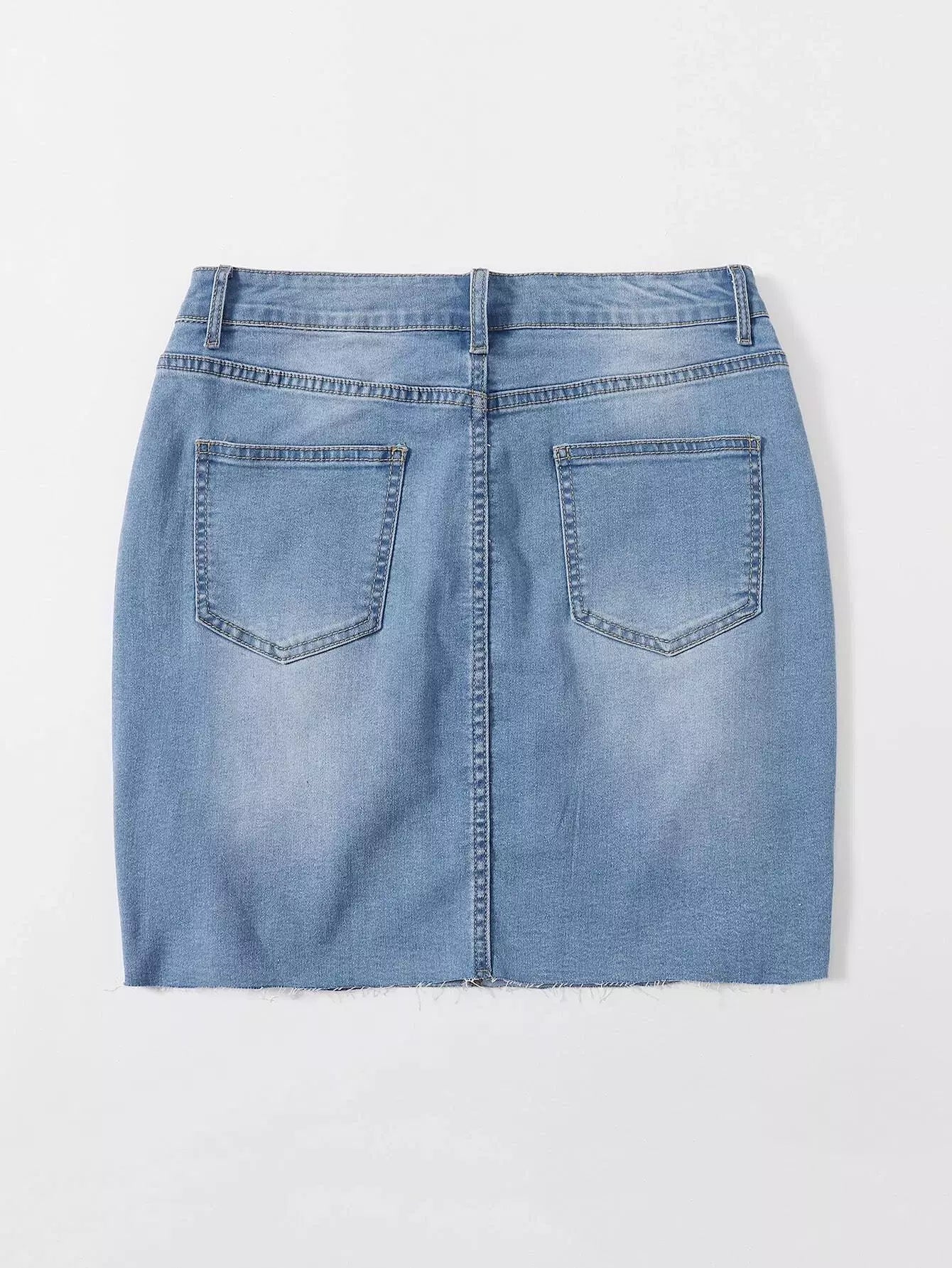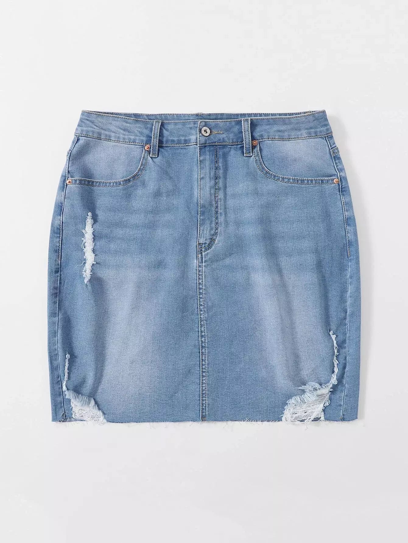 تنورة دنيم ممزقة، غسيل خفيف بلاس بلس