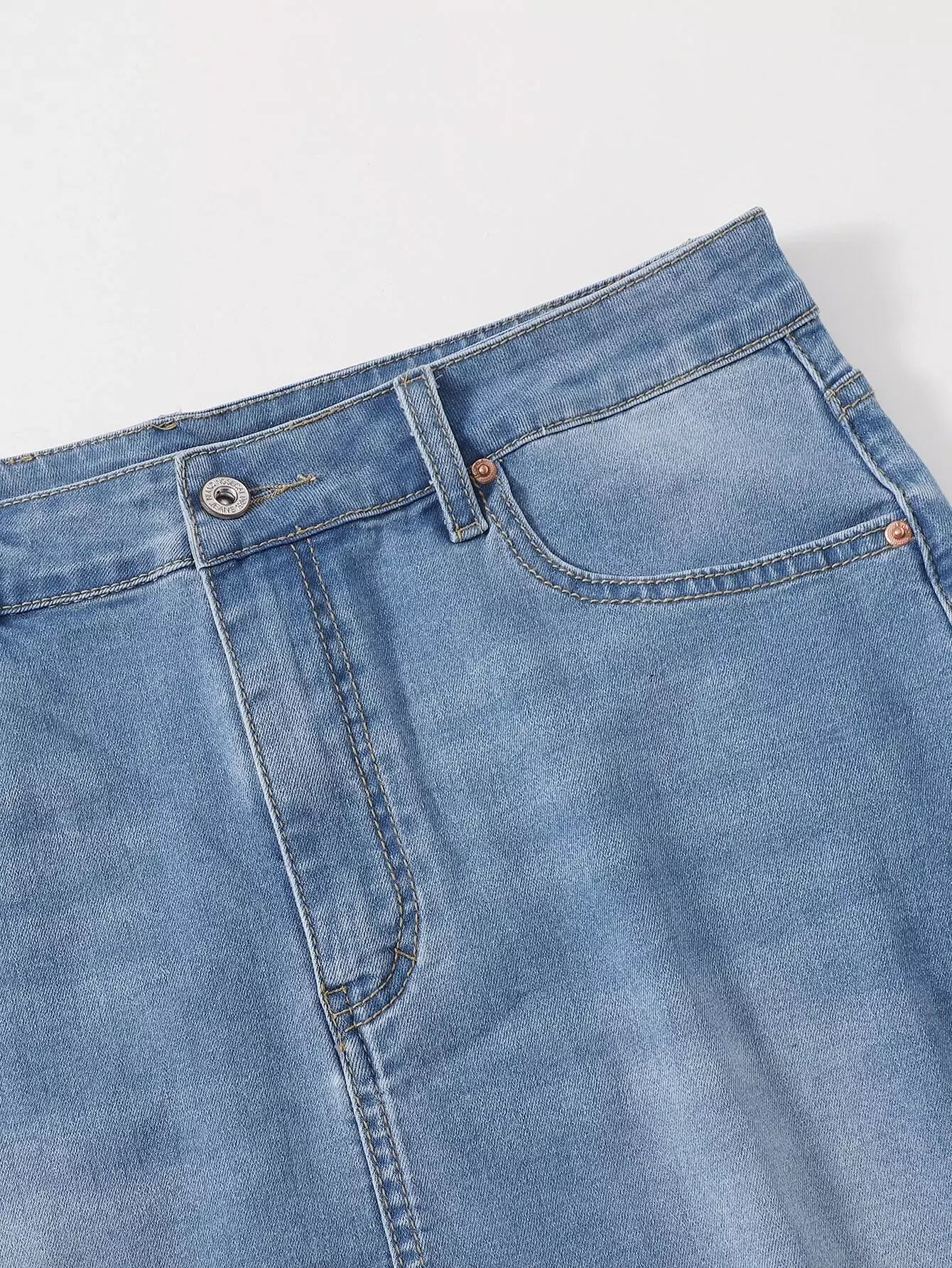 نحيف - مقاس كبير تنورة جينز ممزقة ومغسولة بشكل خفيف