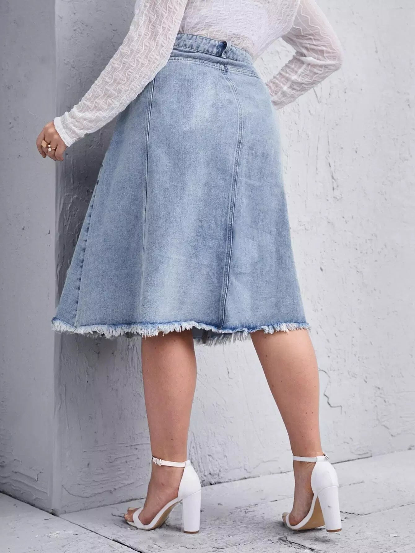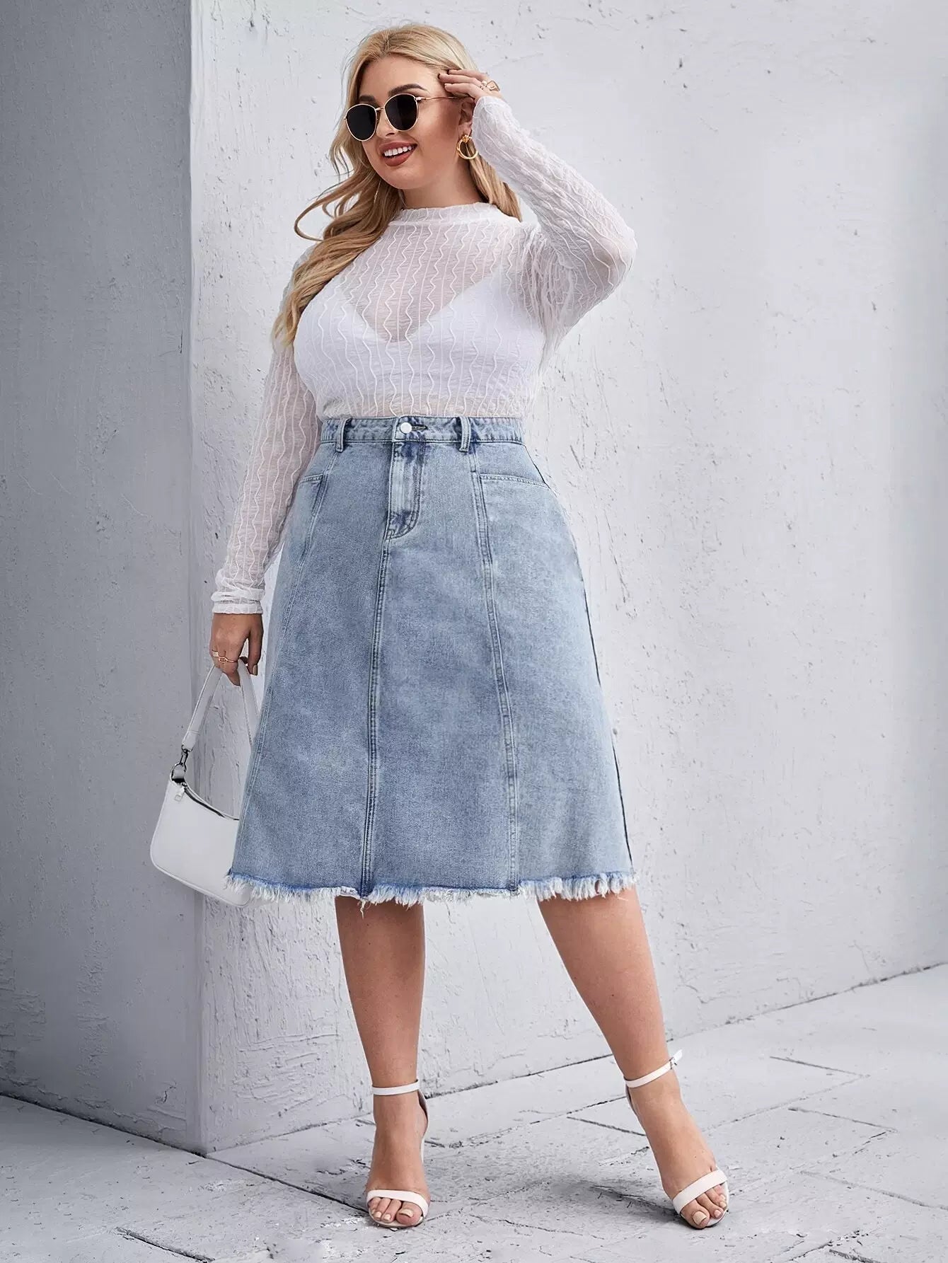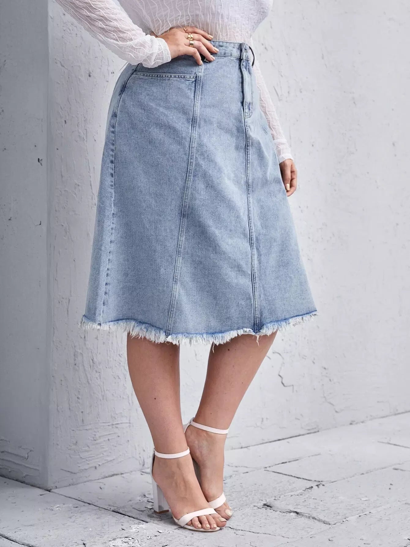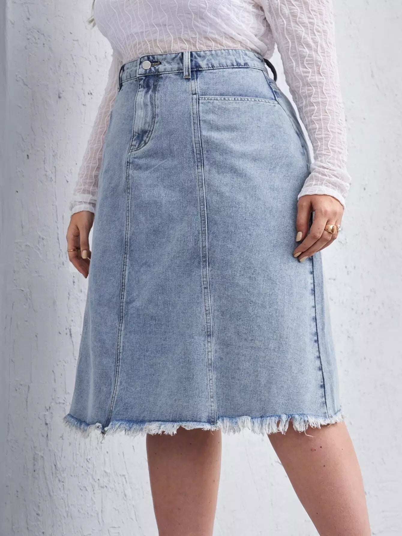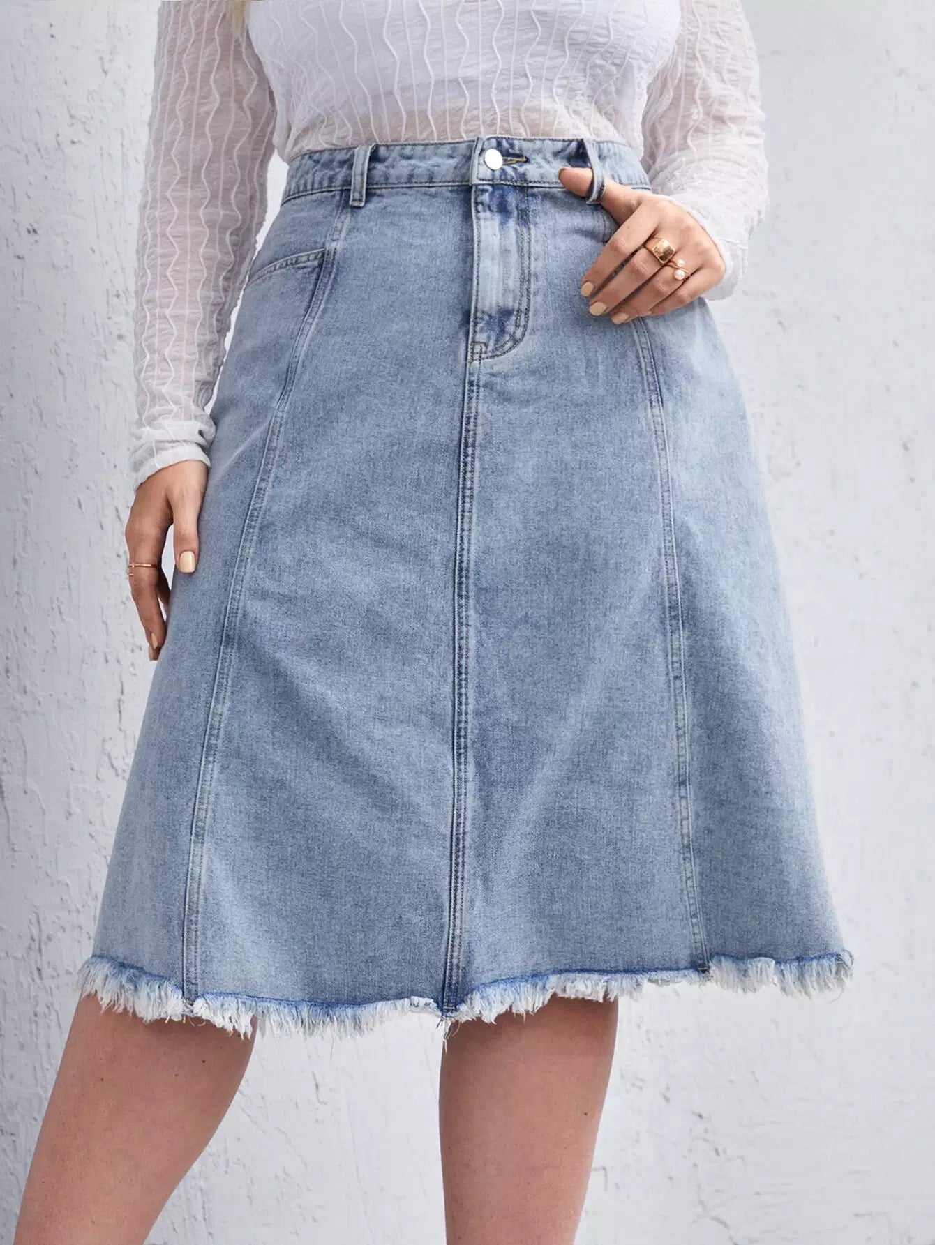 تنورة دنيم بحاشية خفيفة، خط على شكل حرف A زائد