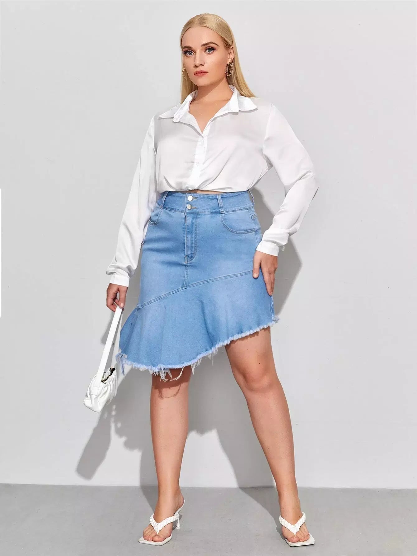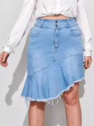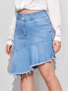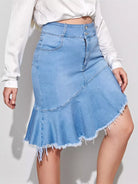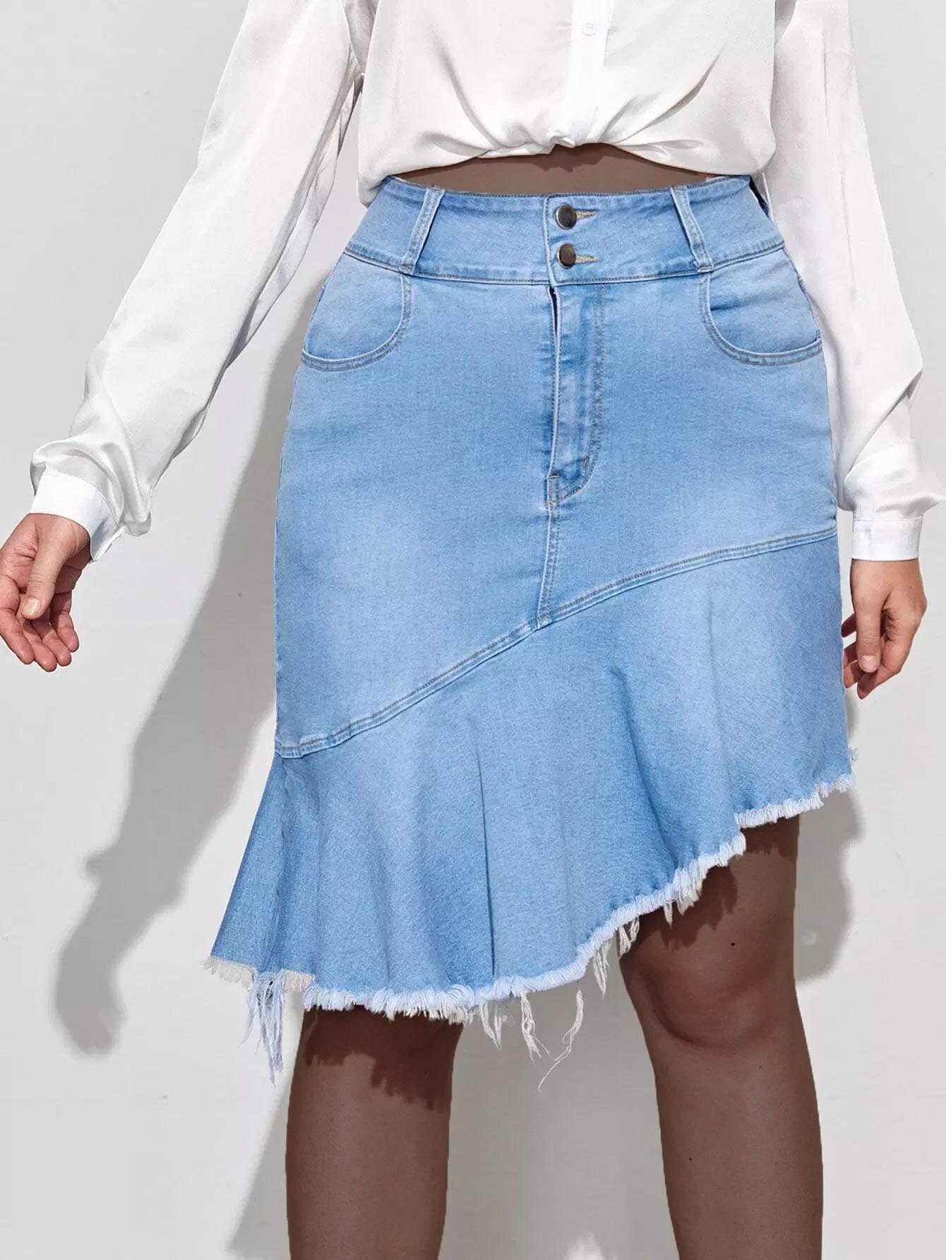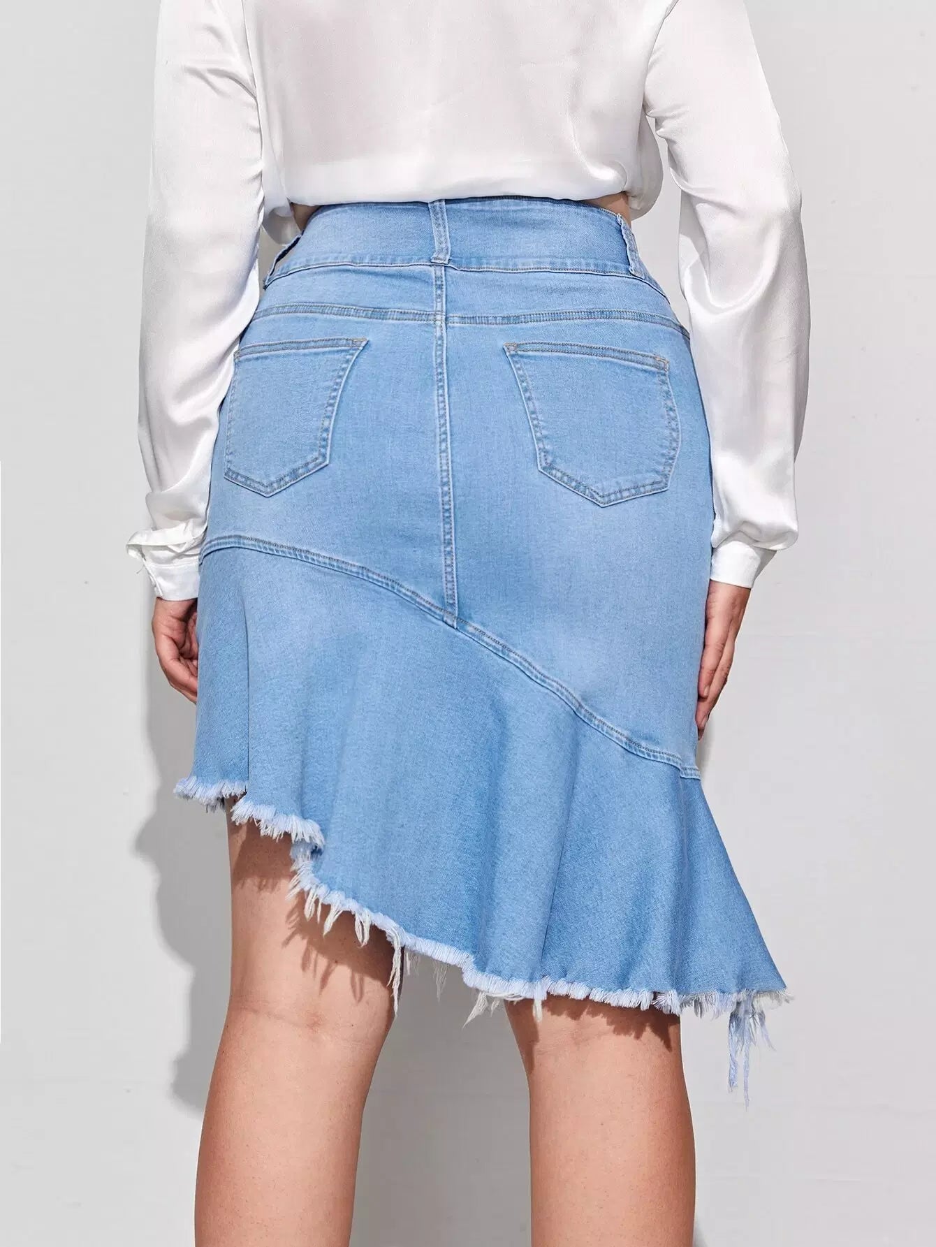 تنورة دنيم غير متناظرة بحافة خام زائد