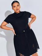 تنورة دنيم ممزقة بحافة خام زائد
