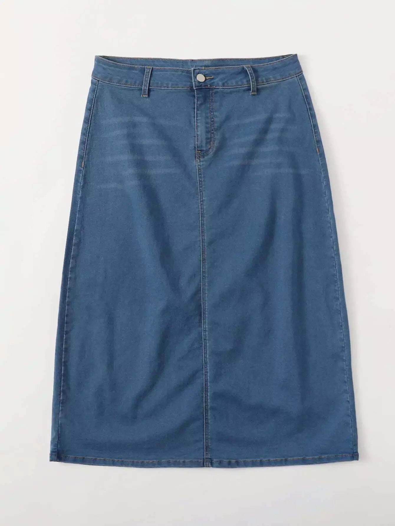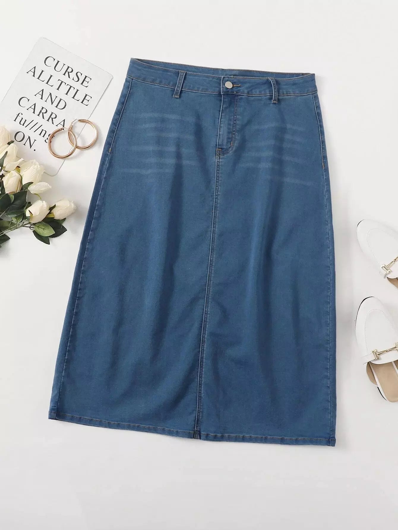 تنورة دنيم مستقيمة ذات حافة مشقوقة بلاس بلس