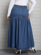 women SHEIN Privï؟½ Plus High Waist Ruffle Hem Maxi Denim Skirt