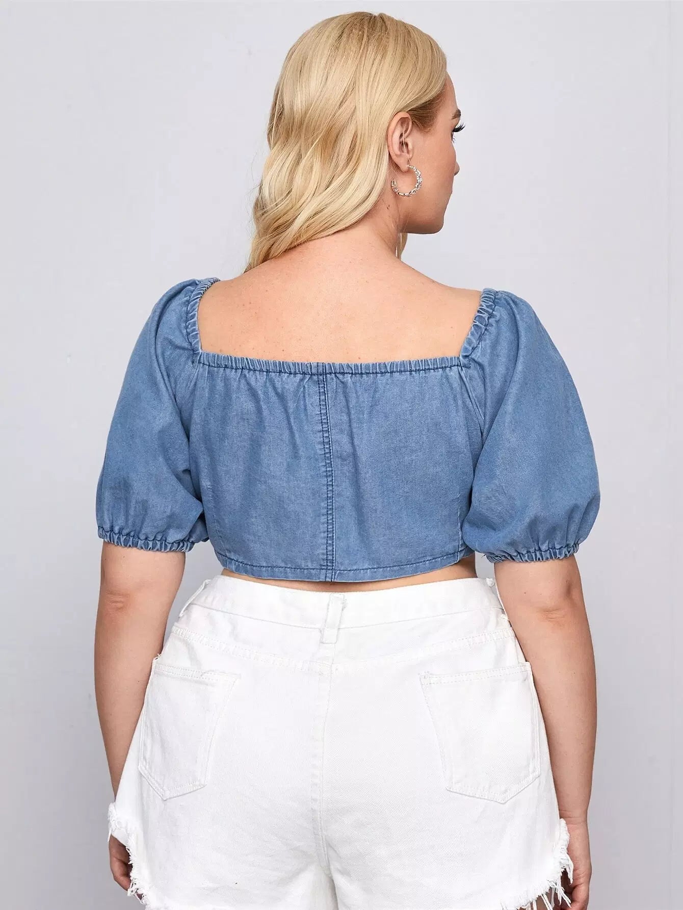بلوزة دنيم بأكمام منفوخة بأزرار أمامية من الدنيم