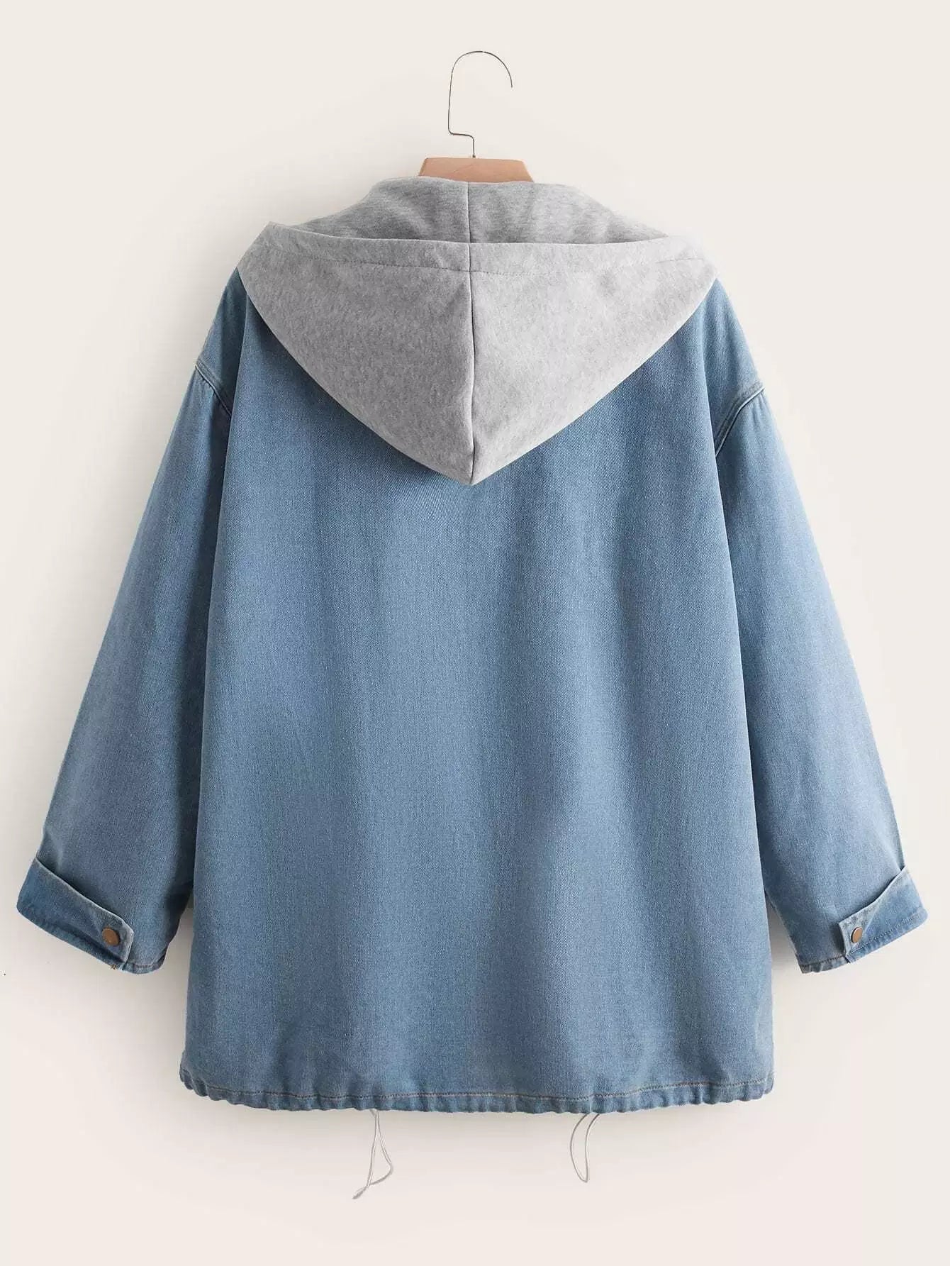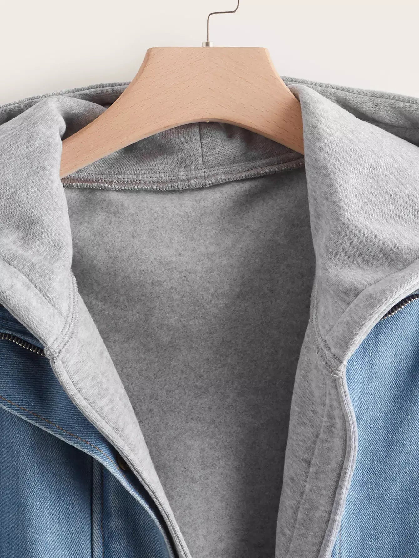سترة بغطاء للرأس بغطاء للرأس بغطاء للرأس بغطاء للرأس ومعطف جينز بغطاء للرأس منسدل الكتف بسحاب
