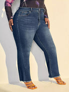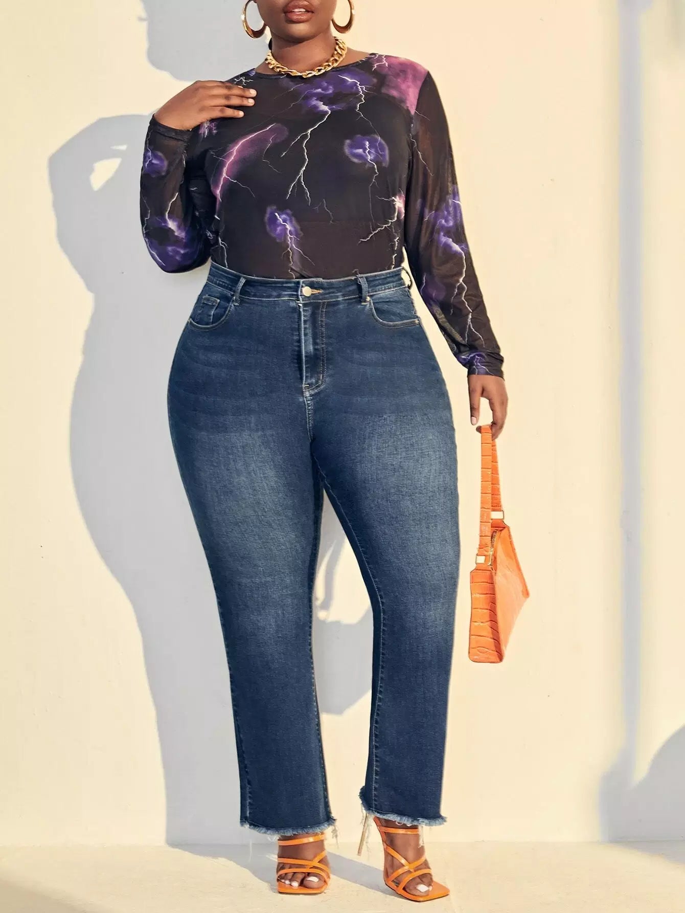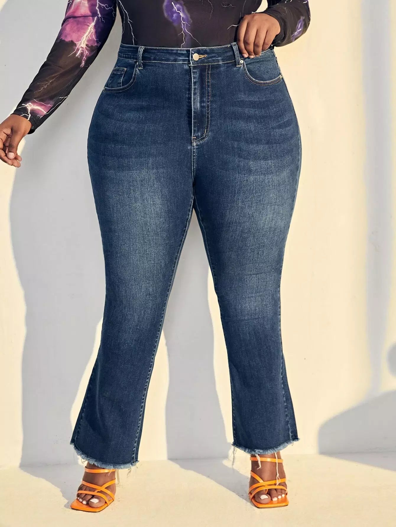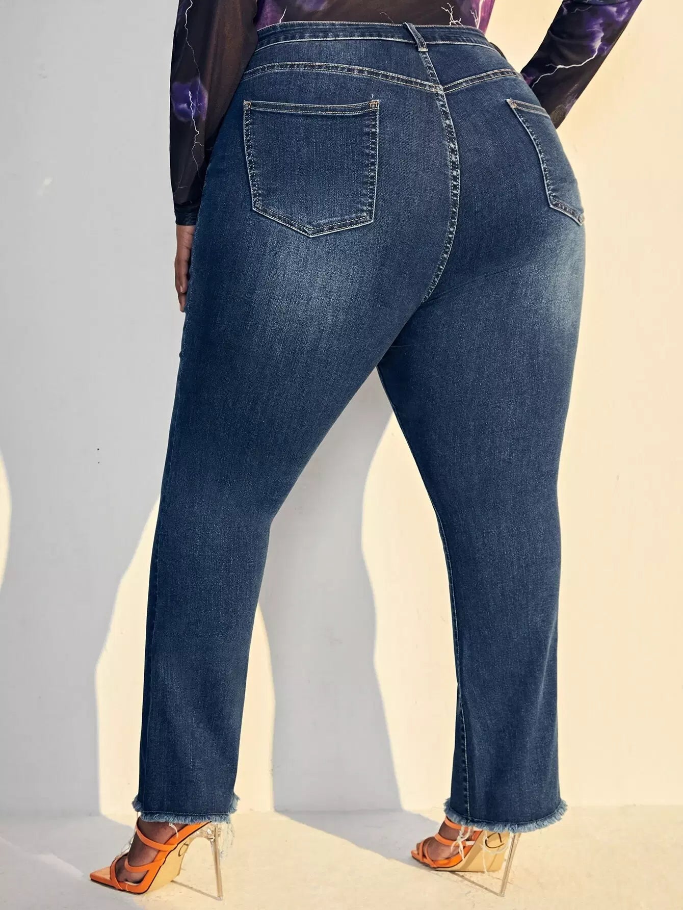 بنطلون جينز بحواف مبيضة بلس غسيل زائد بحواف خام