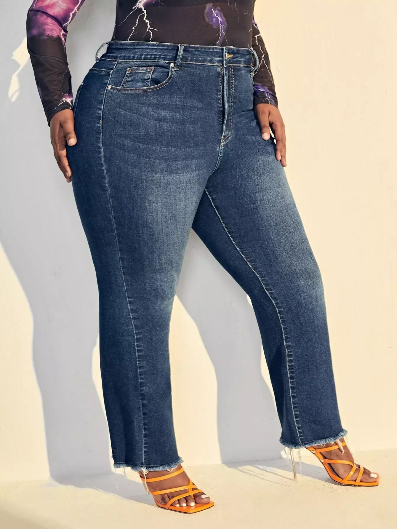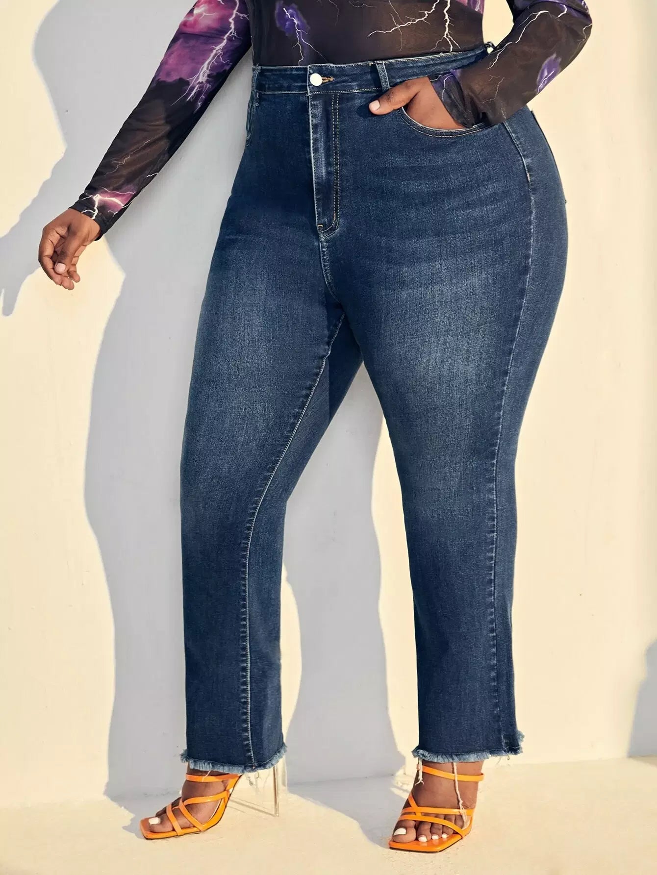 نحيف - مقاس كبير جينز بحاشية خام مبيض