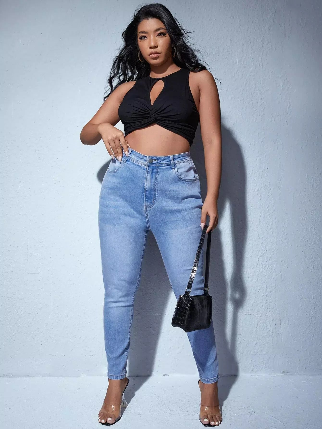 بنطلون جينز سكيني بنقشة القطط الضيقة