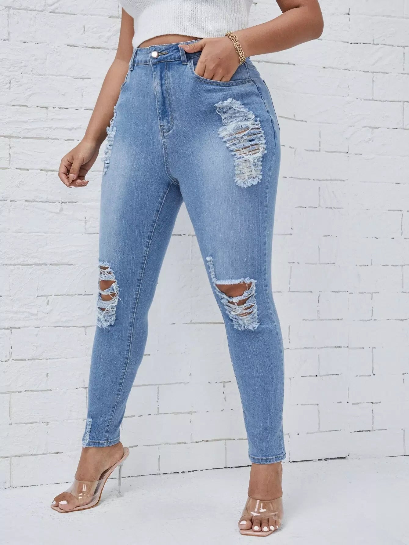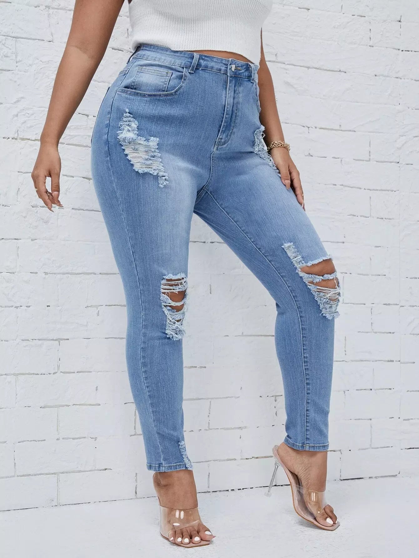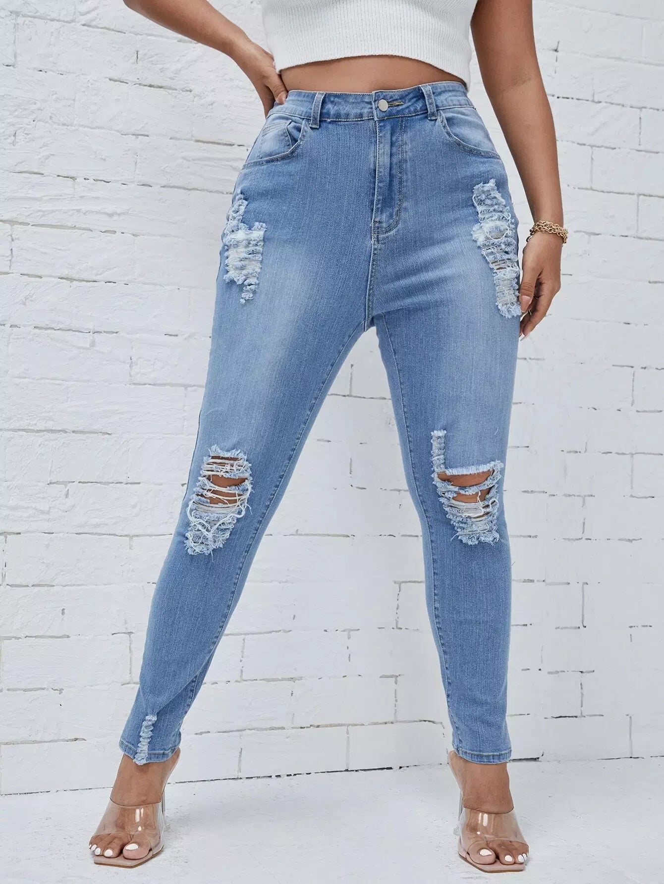 بنطلون جينز سكيني ممزق بخصر عالٍ زائد