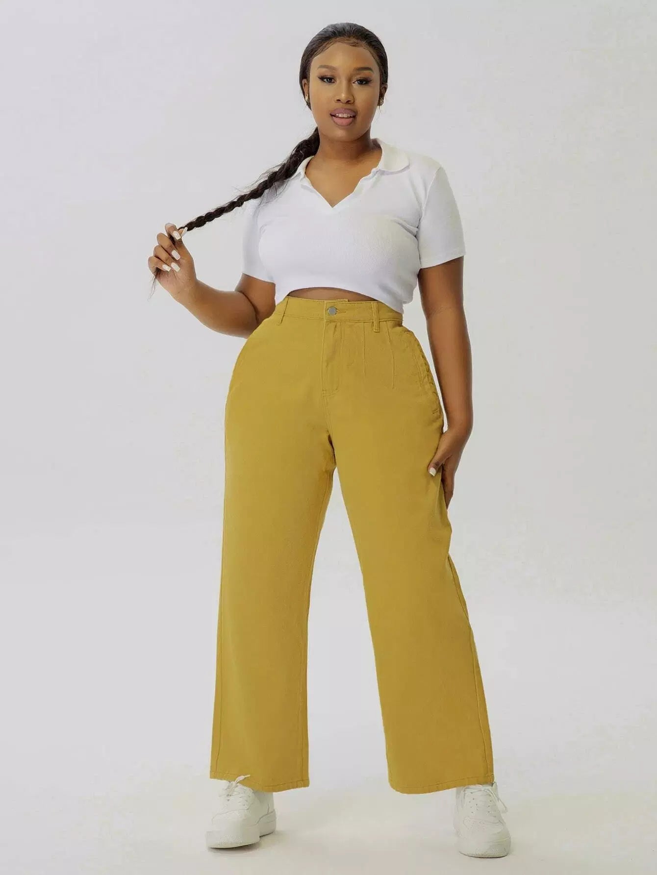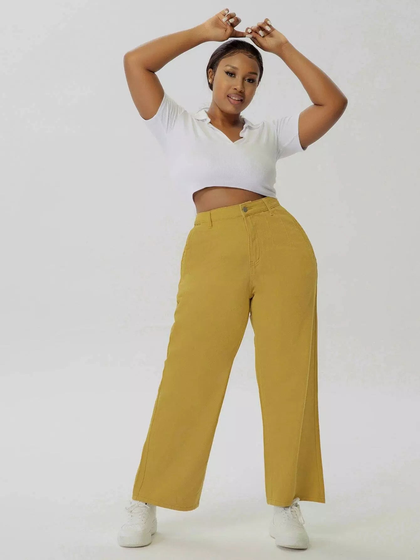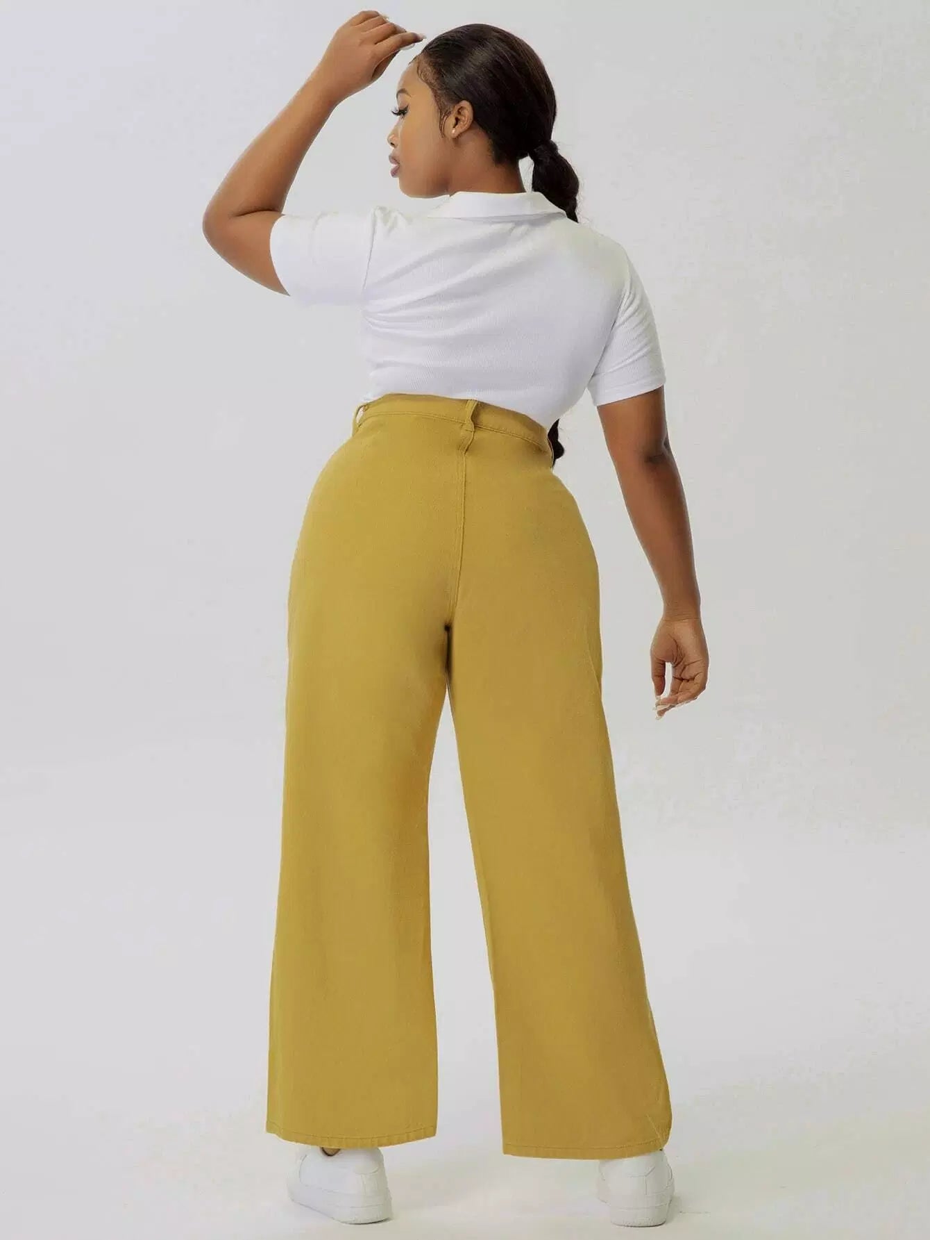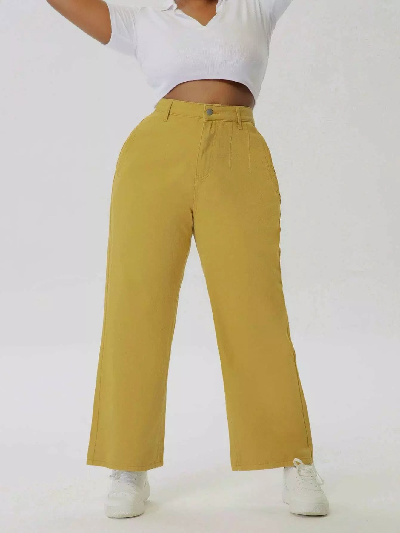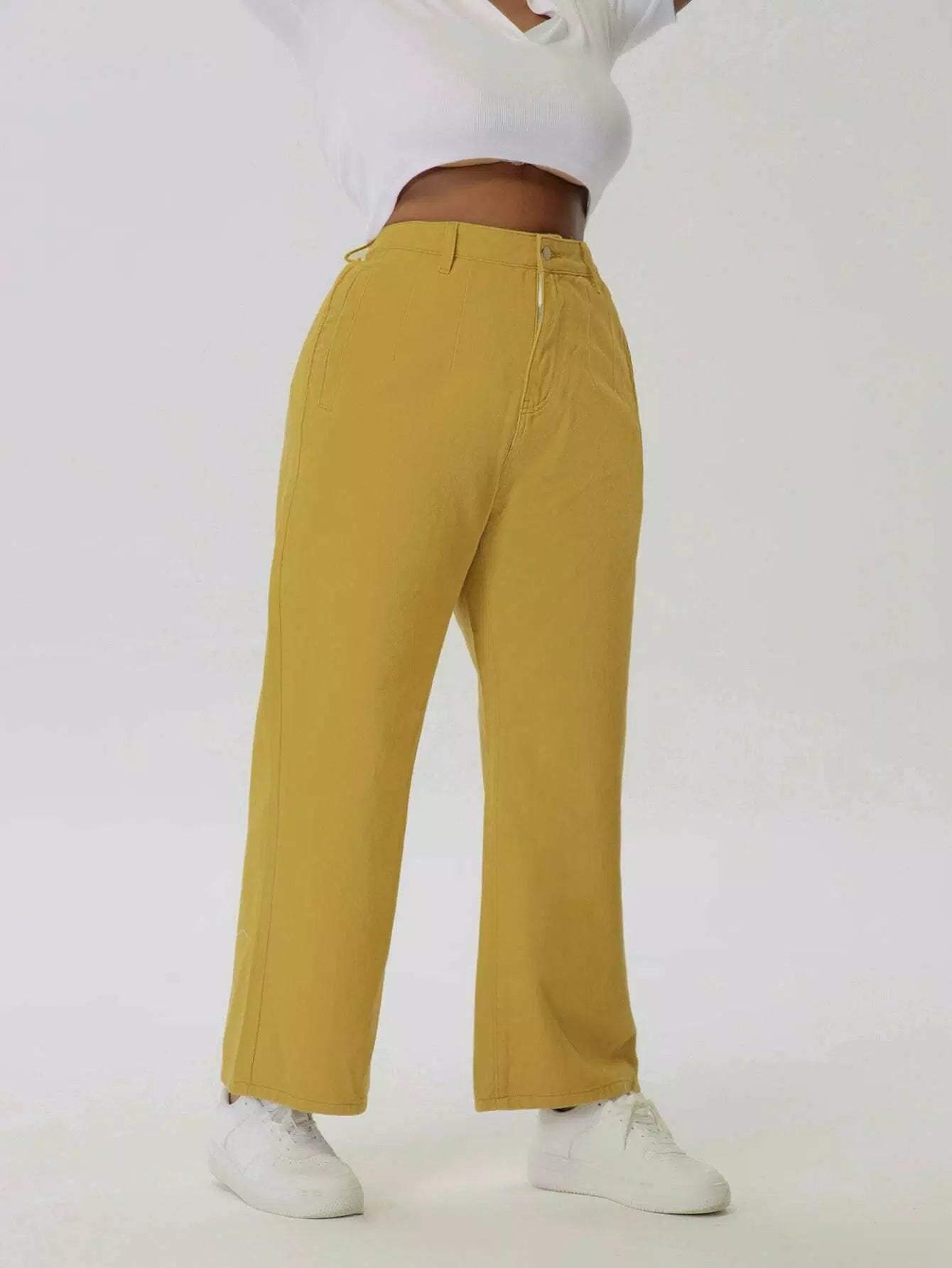 بنطلون جينز سادة عالي الخصر بسحاب بلاس سادة