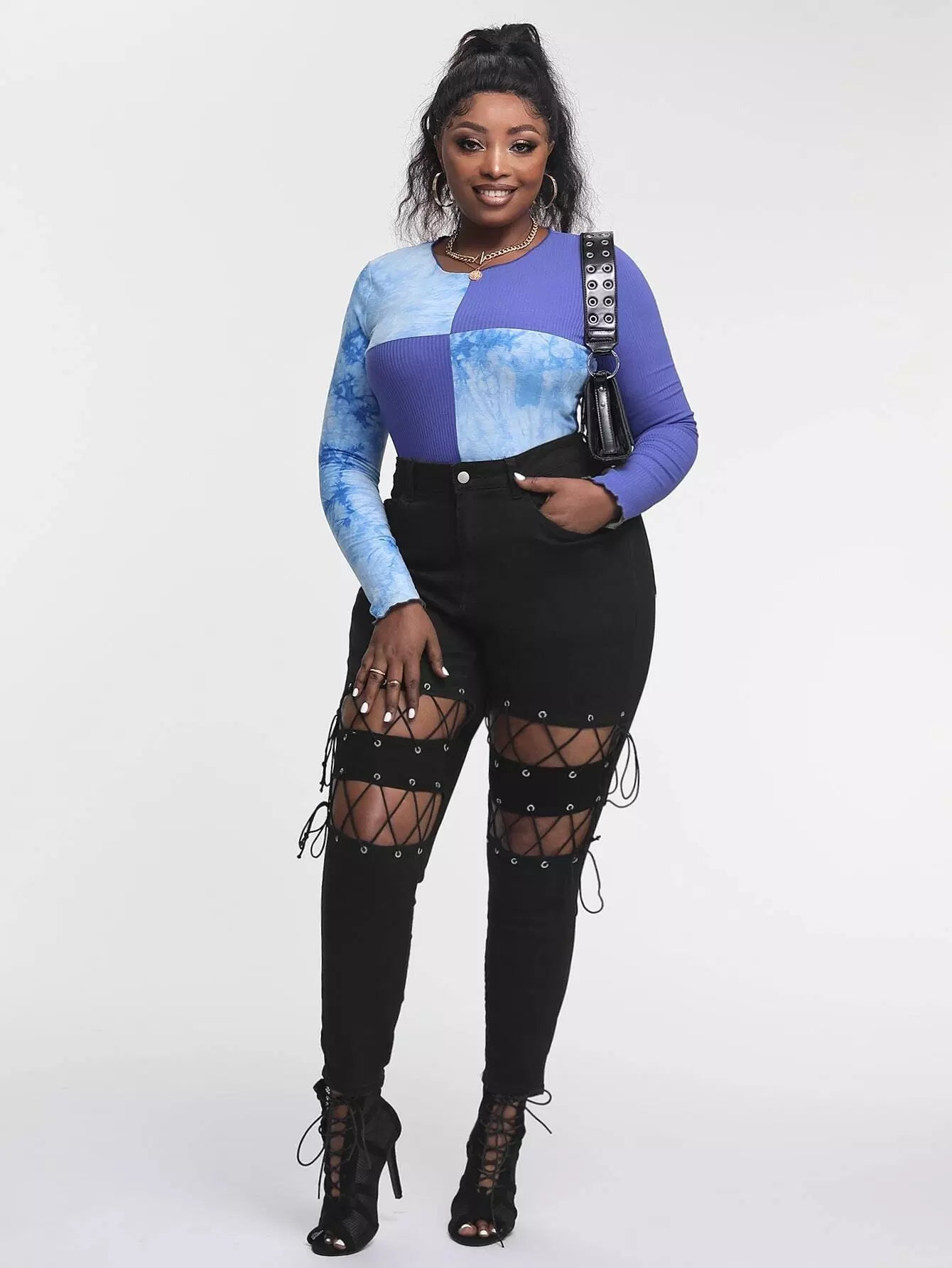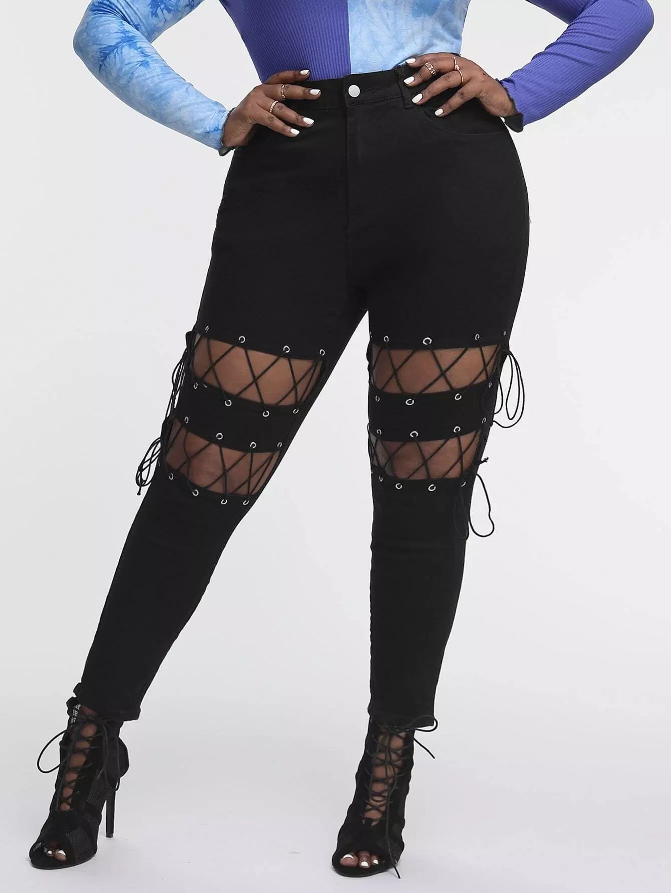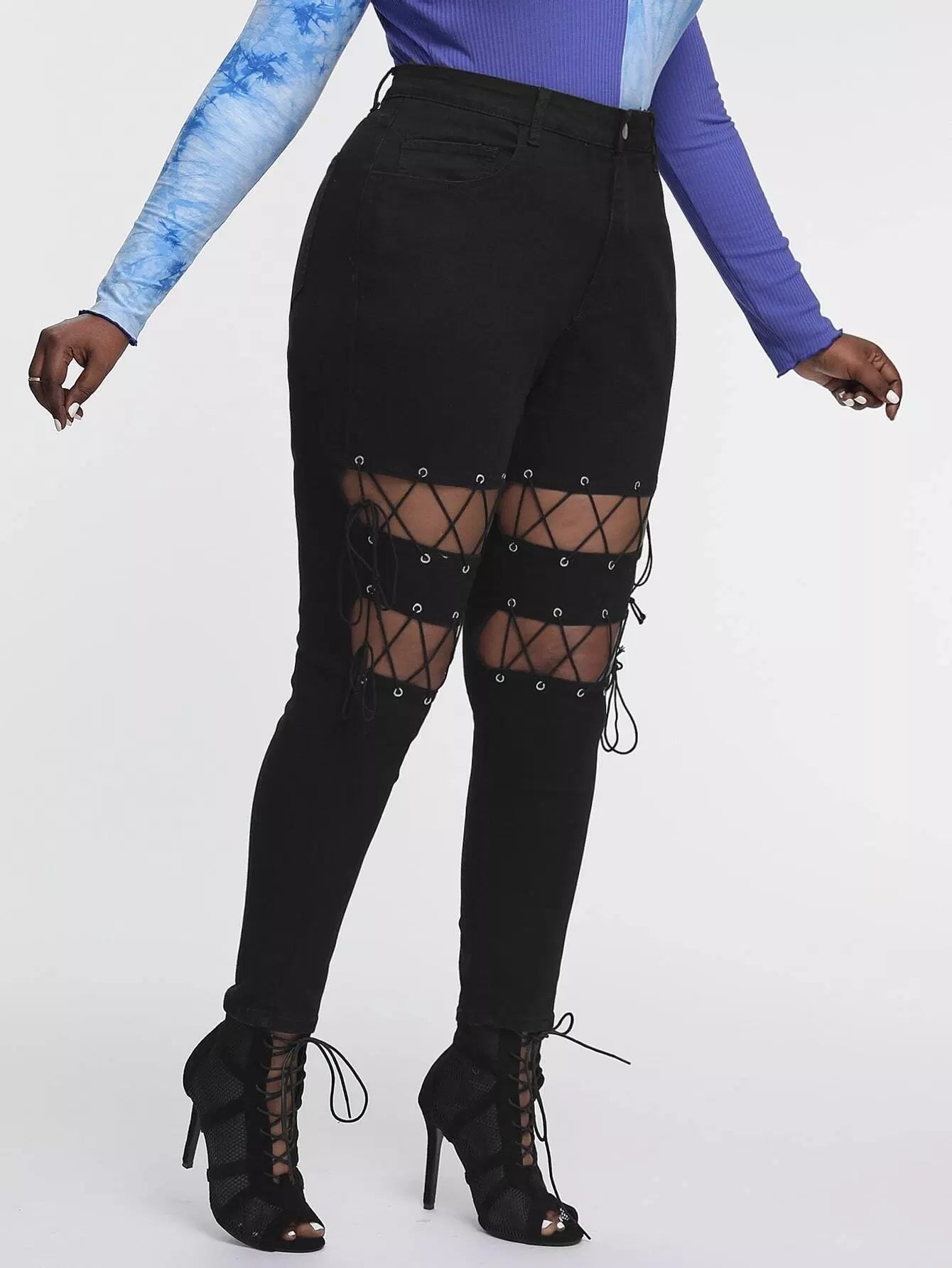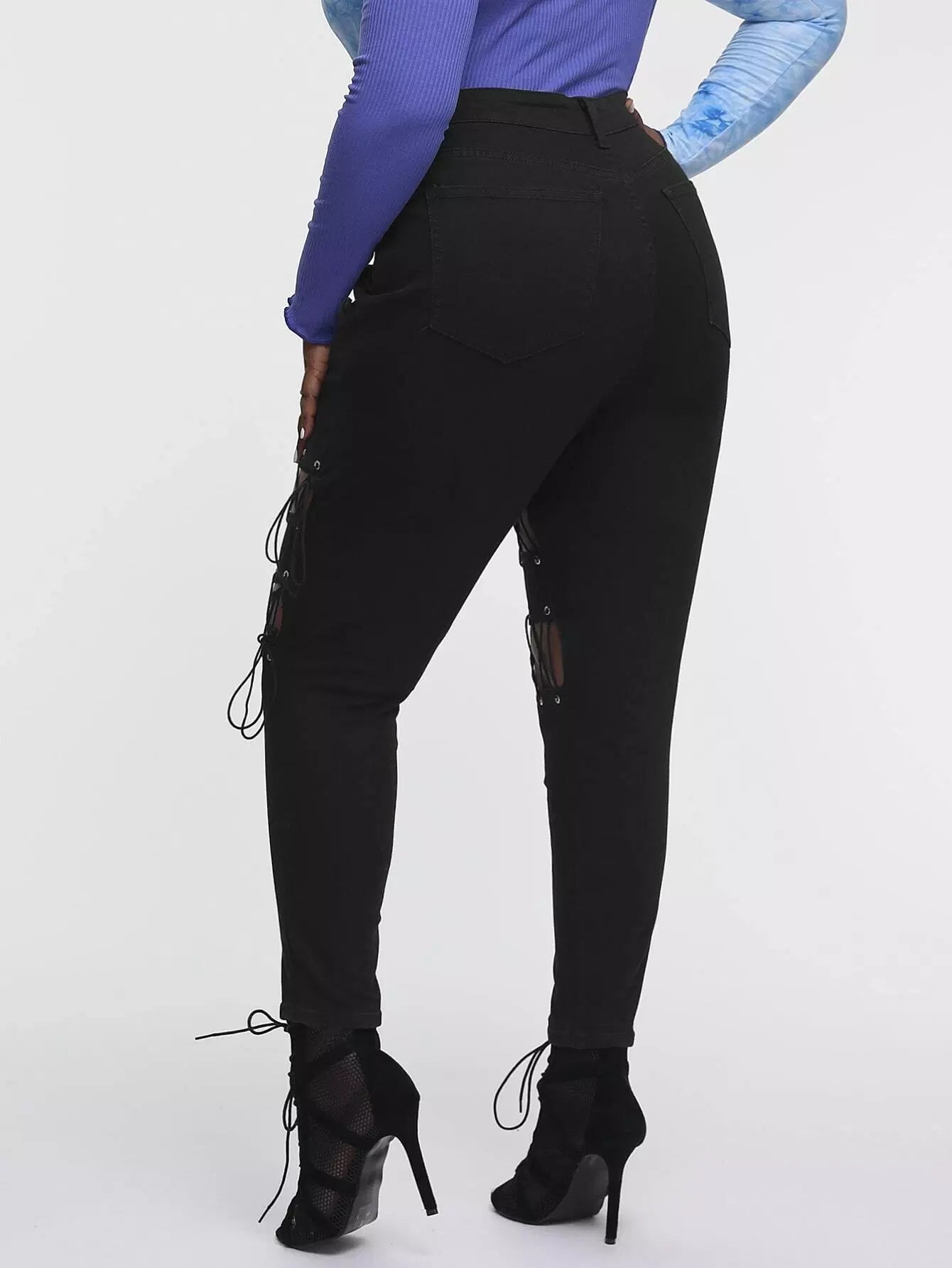 بنطلون جينز جينز سكيني ضيق بفتحة من الدانتيل بلاس