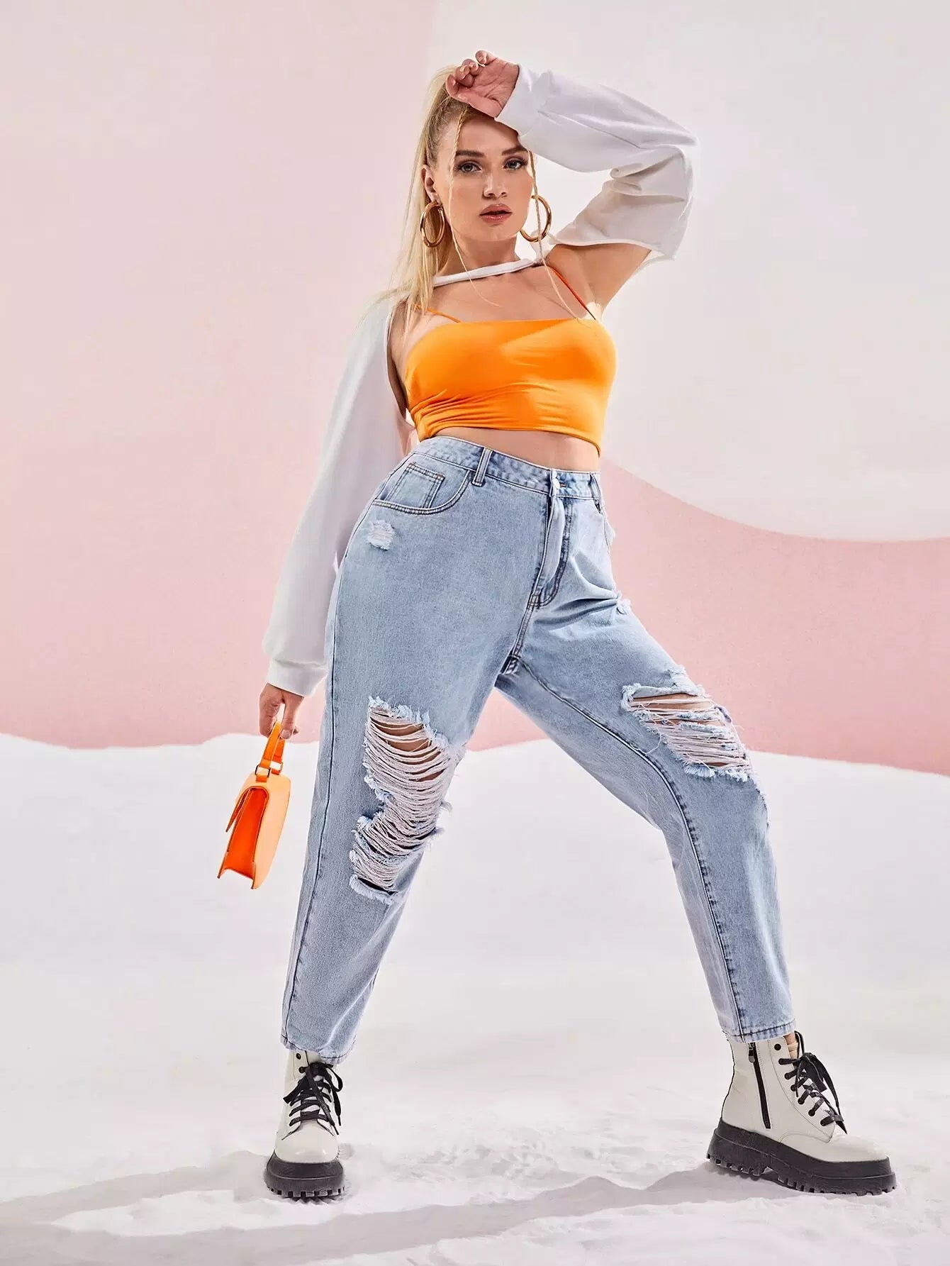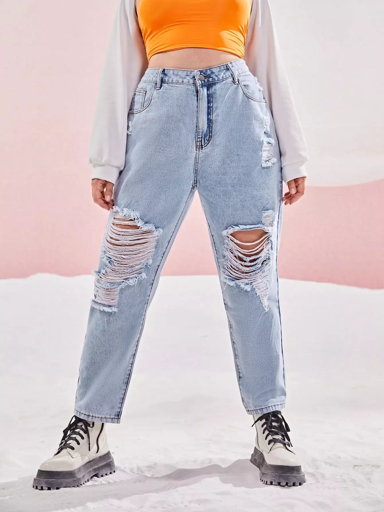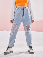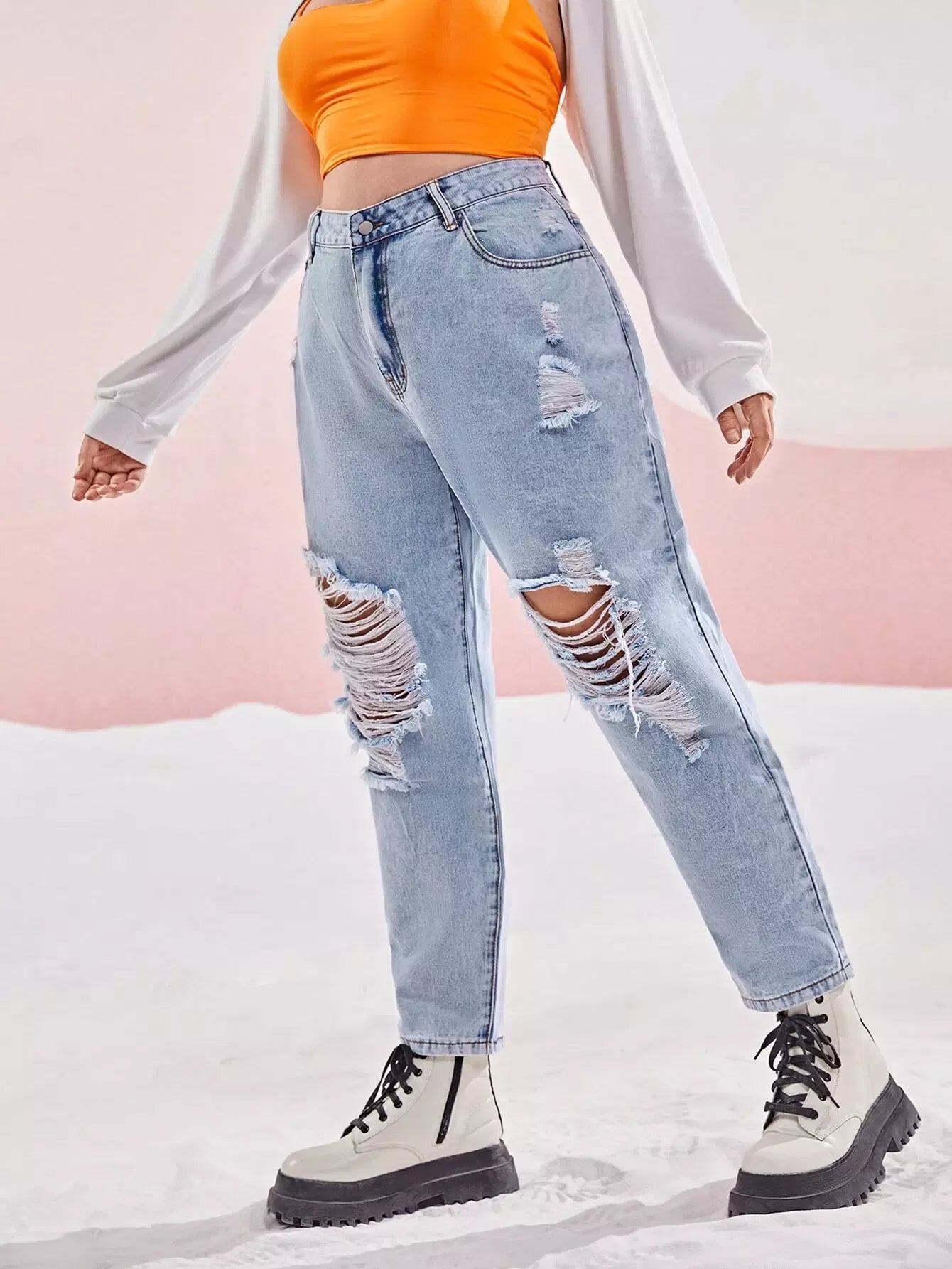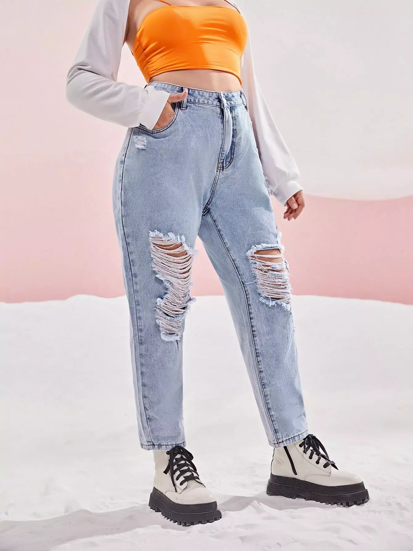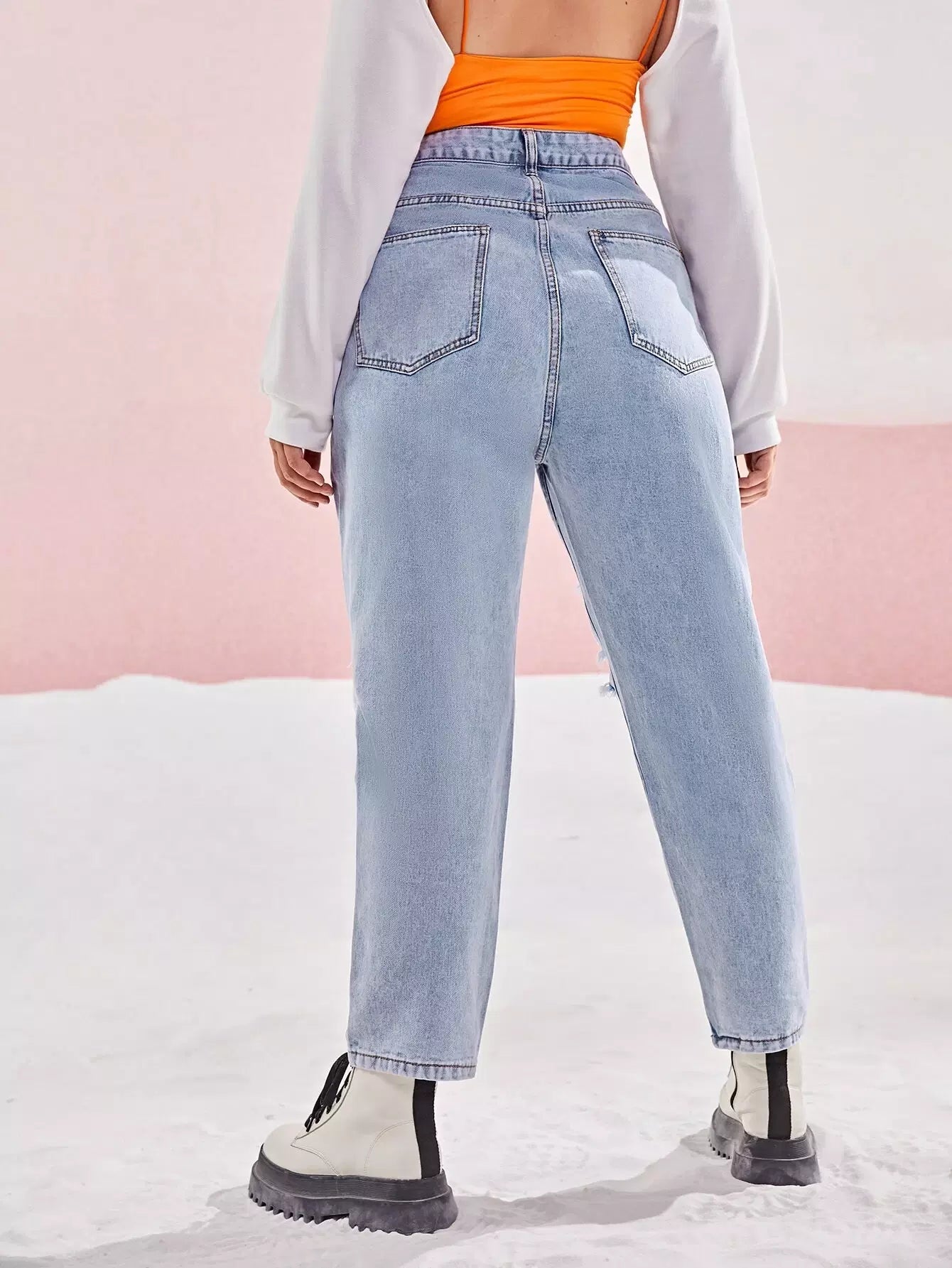 بنطلون جينز خصر خفيف ممزق للأمهات