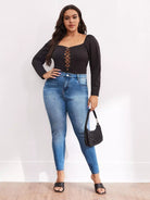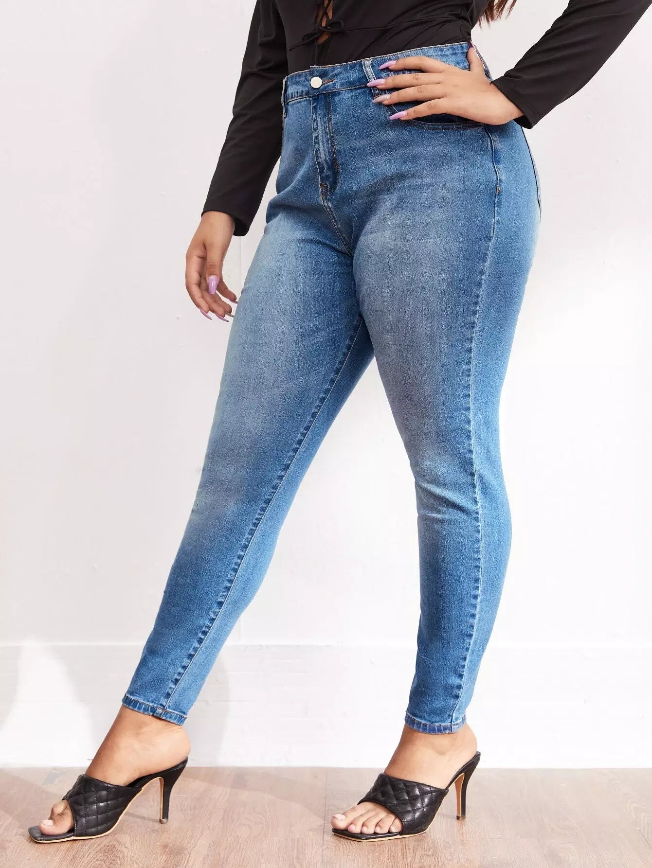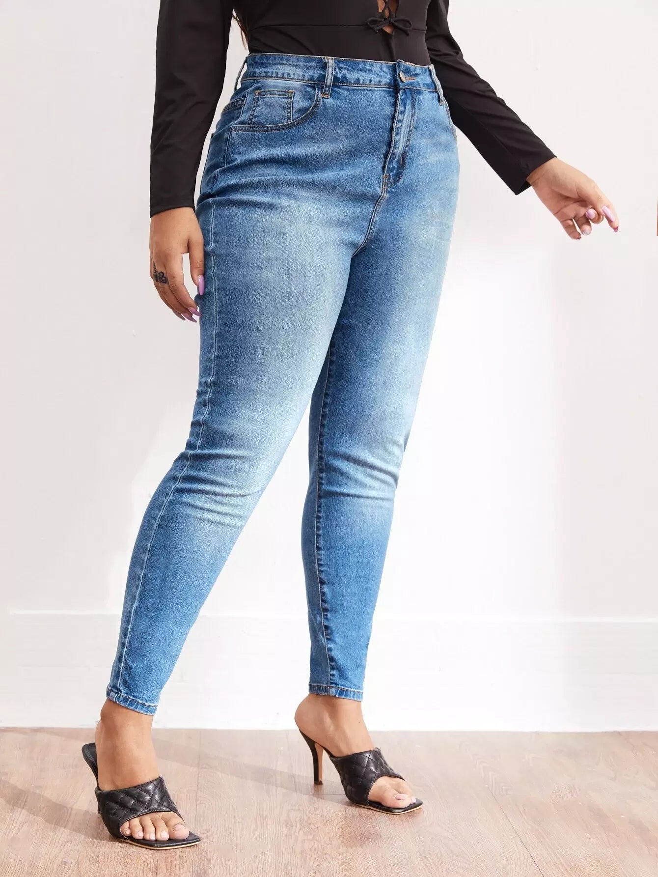 بنطلون جينز سكيني سكيني بغسل خفيف بلاس