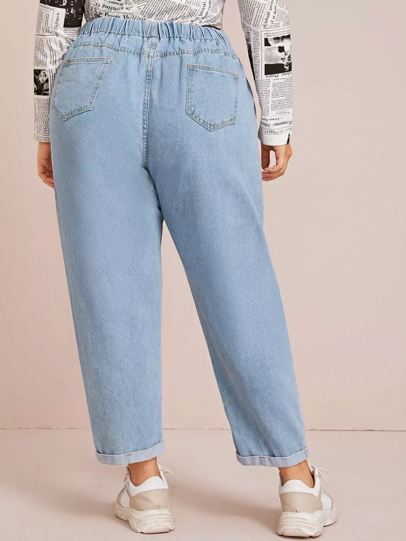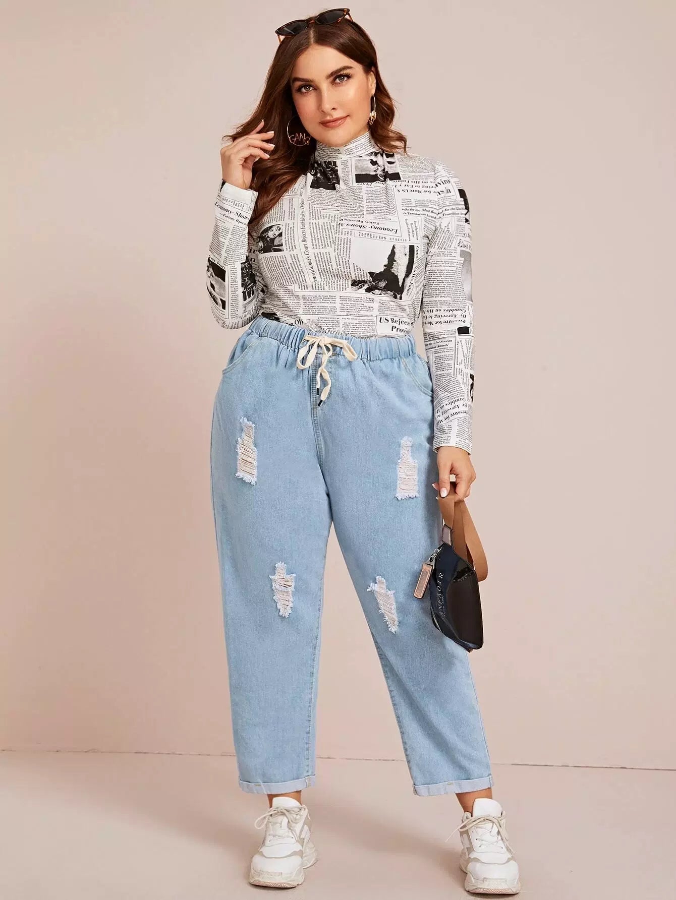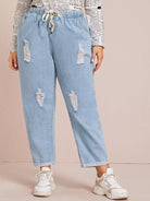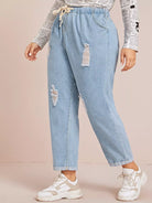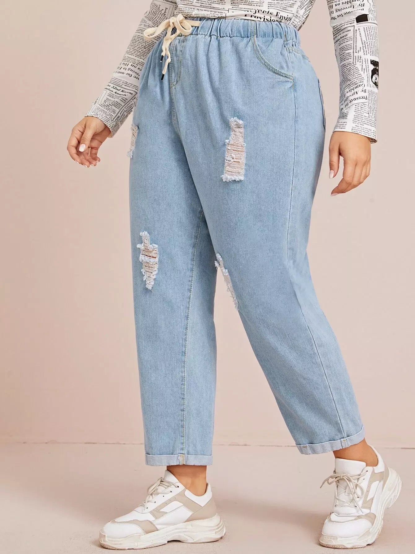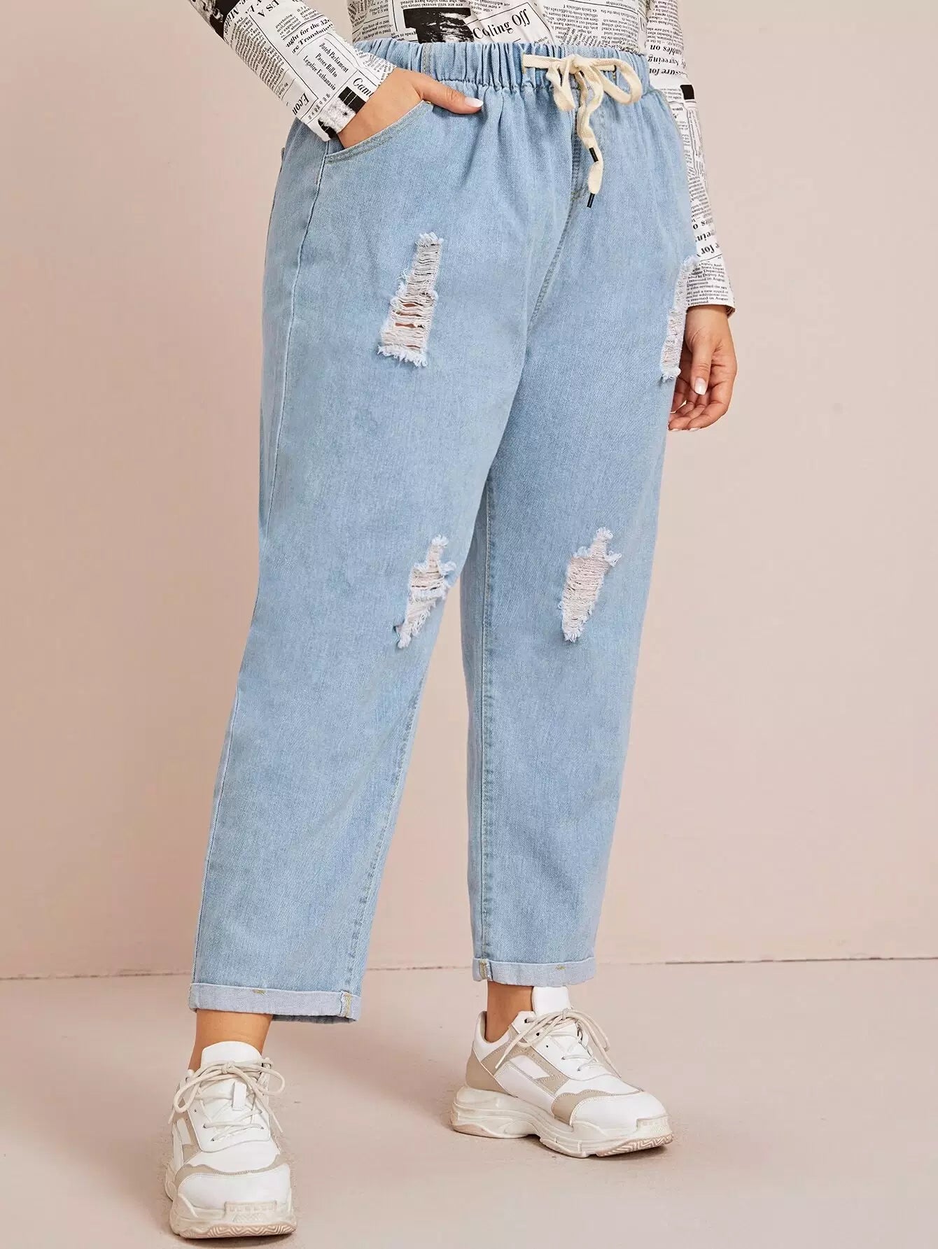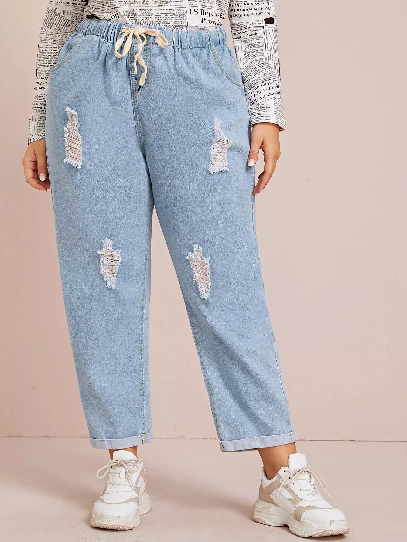 بنطلون جينز ممزق برباط خصر ممزق زائد
