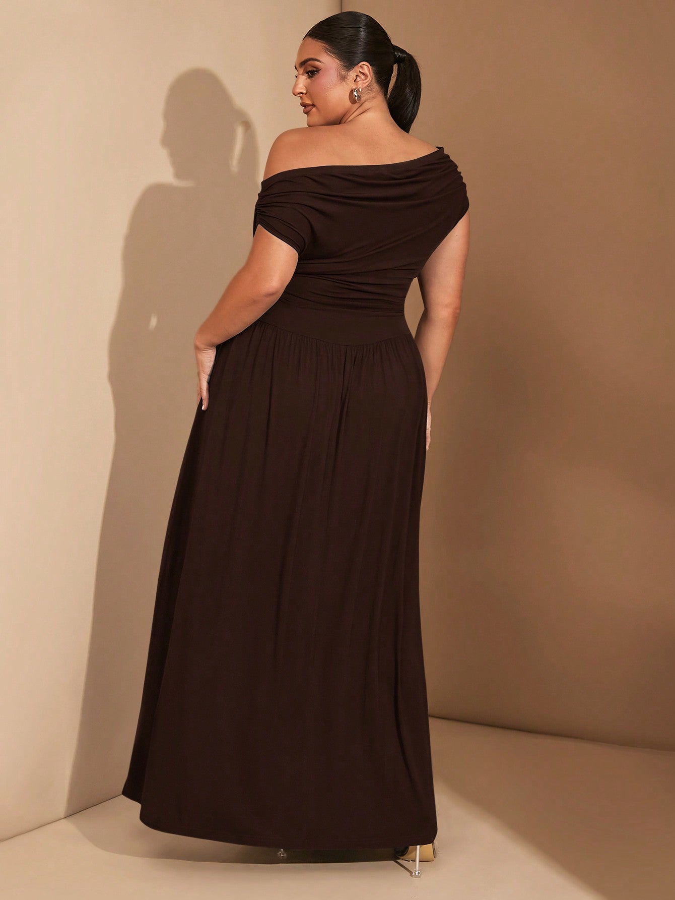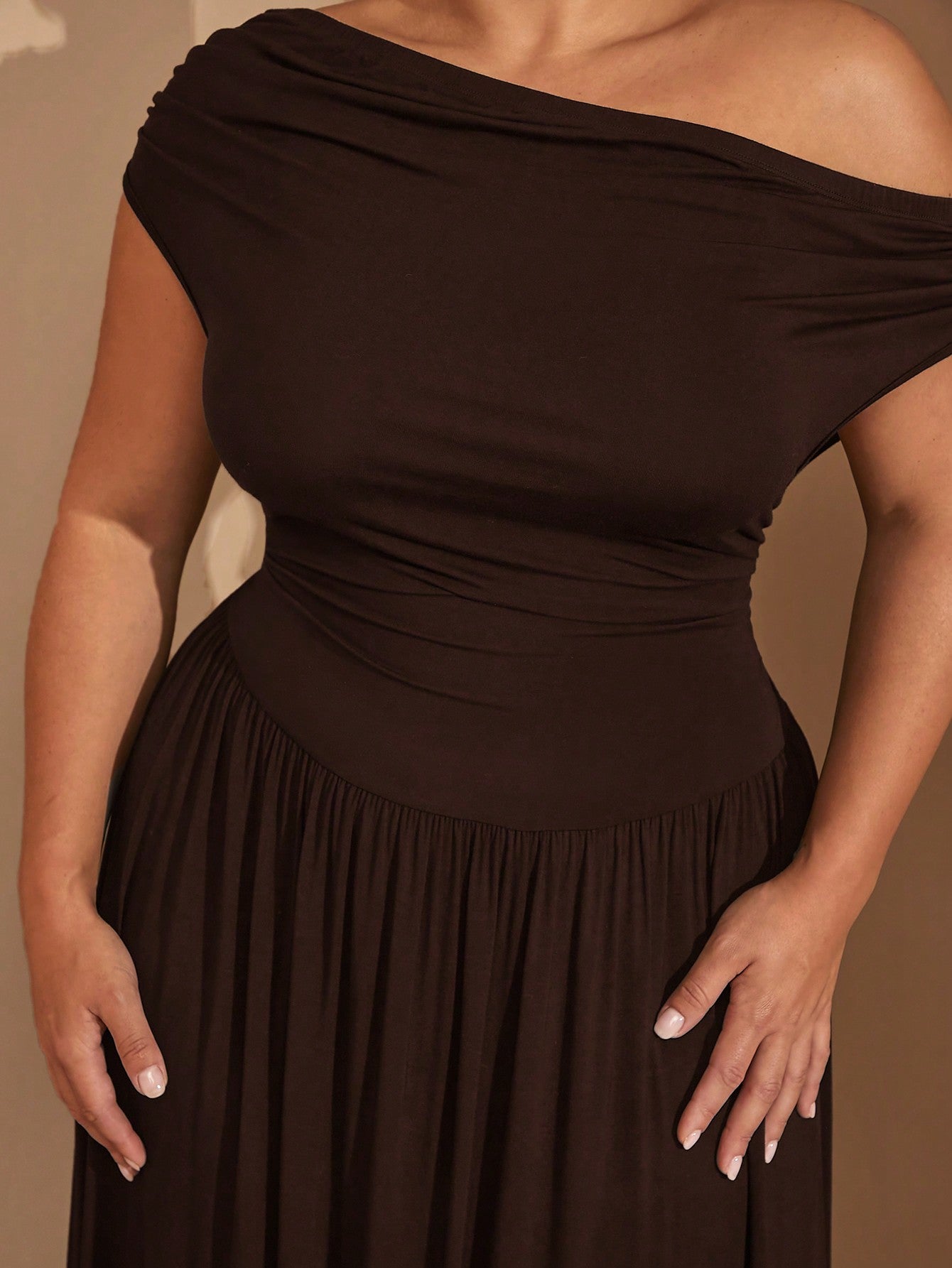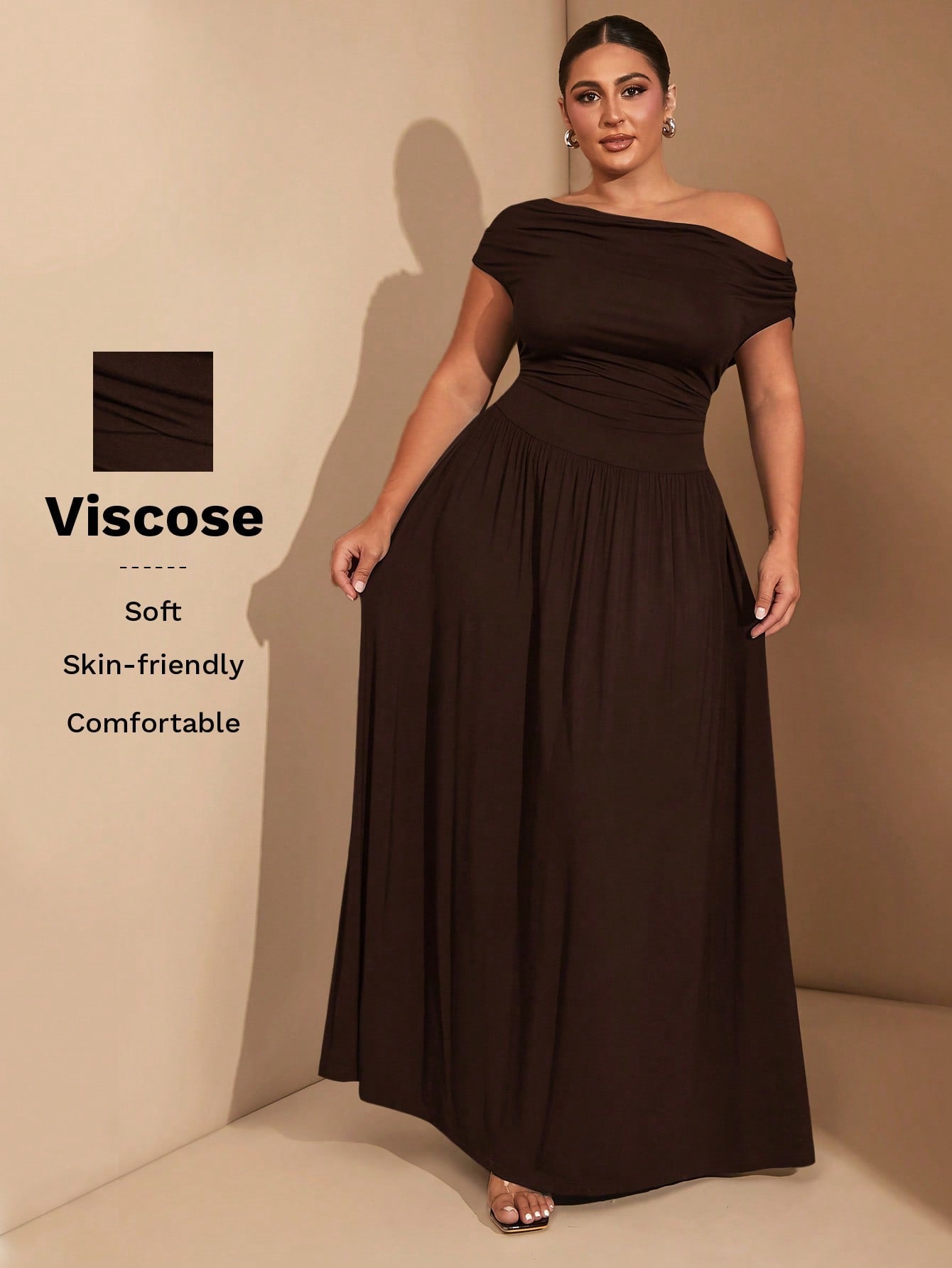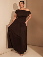 فستان نسائي أنيق متعدد الاستخدامات من BAE، بمقاسات كبيرة، مصنوع من قماش مطاطي فاخر، باللون الأسود، مناسب للارتداء اليومي أو الحفلات، بتصميم مكشوف الأكتاف.