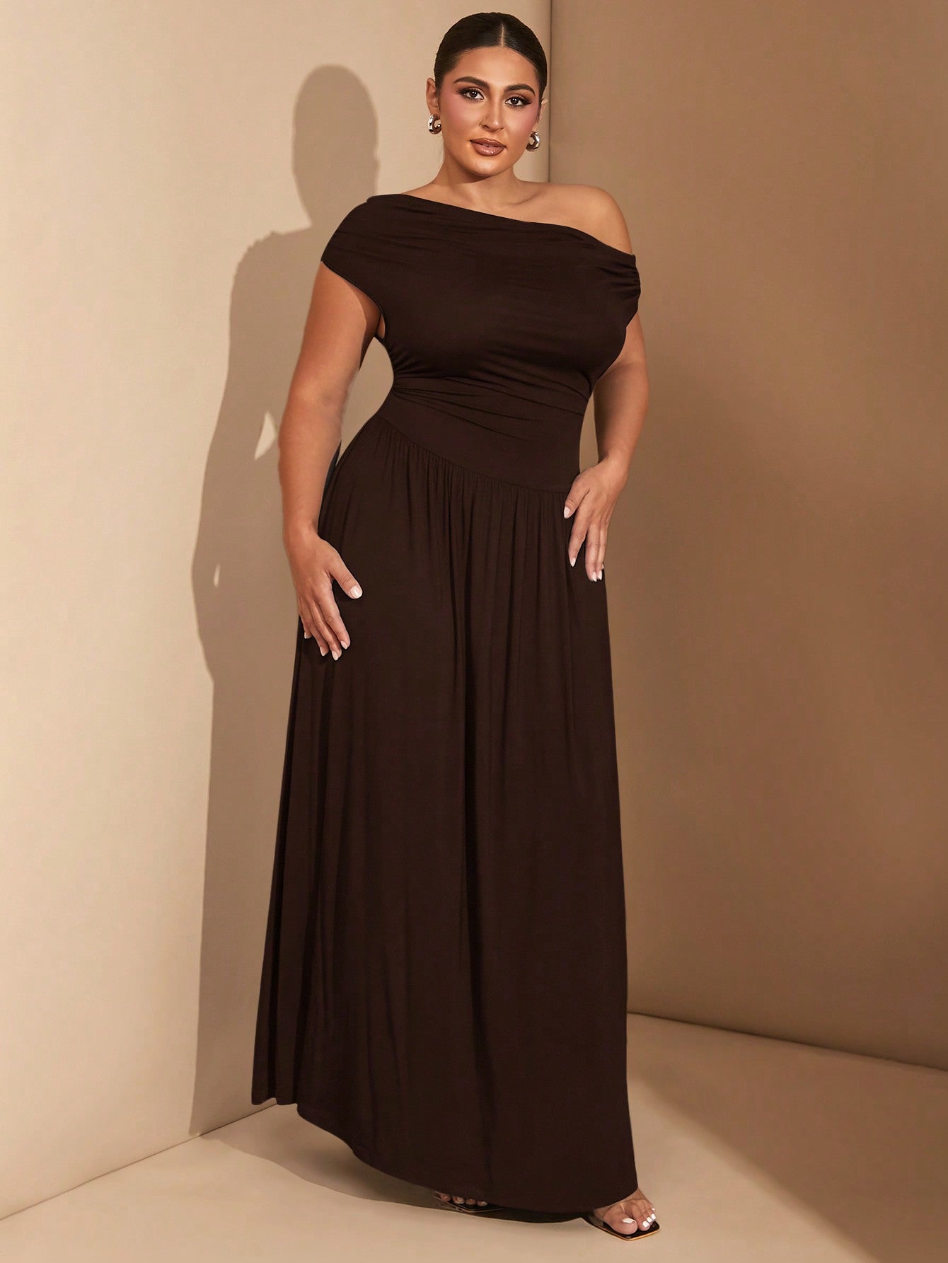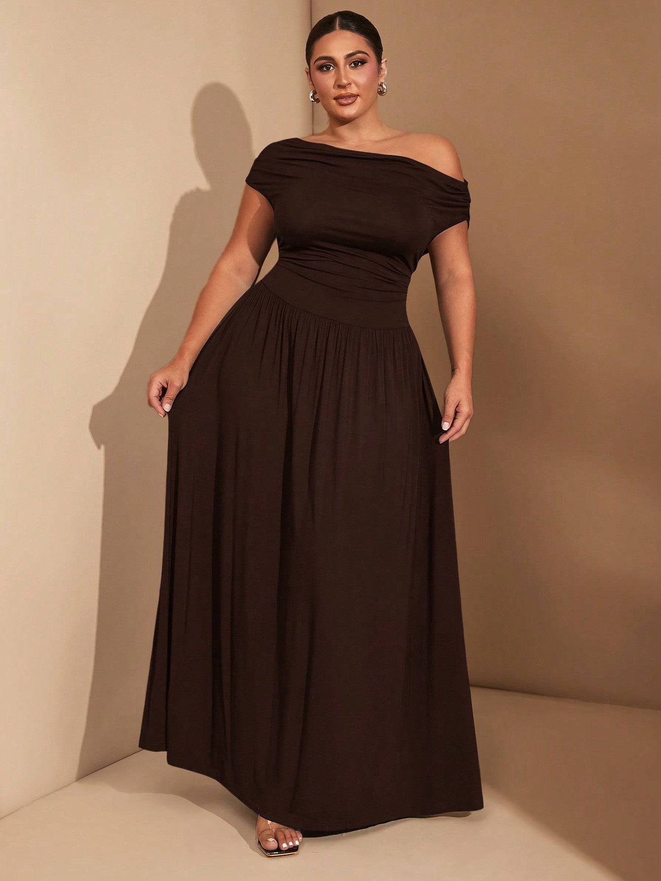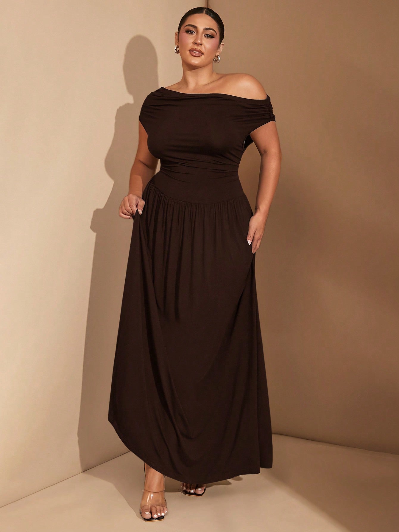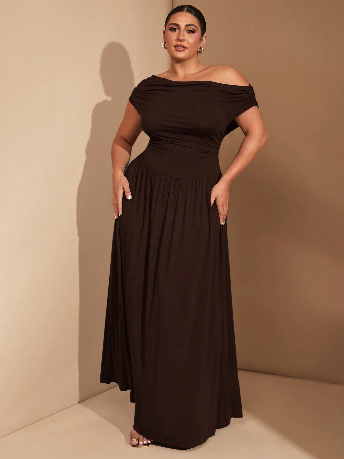فستان نسائي أنيق متعدد الاستخدامات من BAE، بمقاسات كبيرة، مصنوع من قماش مطاطي فاخر، باللون الأسود، مناسب للارتداء اليومي أو الحفلات، بتصميم مكشوف الأكتاف.