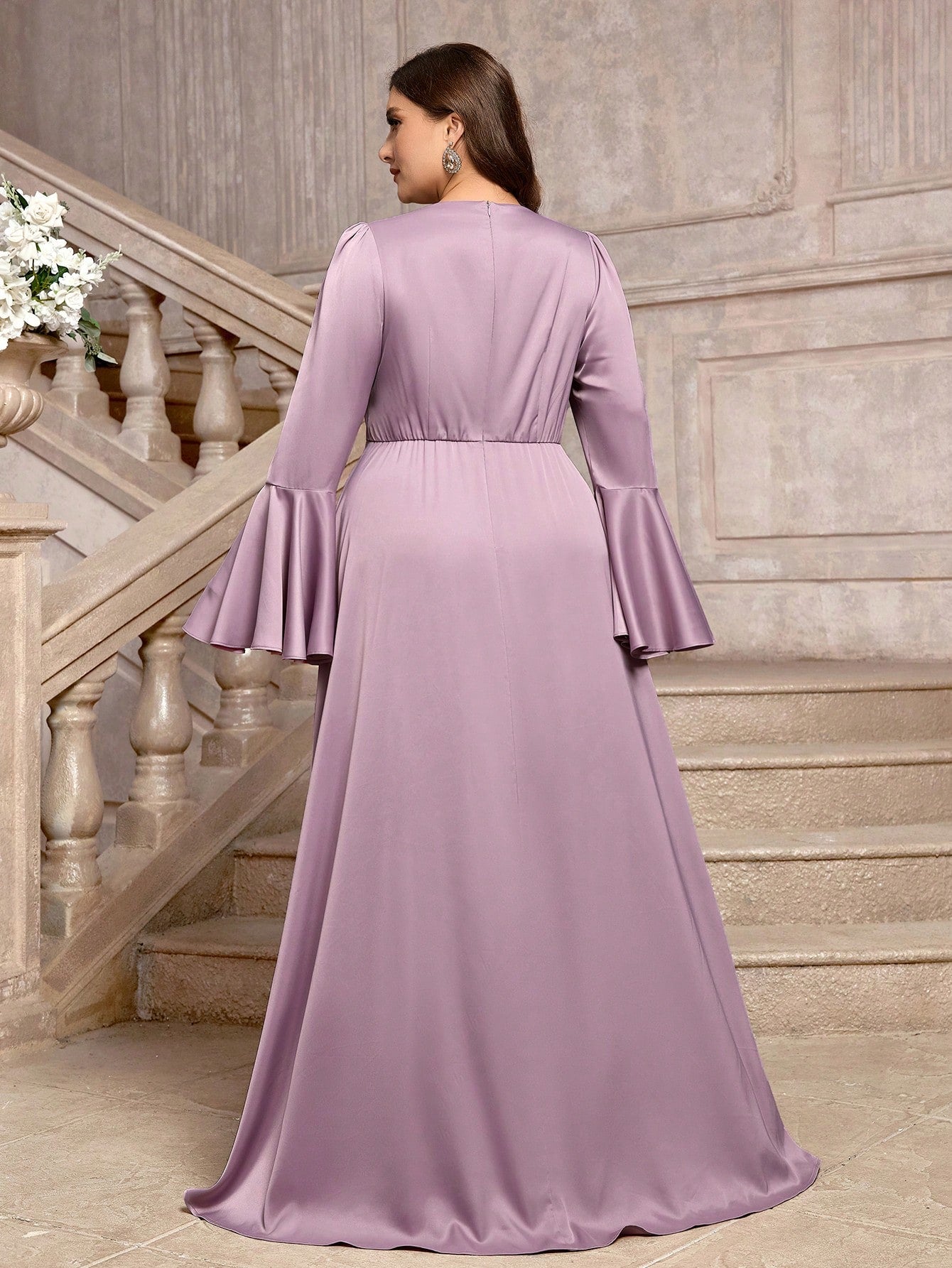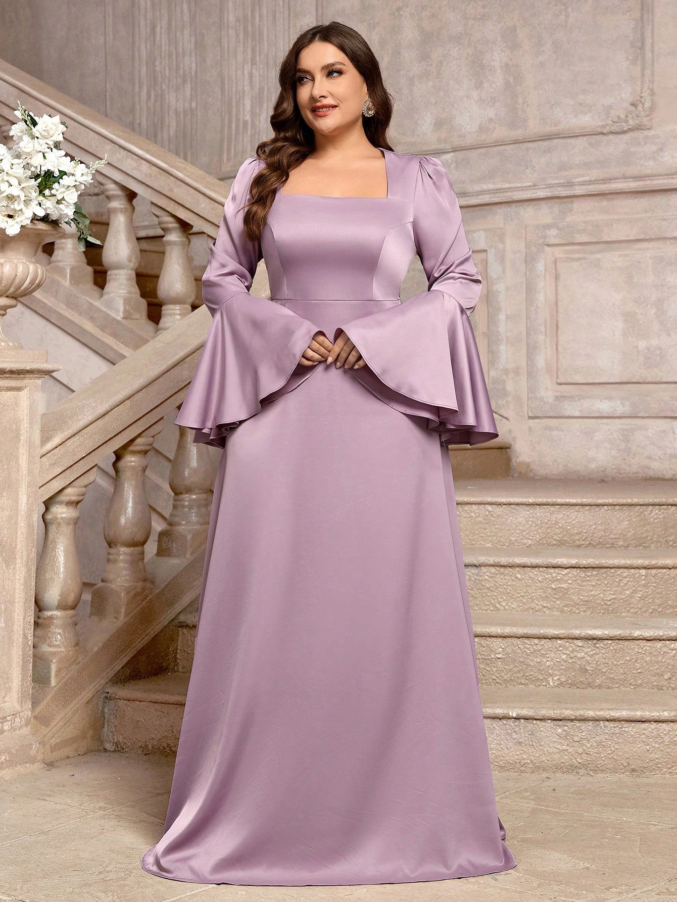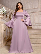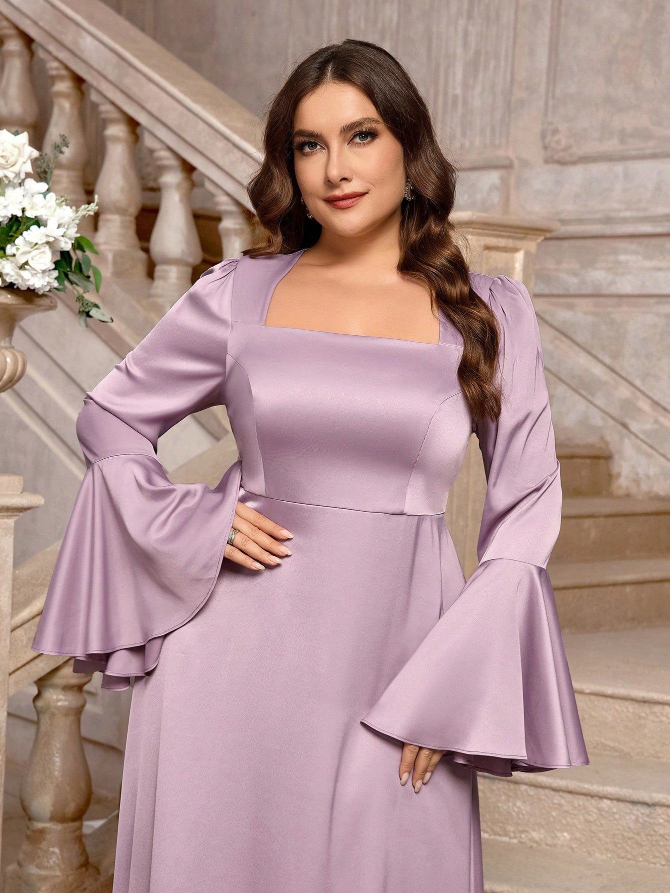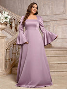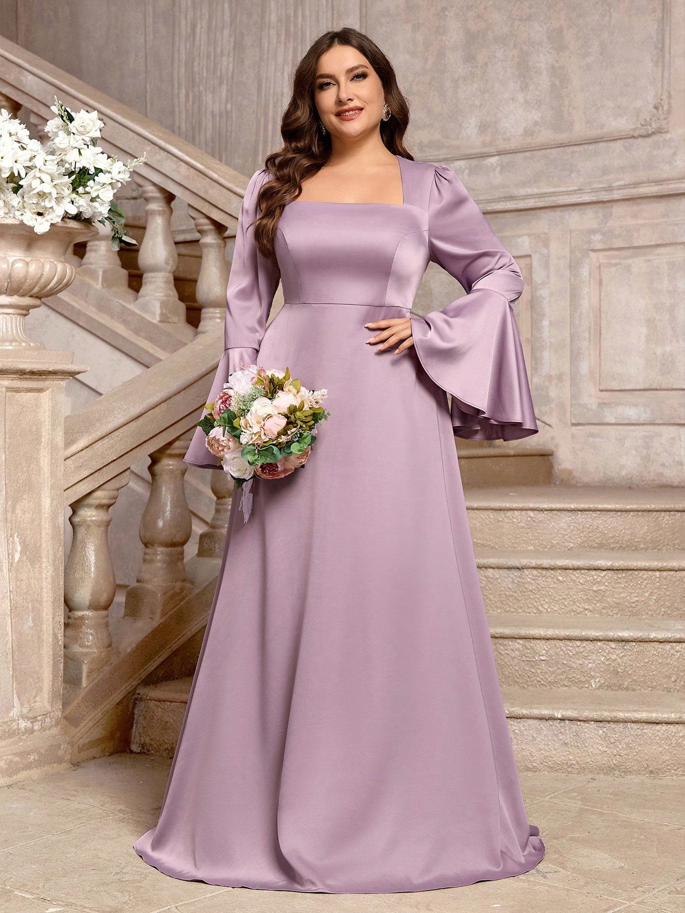 Belle Plus Size Taro Purple Elegant Square Neck Flared Sleeve Court Style Simple Bridesmaid Dresses