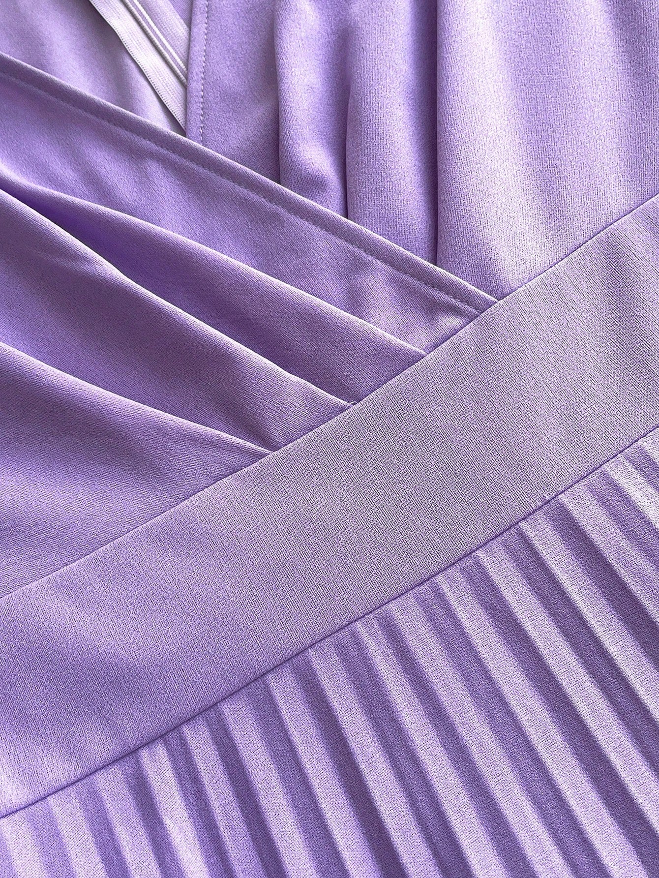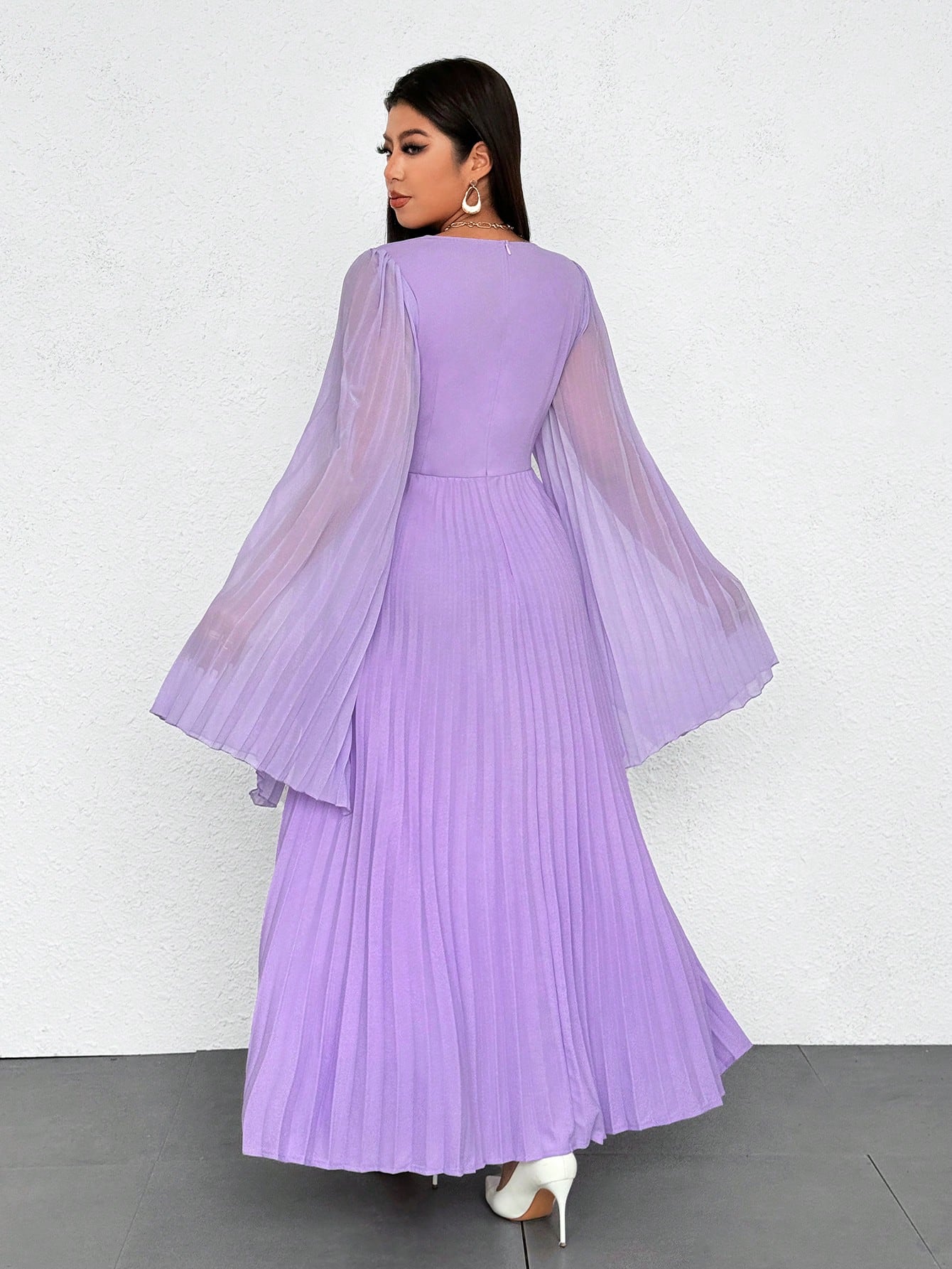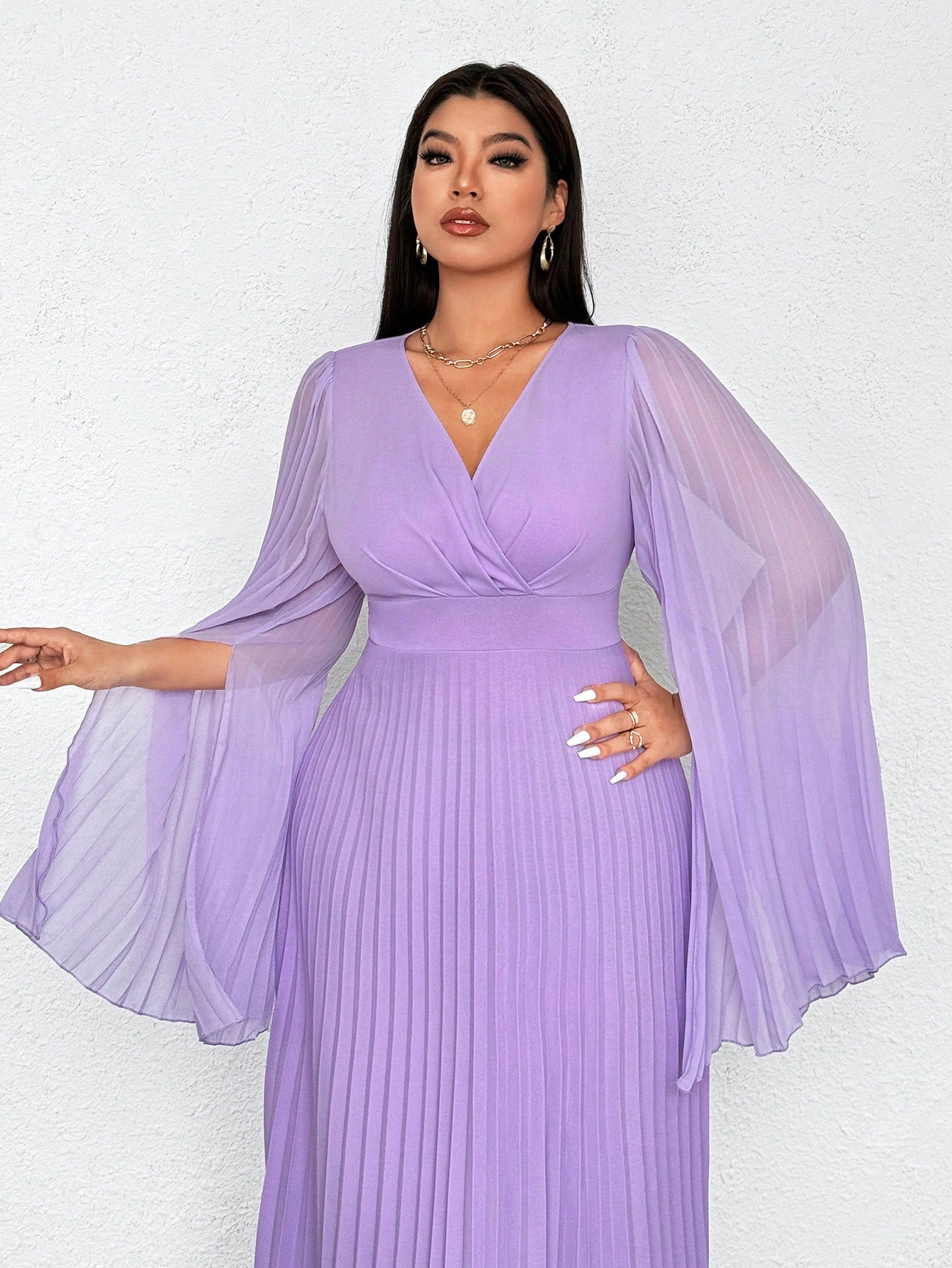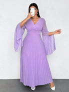 Celure Plus Size Women Elegant Romantic V-Neck Pleated Open Slit Long Sleeve Dress Maxi Women Outfit