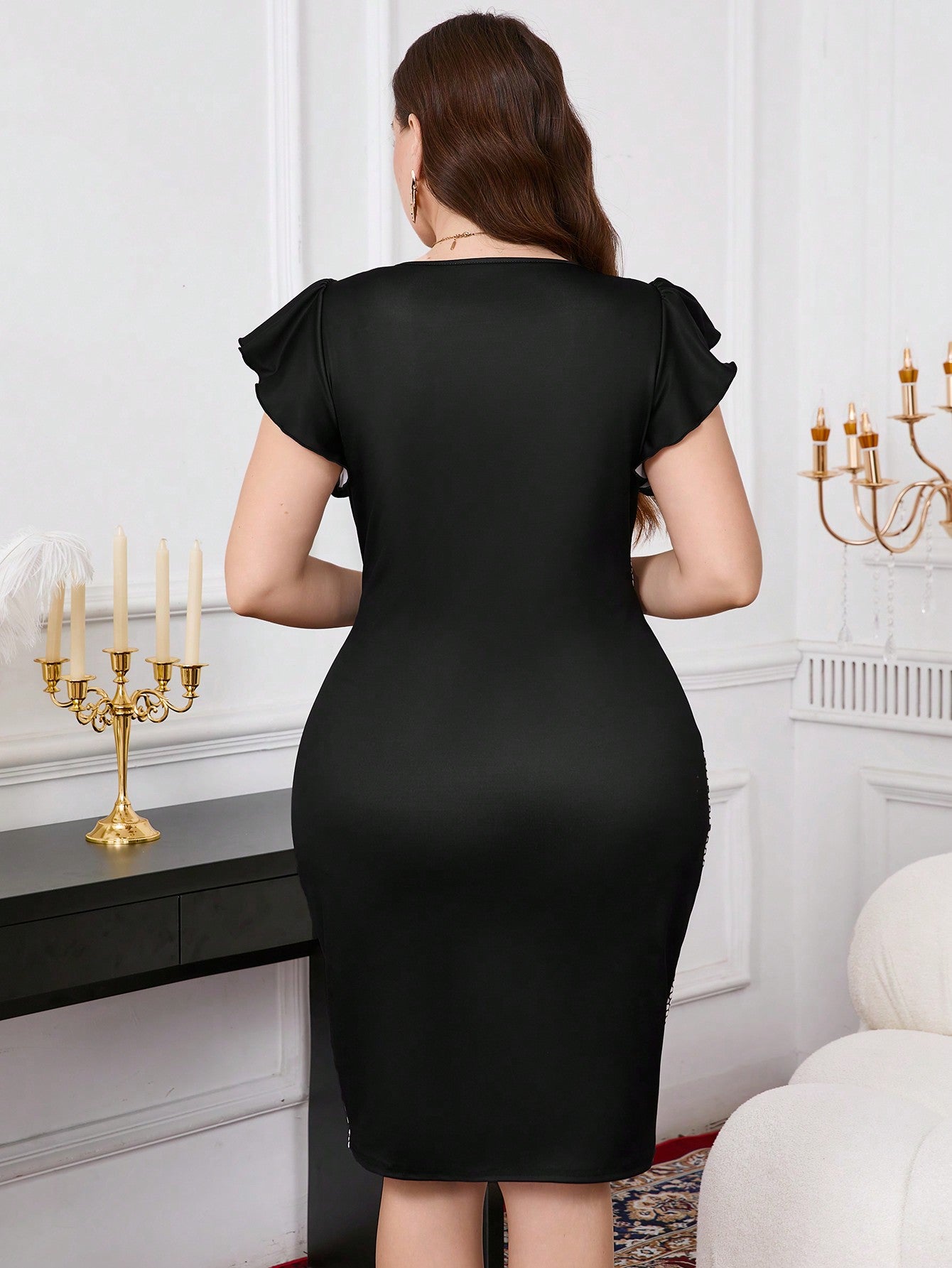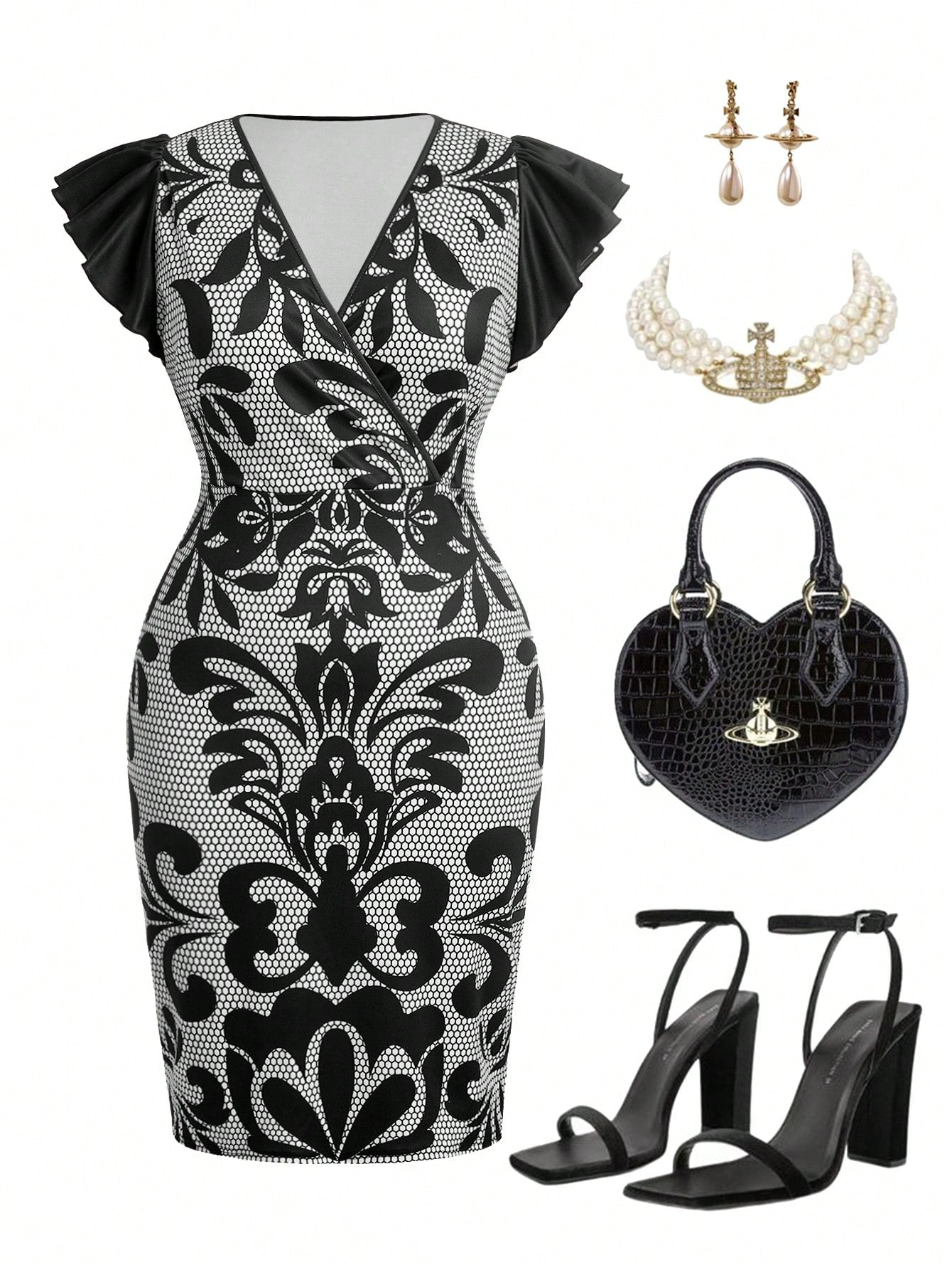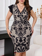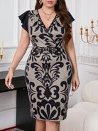 Ellevyn Plus Size Women Floral Print V-Neck Cap Sleeve Elegant Dress Old Mone Festival Summer/Summer