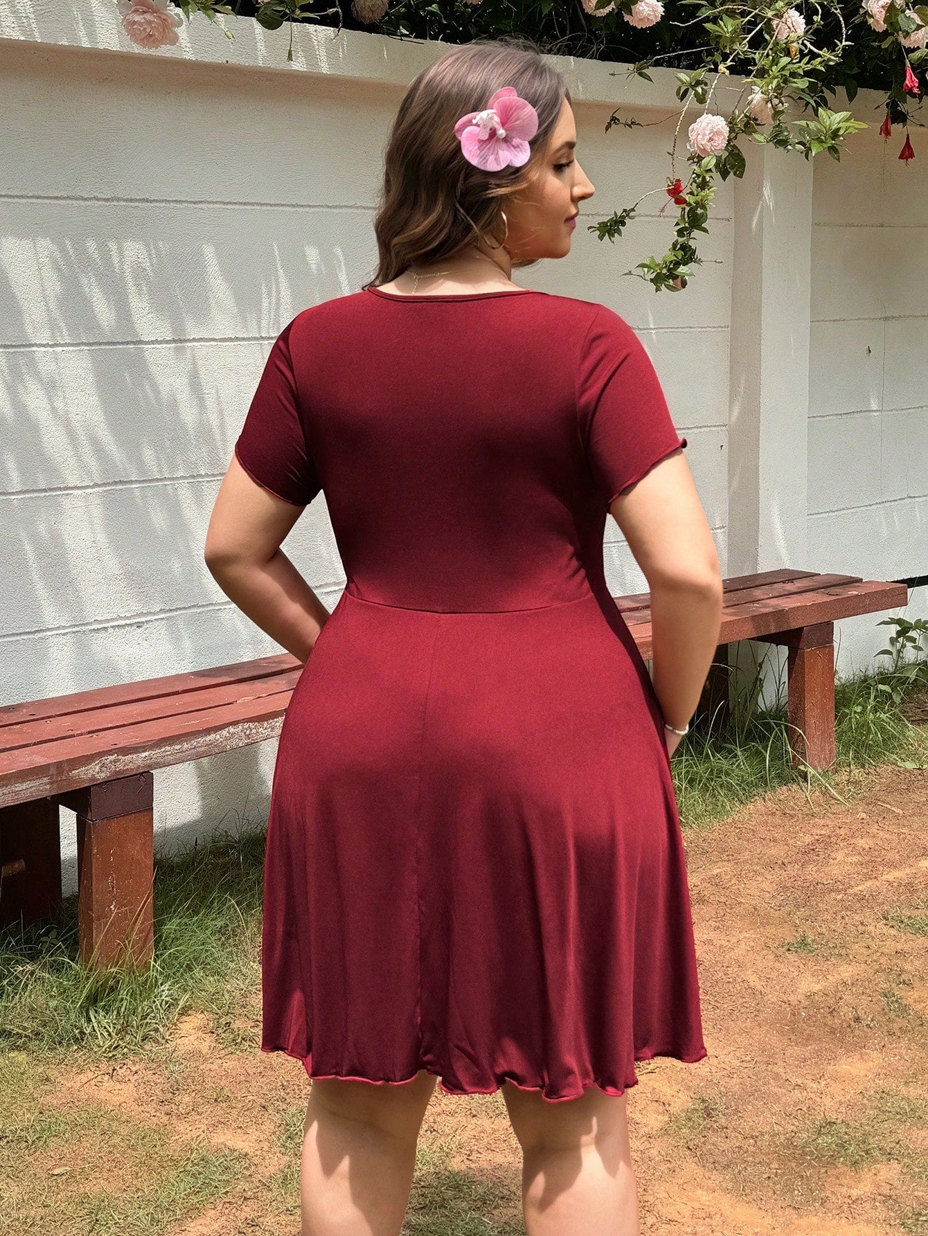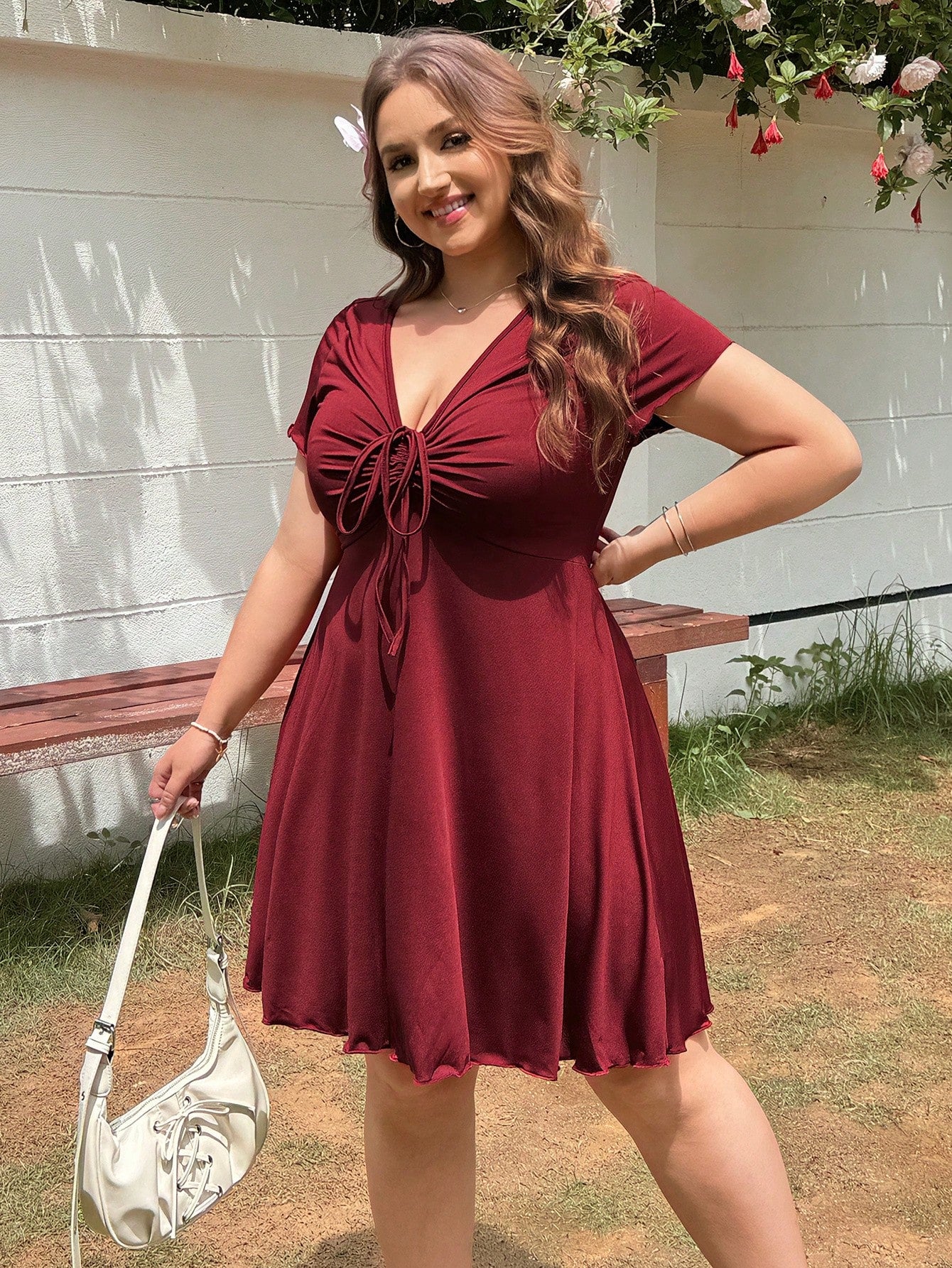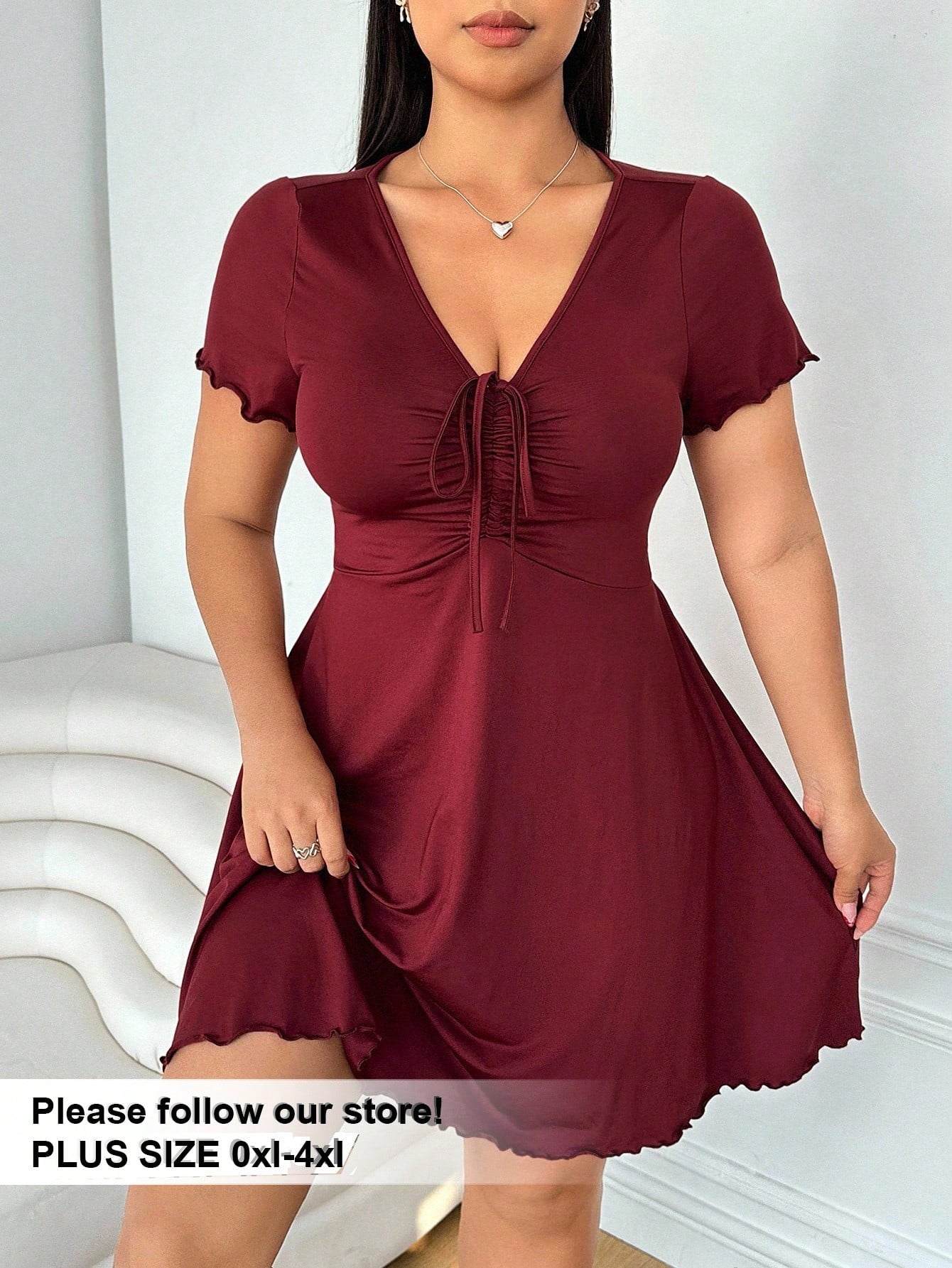 فستان أحمر ضيق بفتحة رقبة على شكل حرف V ولفّة أمامية من إيزيوير، مقاسات كبيرة، مناسب لعيد الحب، بتصميم مستوحى من فساتين وصيفات الشرف.