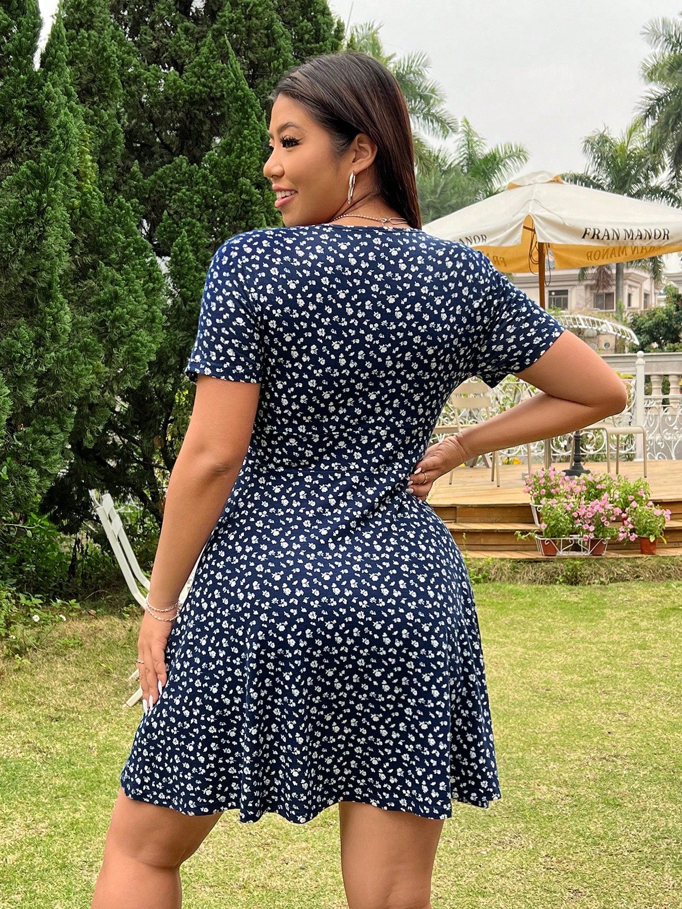 EZwear Women Plus Size Casual Holiday Floral Print A-Line Dress, Summer,Beach Dress Sundress,Holiday