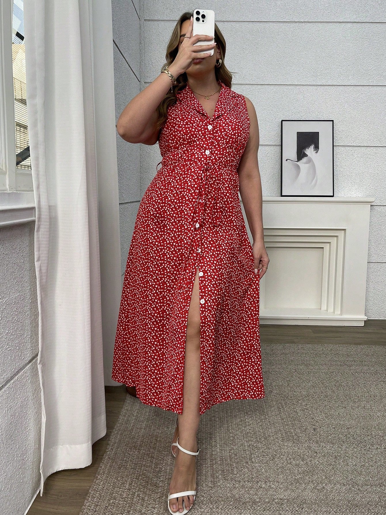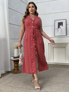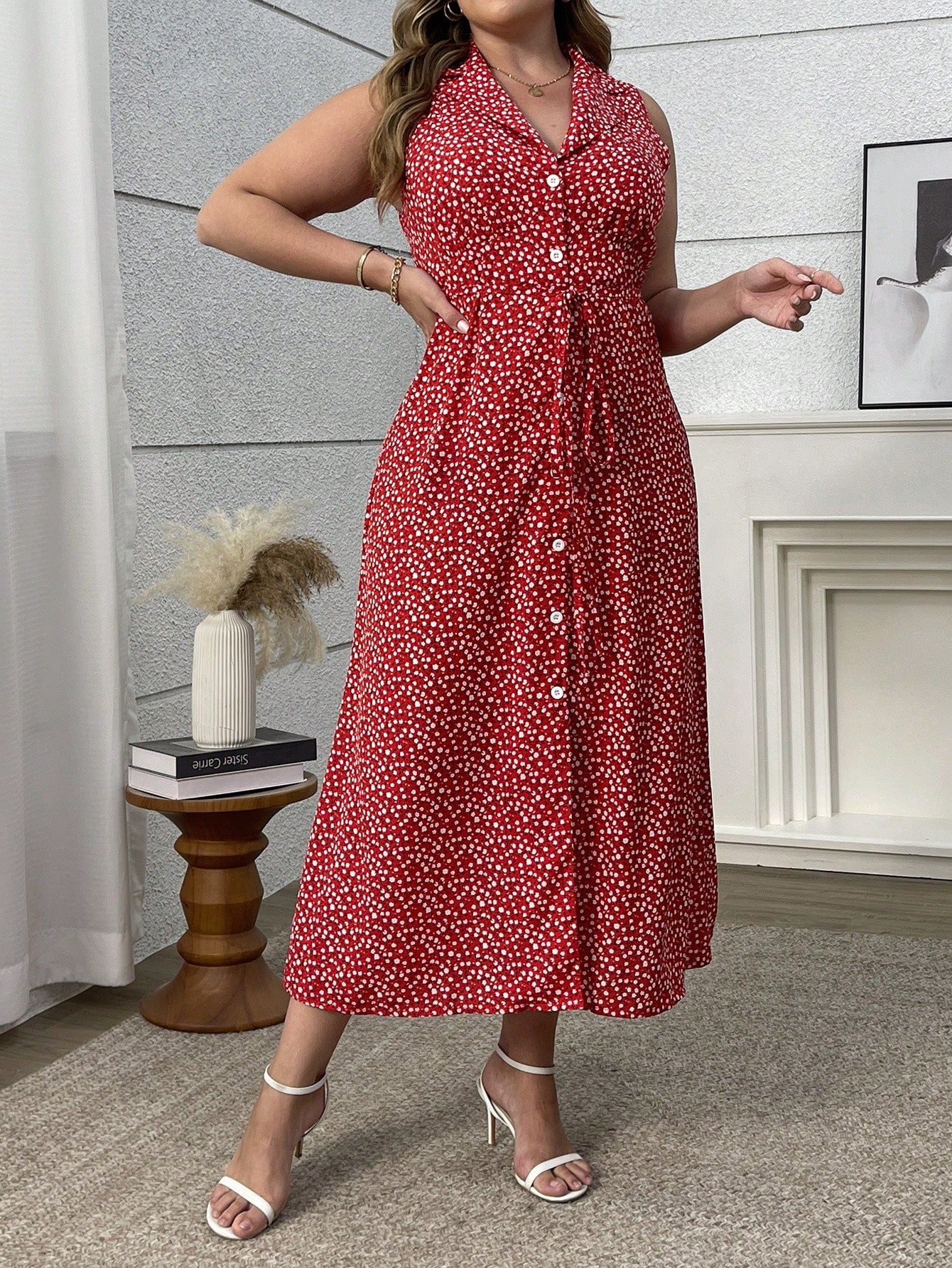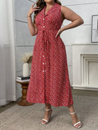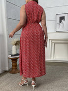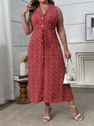women Flirla Plus Size Mini Ditsy Floral Sleeveless Belted Casual Vacation Sexy Red Dress