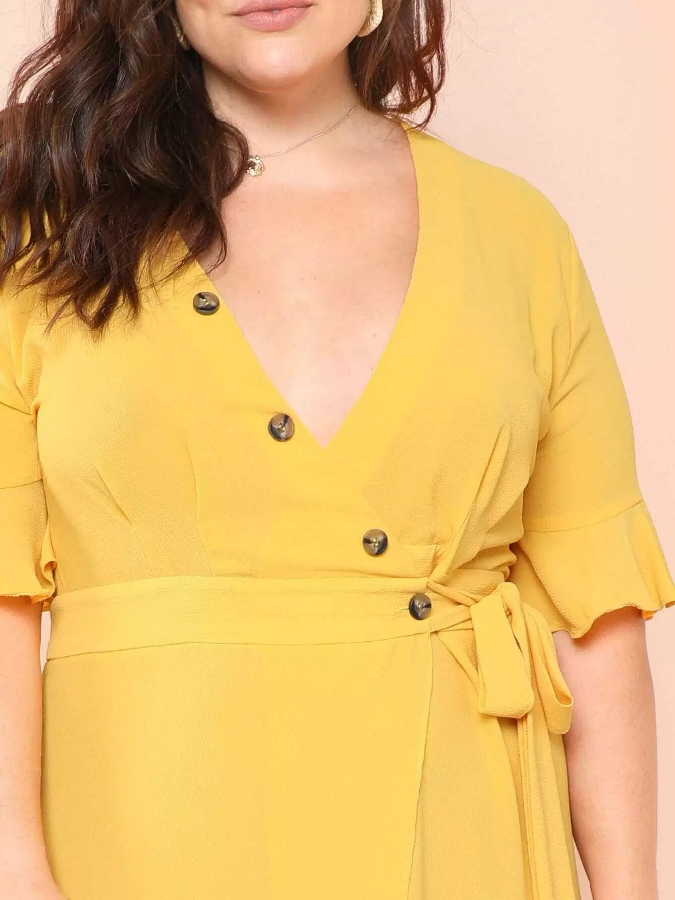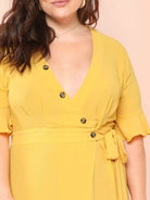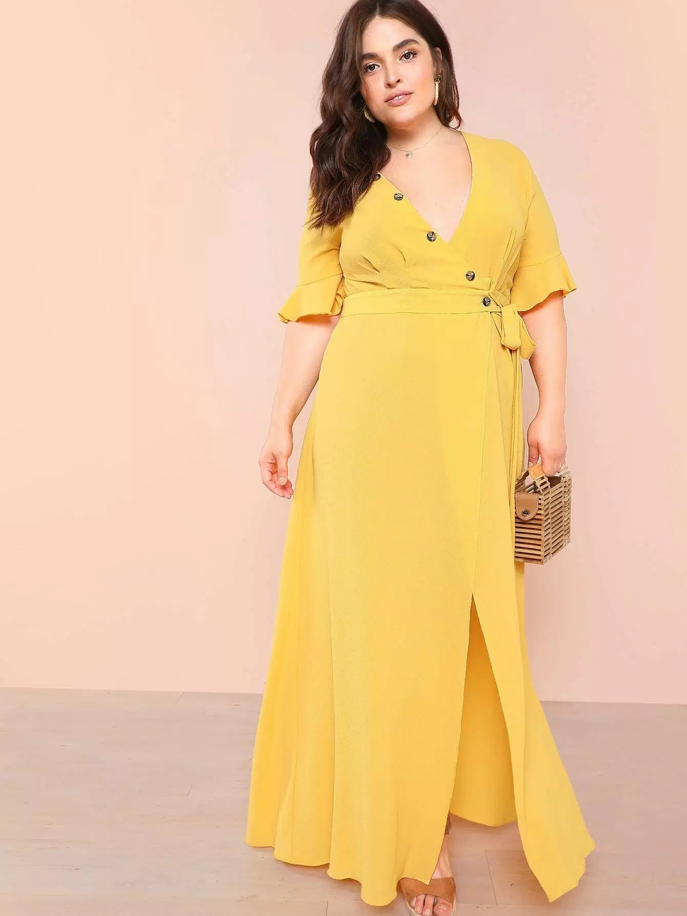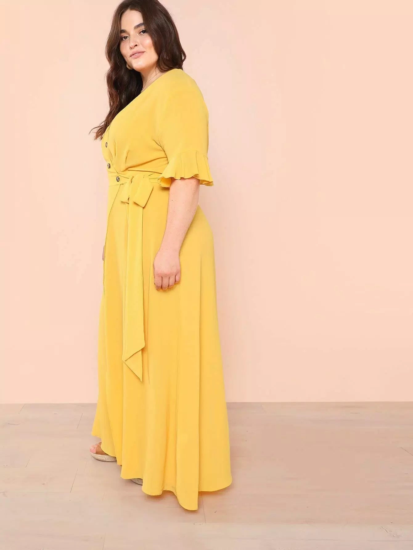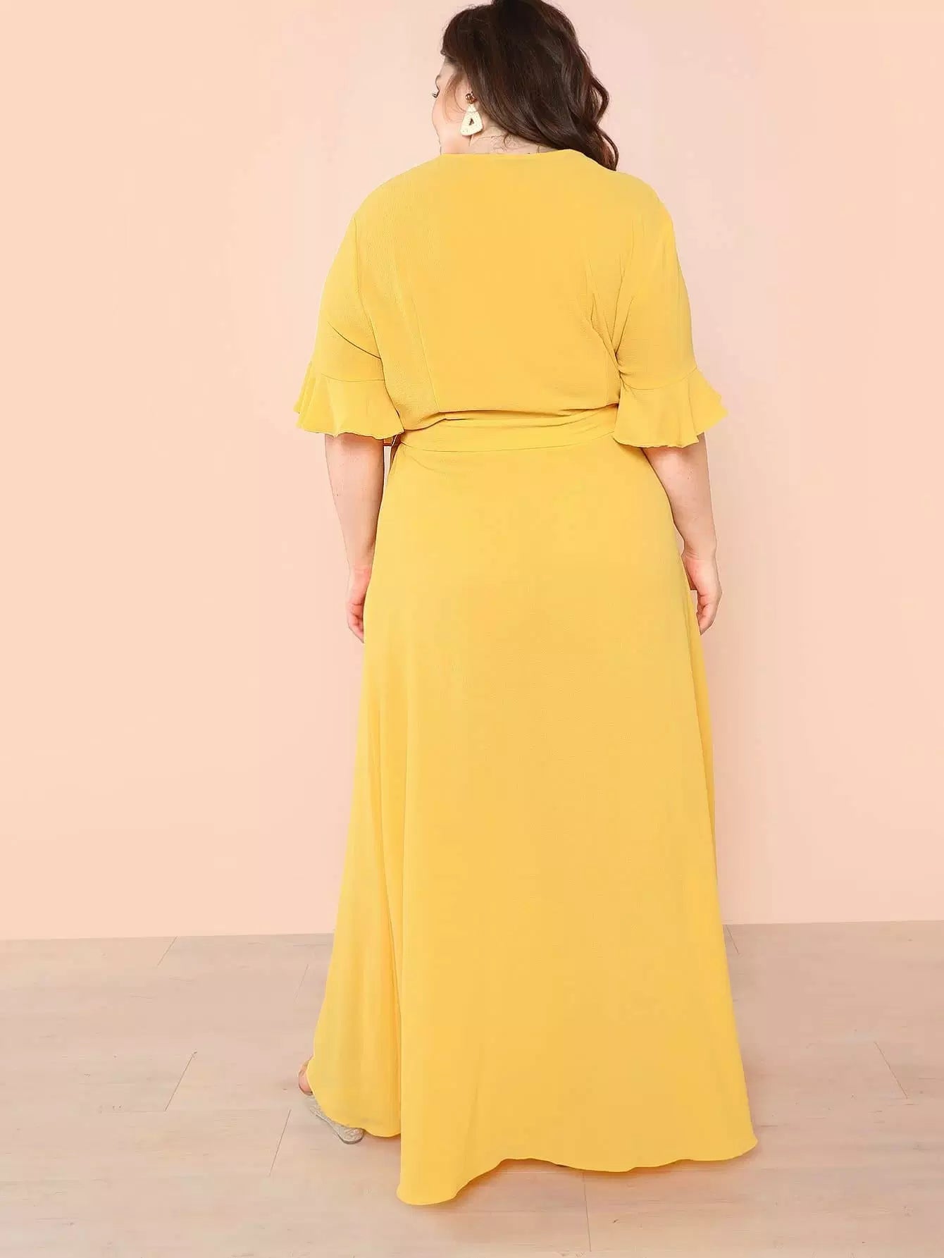 فستان بأكمام منفوشة بعقدة جانبية ملفوفة على الجانبين